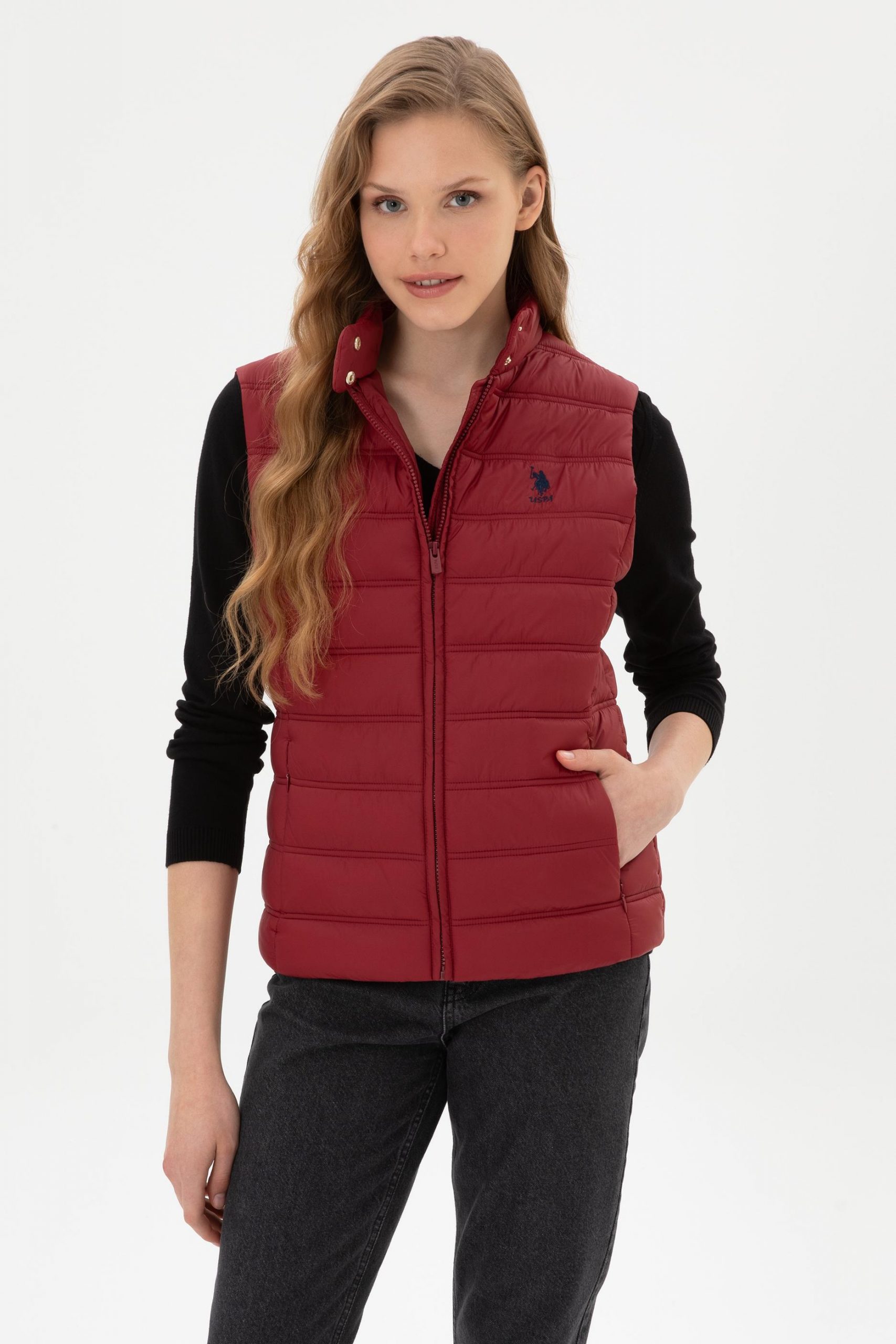 جلیقه زنانه زرشکی یو اس پولو