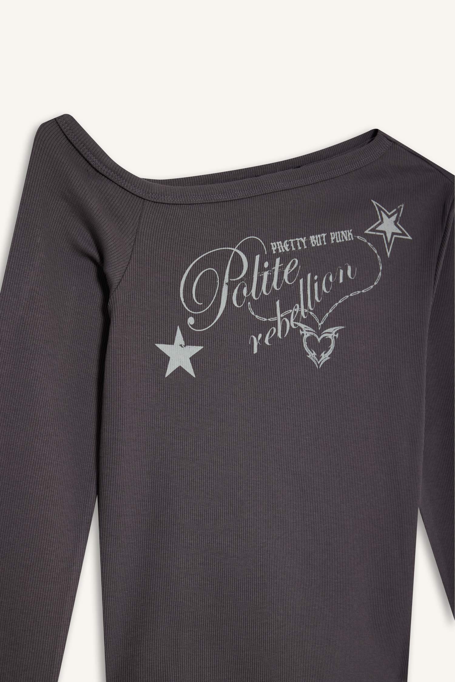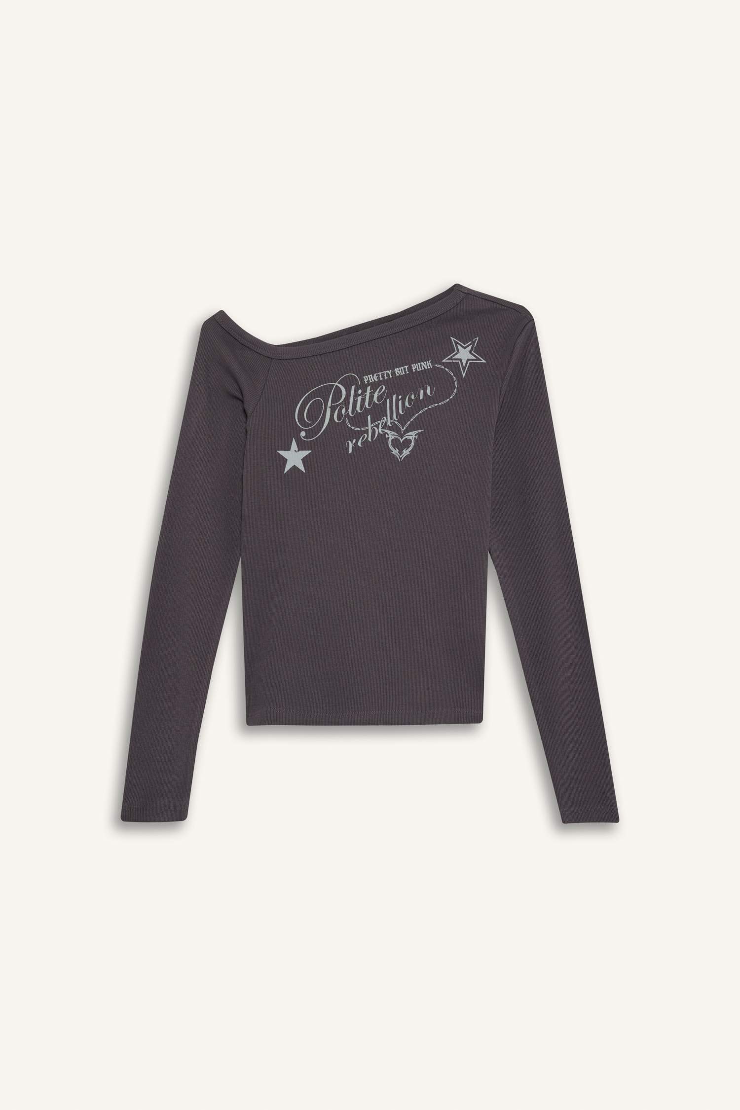 تی‌شرت آستین بلند زنانه خاکستری تیره دفکتو