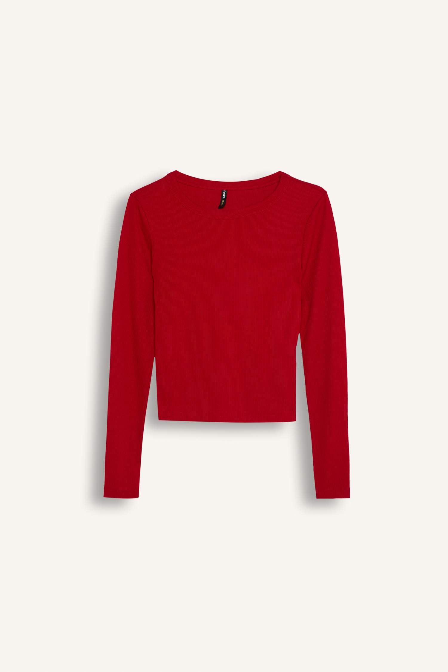 تی‌شرت آستین بلند زنانه قرمز دفکتو
