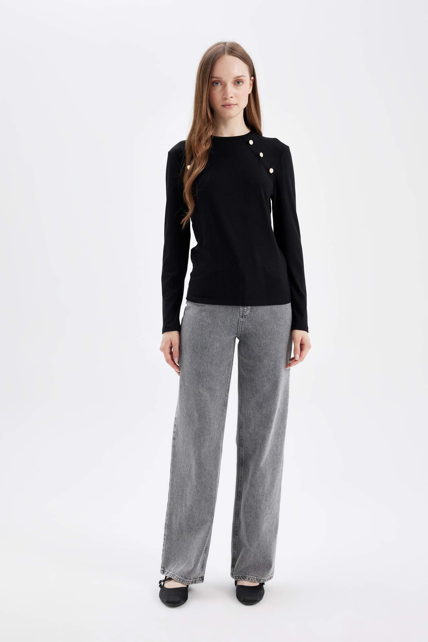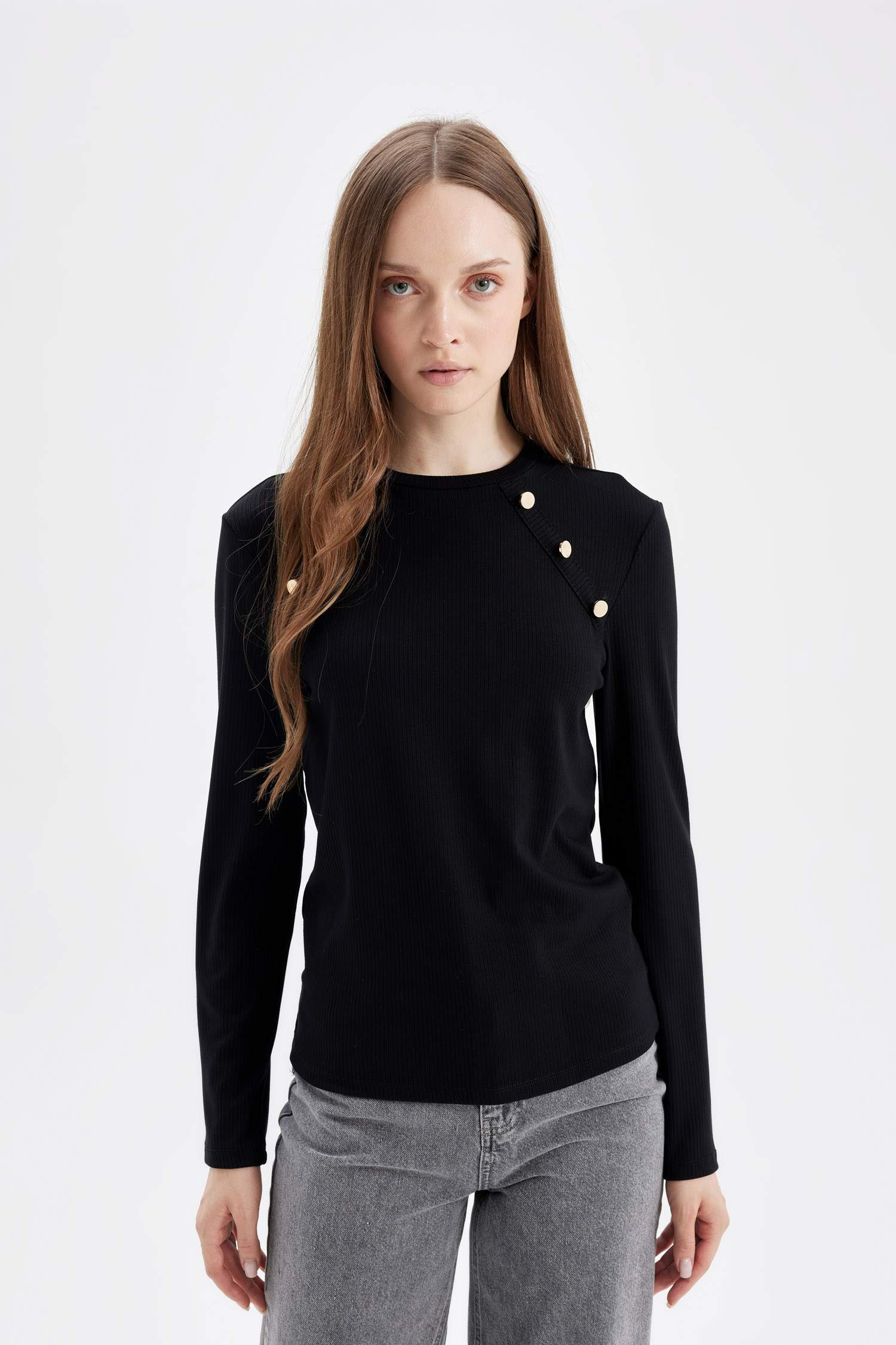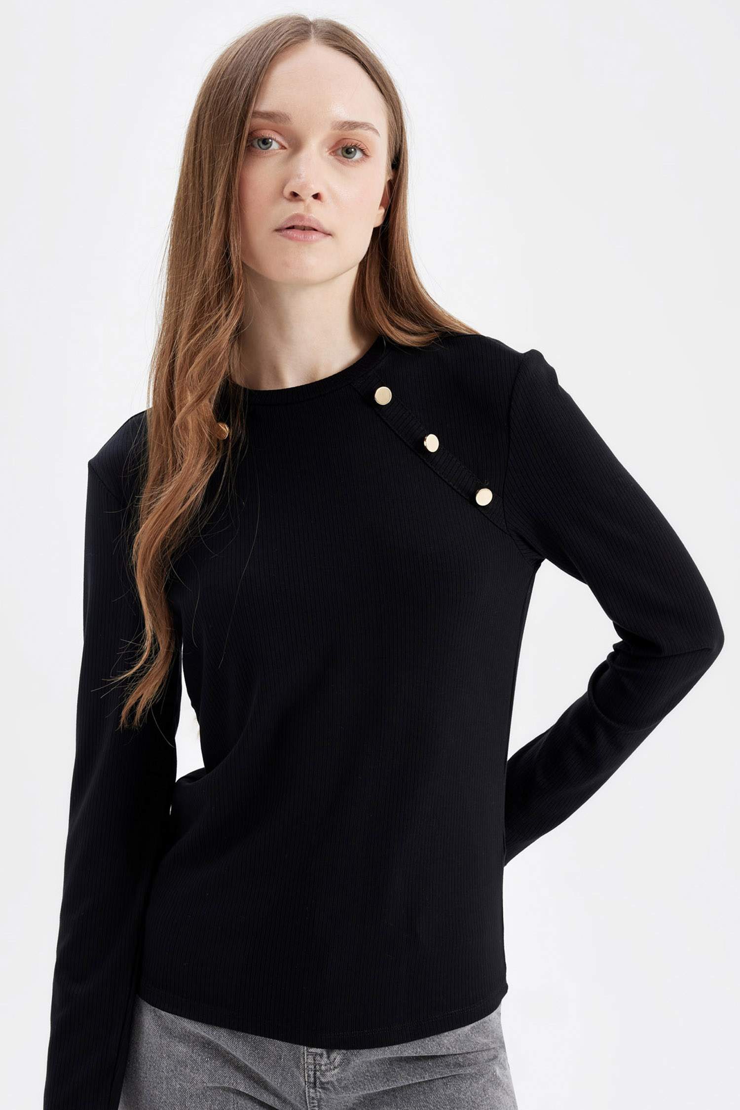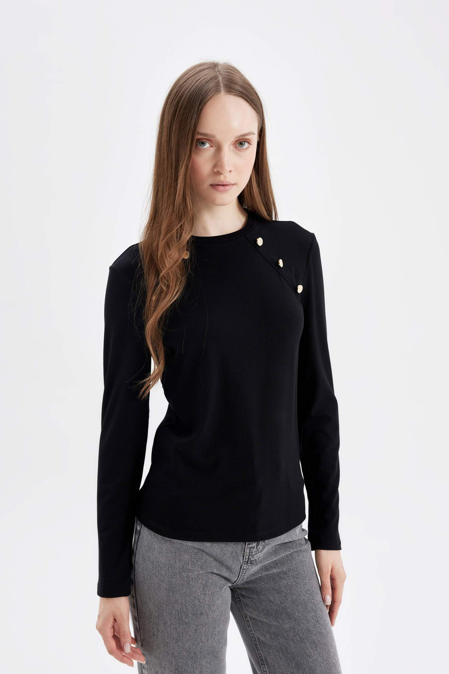 تیشرت آستین بلند زنانه مشکی دفکتو