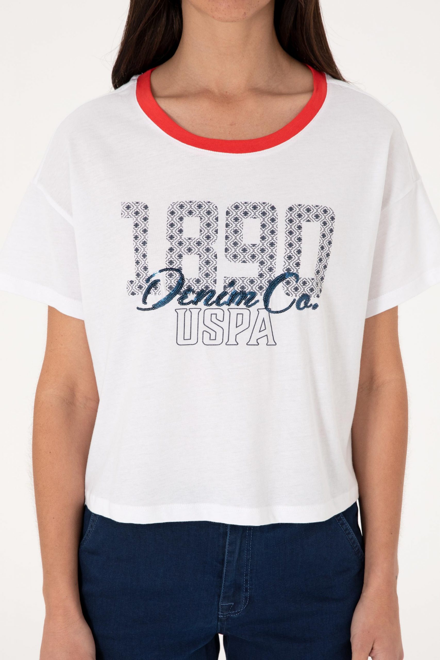 تیشرت زنانه سفید یو اس پولو عدد