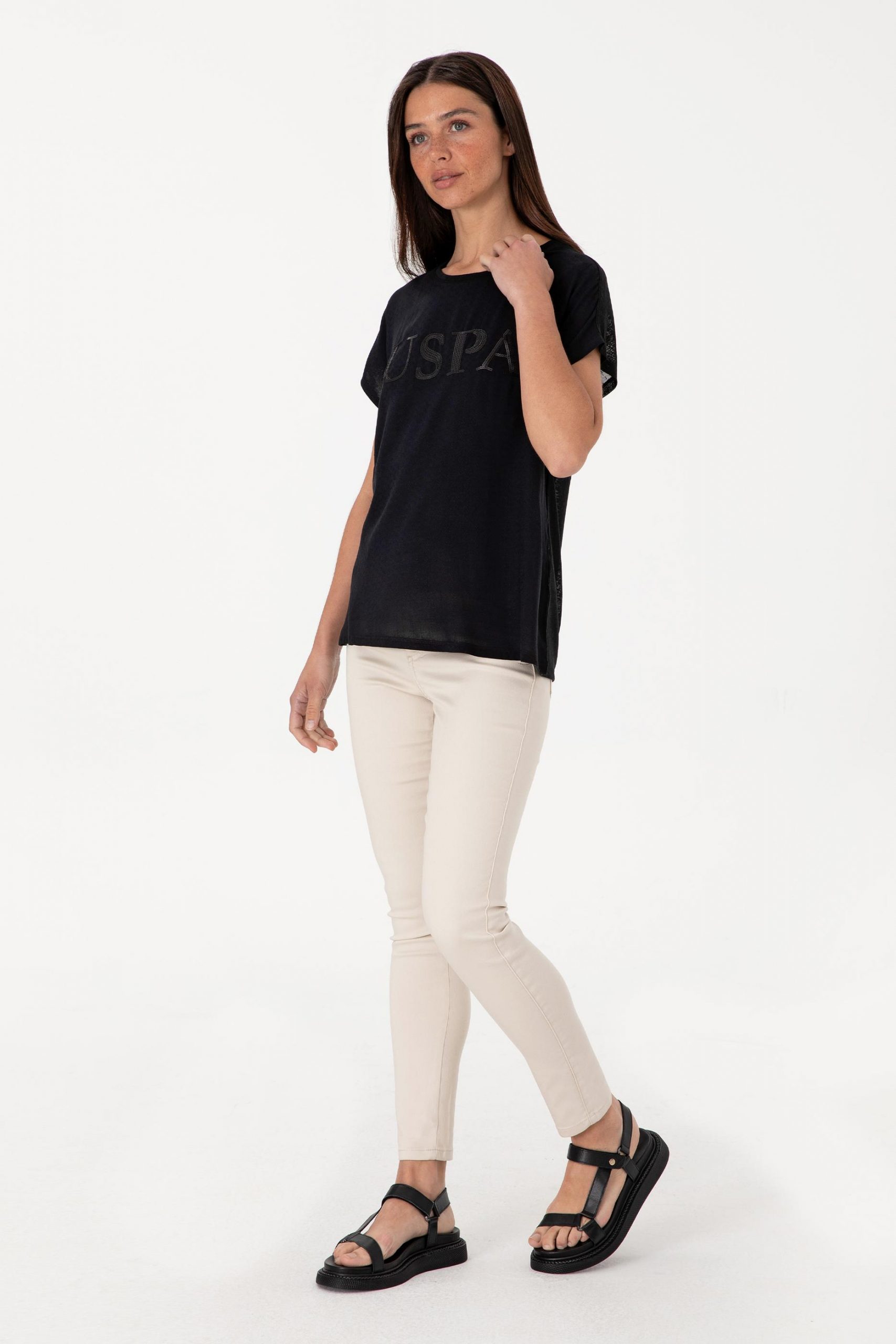 تیشرت زنانه مشکی یو اس پولو عدد