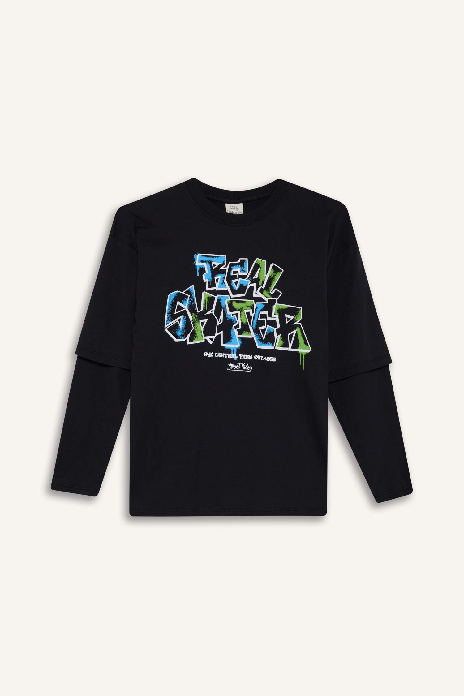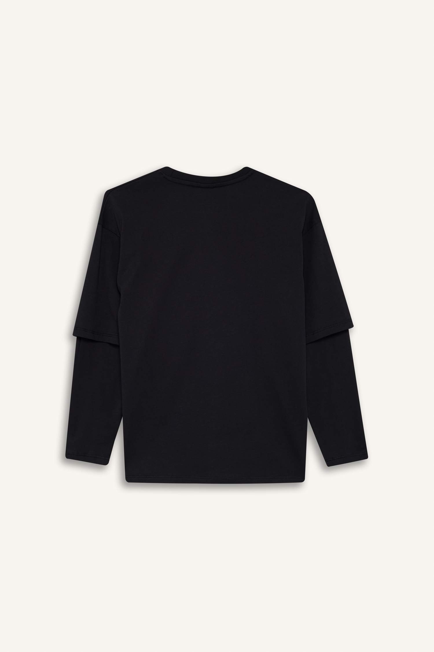 تی شرت آستین بلند پسرانه سرمه ای دفکتو