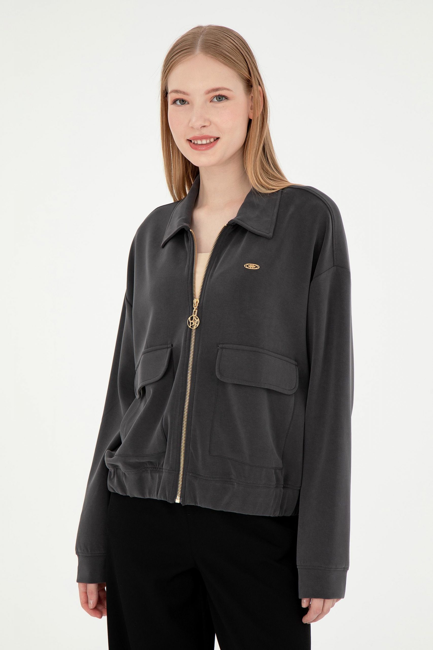 سویشرت زنانه خاکستری تیره یو اس پولو