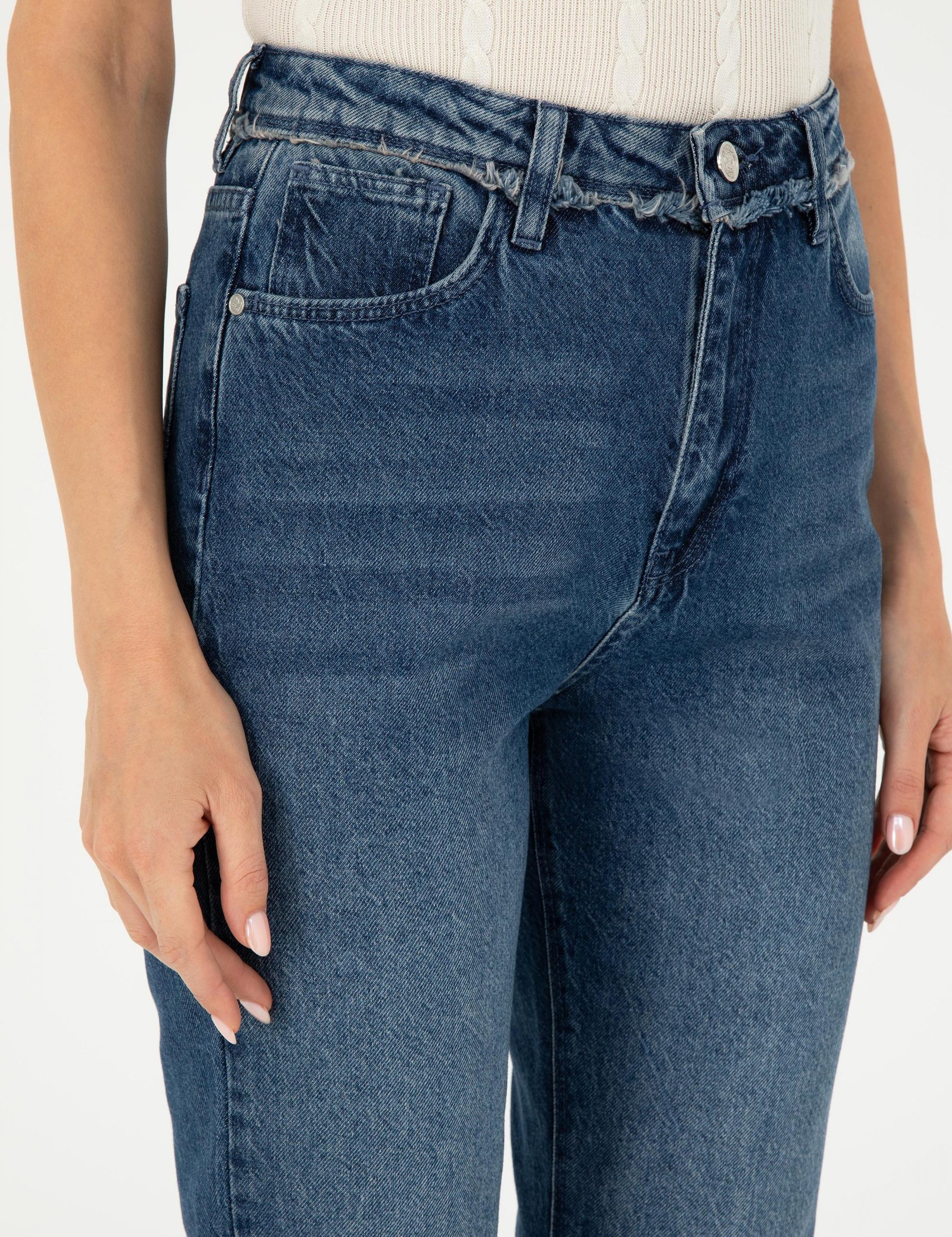 شلوار جین مام فیت زنانه آبی روشن پیرکاردین