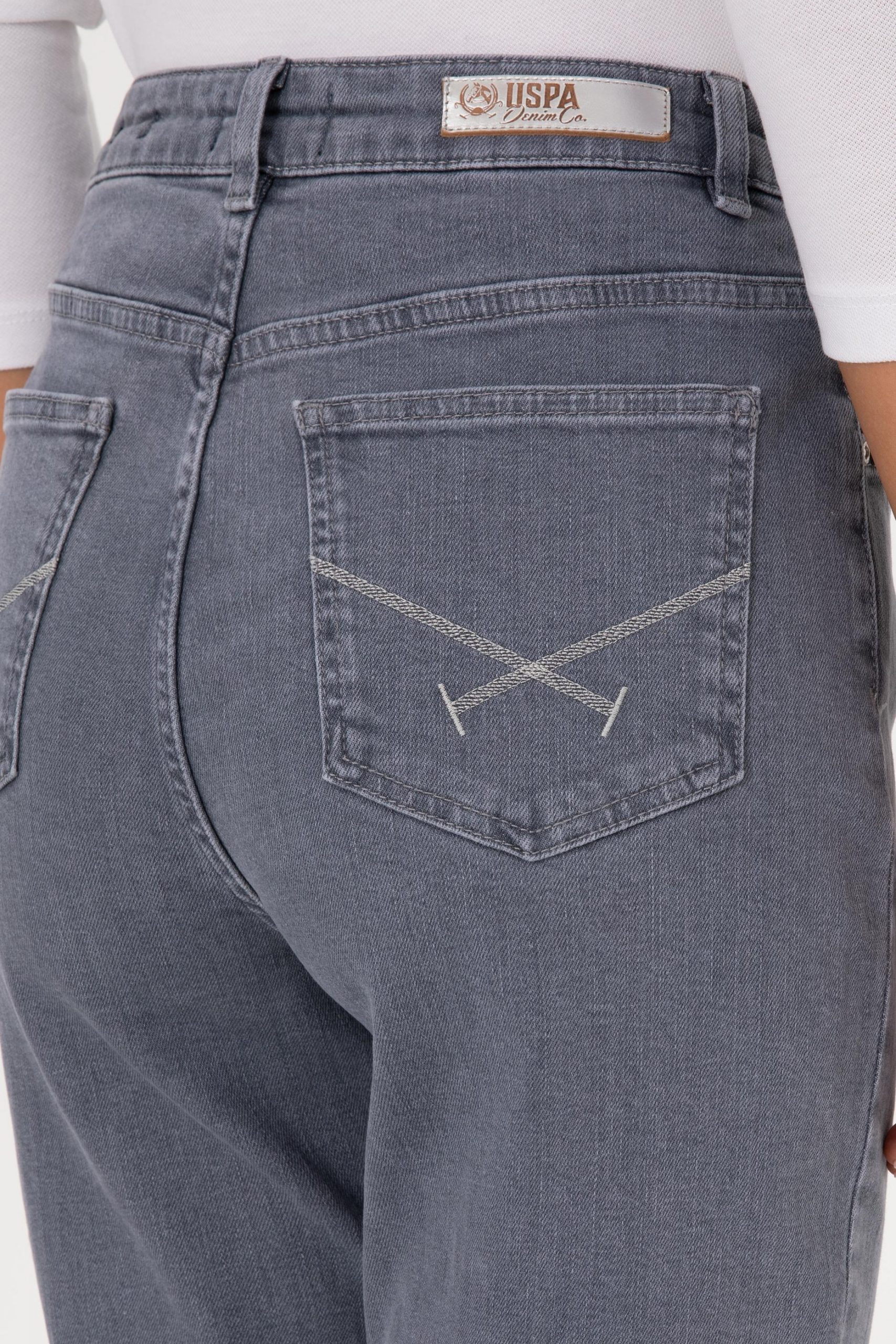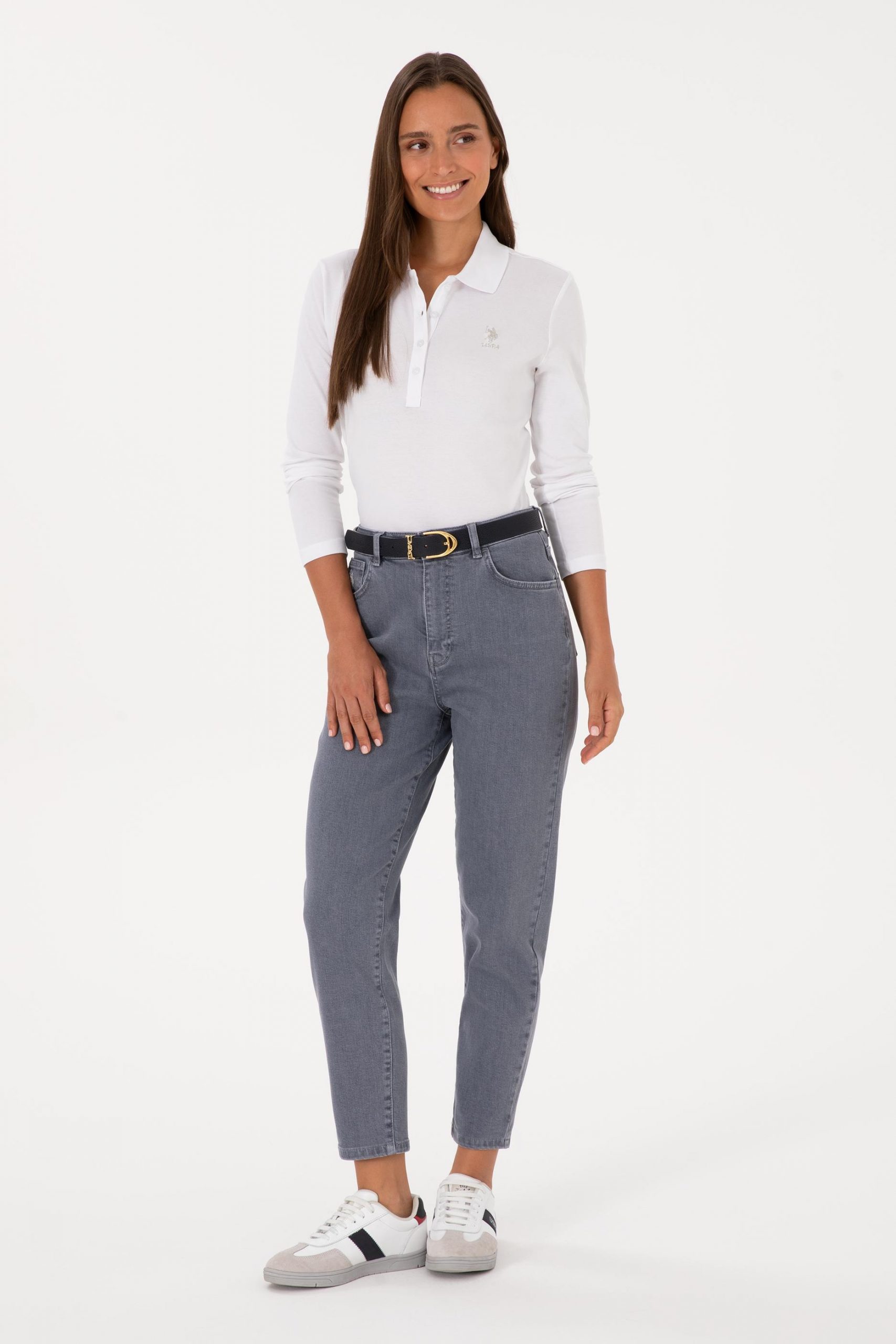 شلوار جین مام فیت زنانه خاکستری یو اس پولو