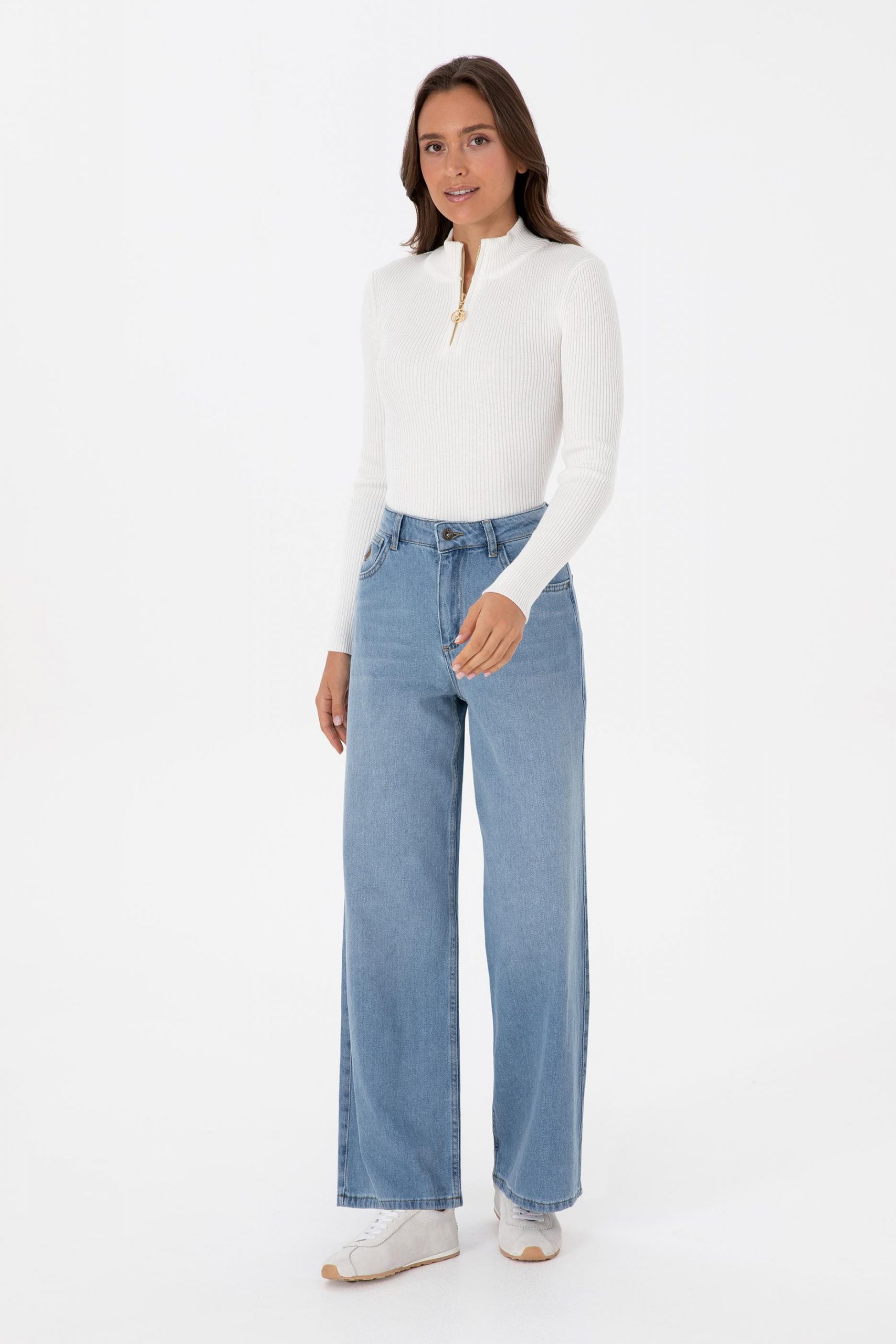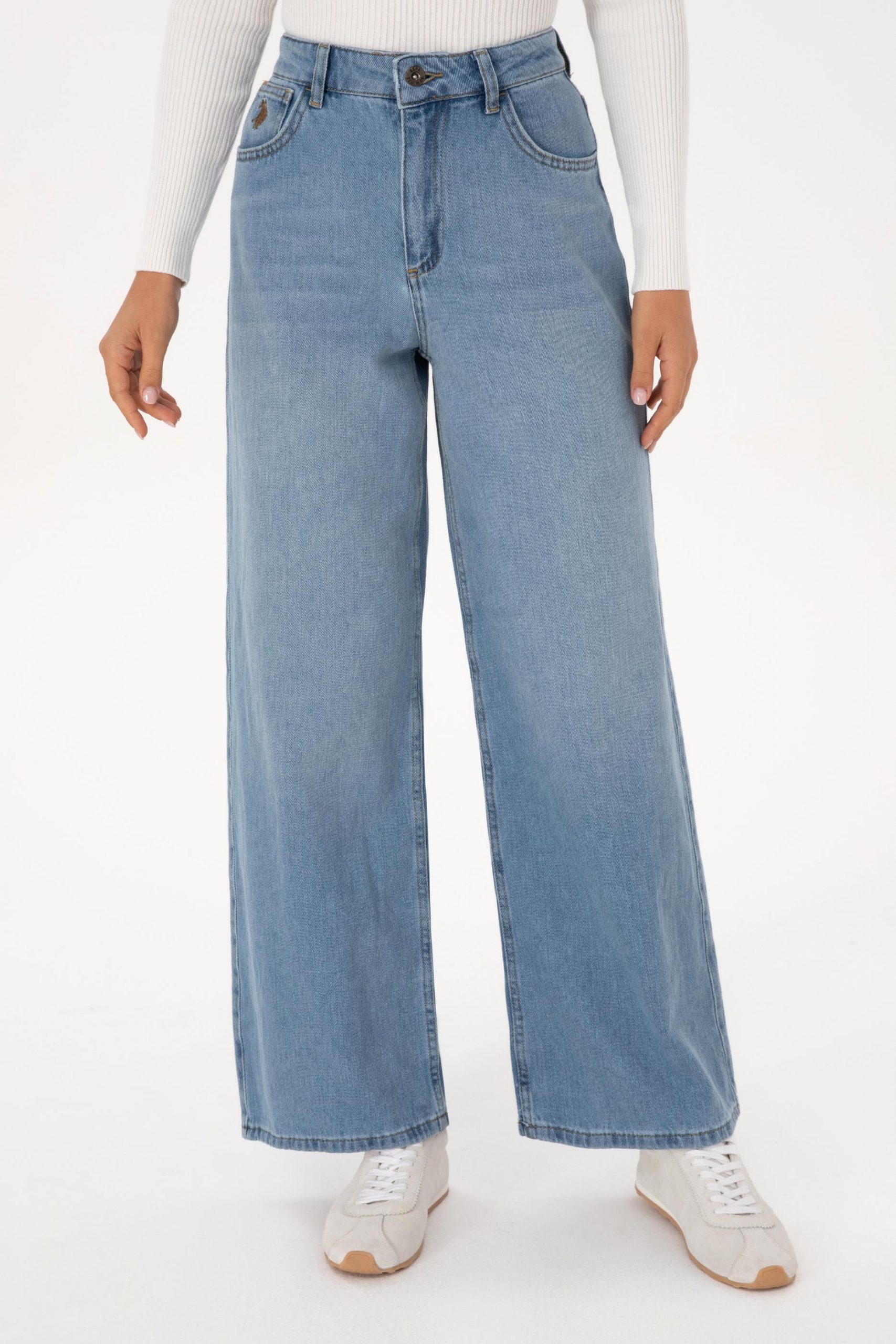 شلوار جین وایدلگ زنانه آبی روشن یو اس پولو