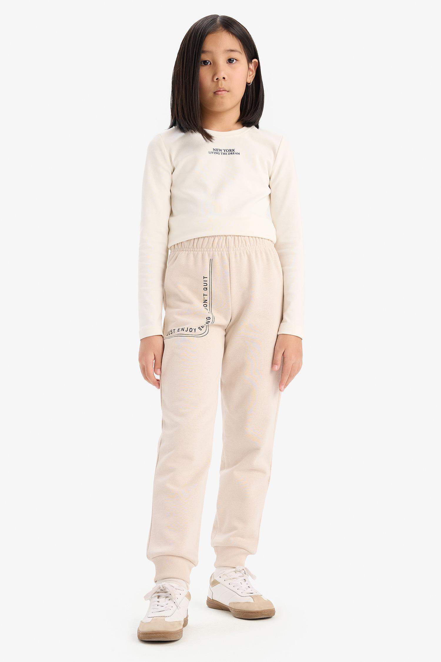 شلوار راحتی دخترانه بژ دفکتو عدد