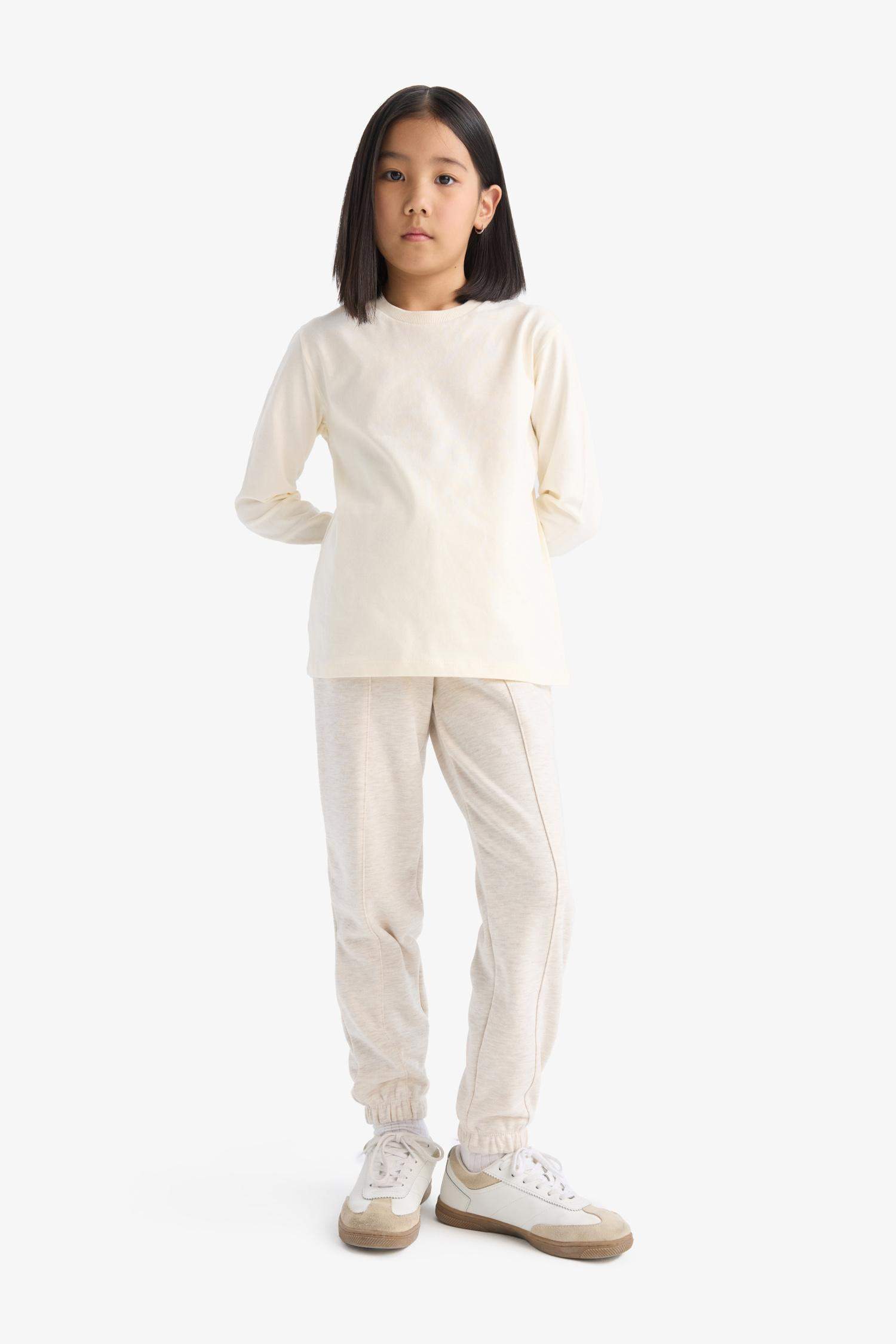 شلوار راحتی دخترانه بژ دفکتو عدد