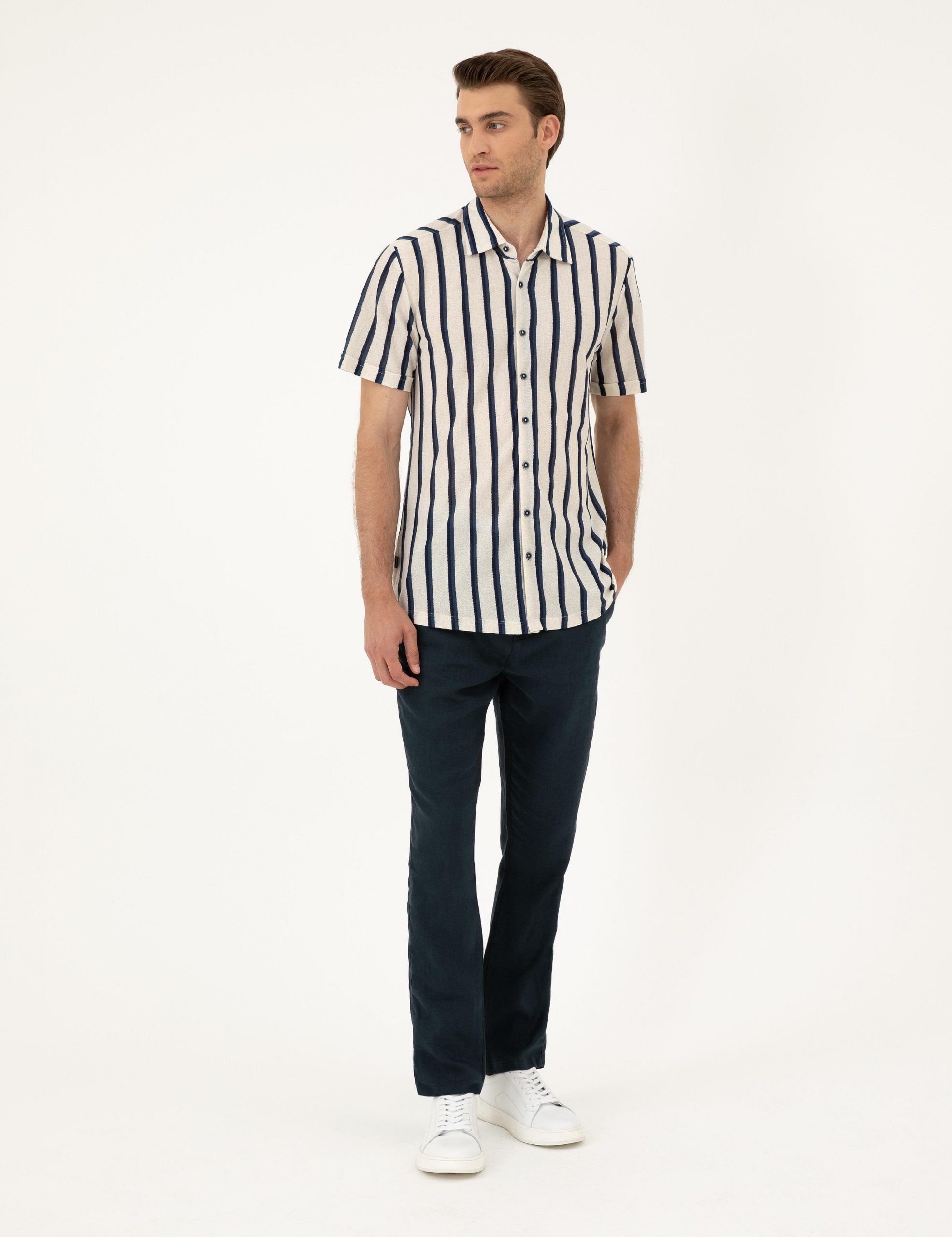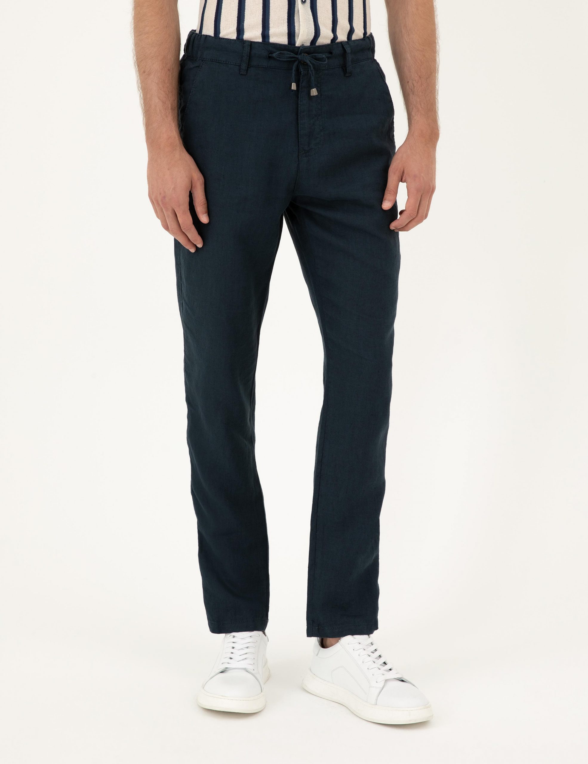 شلوار کتان مردانه سرمه ای پیرکاردین