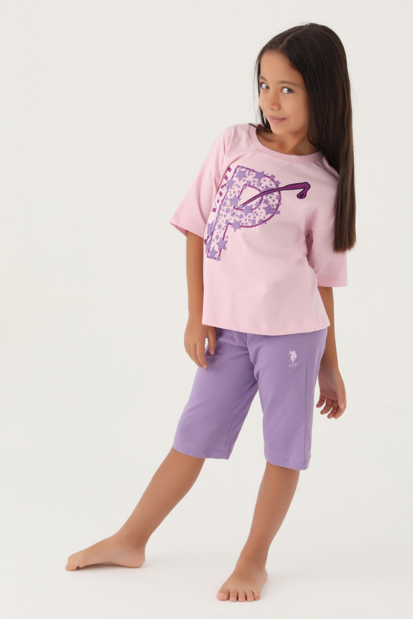 لباس خواب دخترانه صورتی پودری یو اس پولو