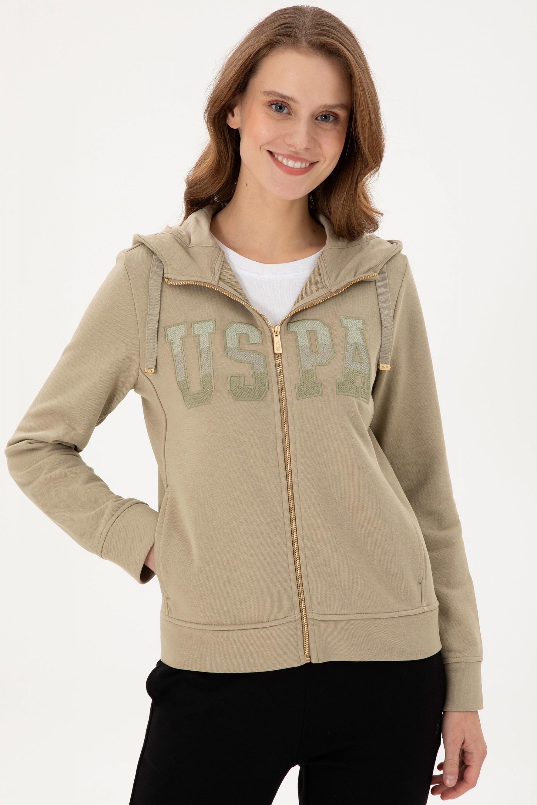 هودی زنانه خاکی روشن یو اس پولو