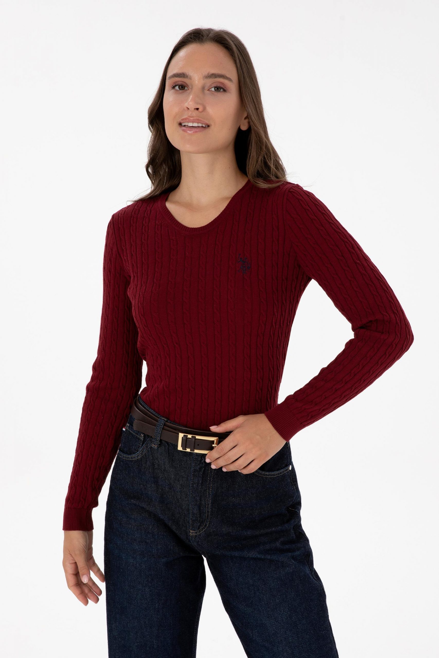 پلیور زنانه زرشکی یو اس پولو