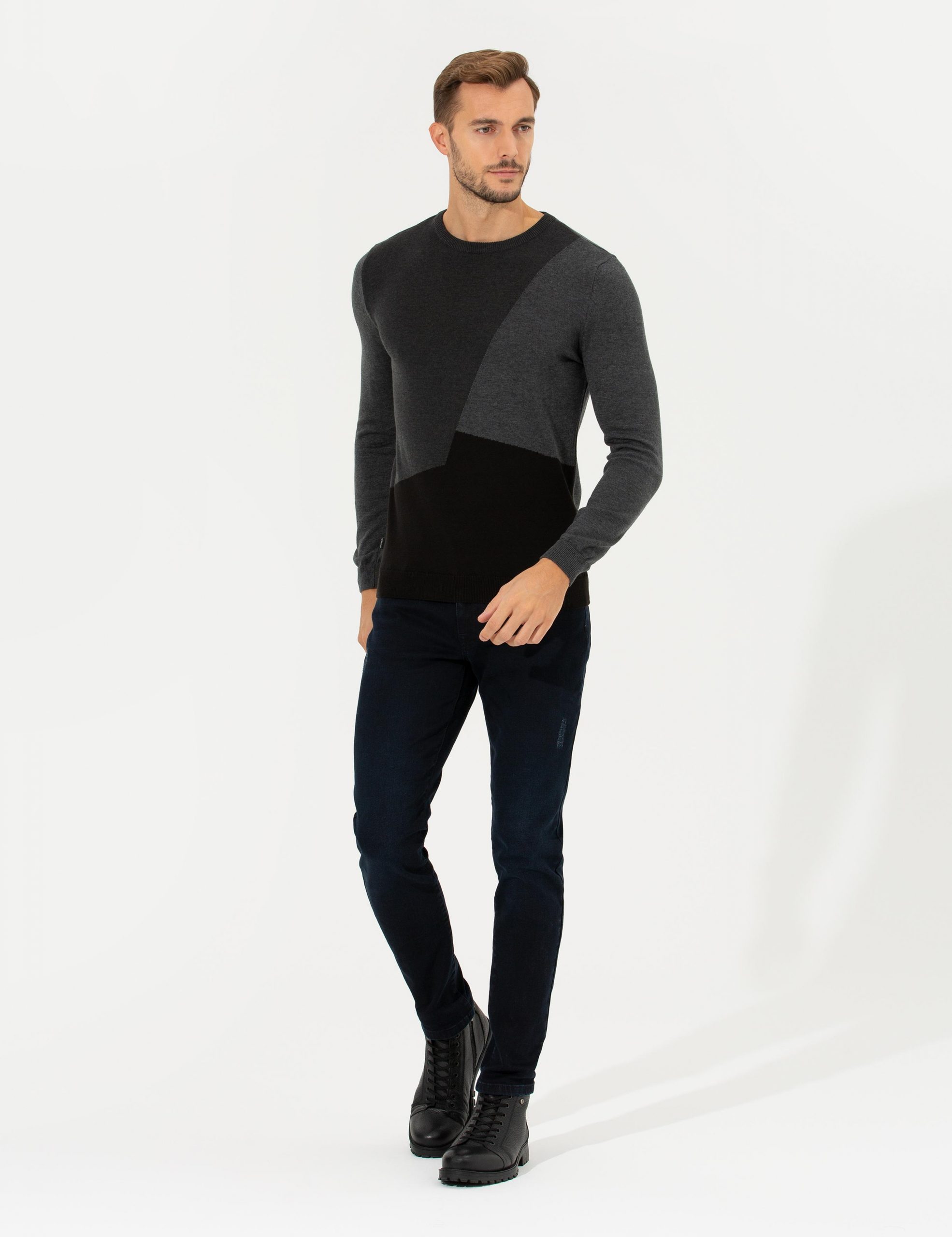 پلیور مردانه خاکی ملانژ پیرکاردین