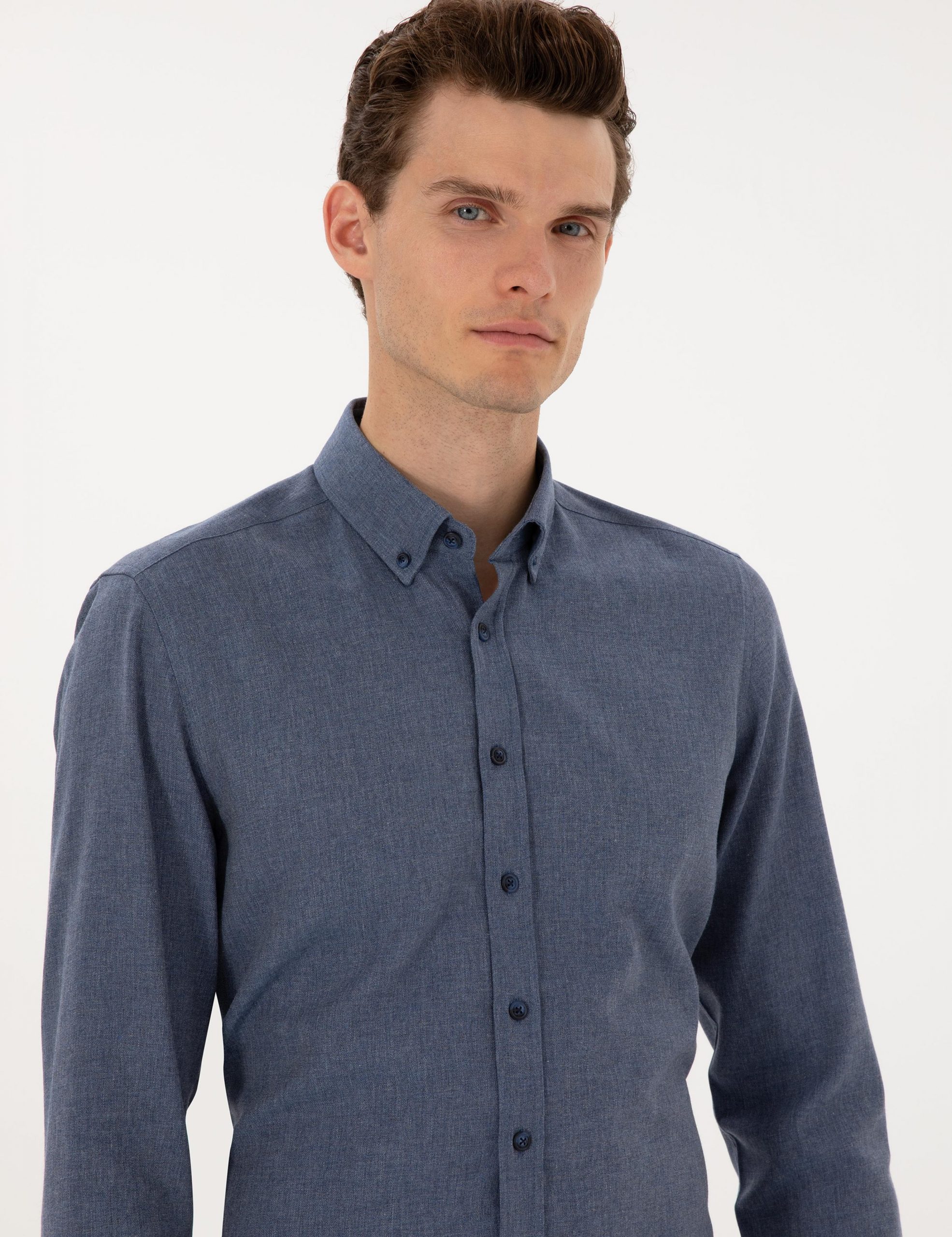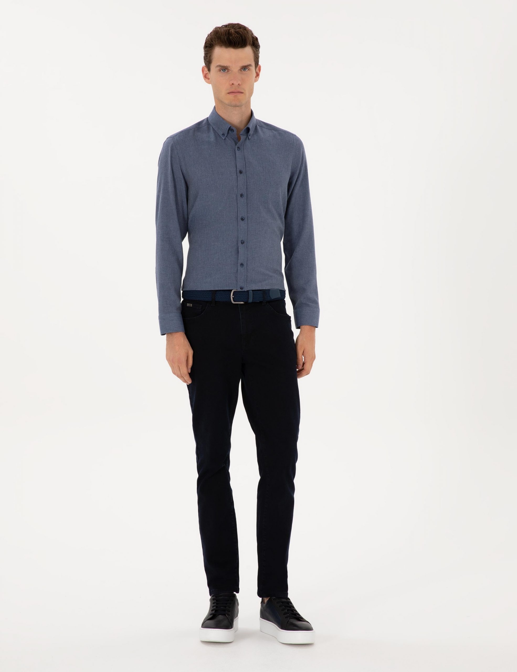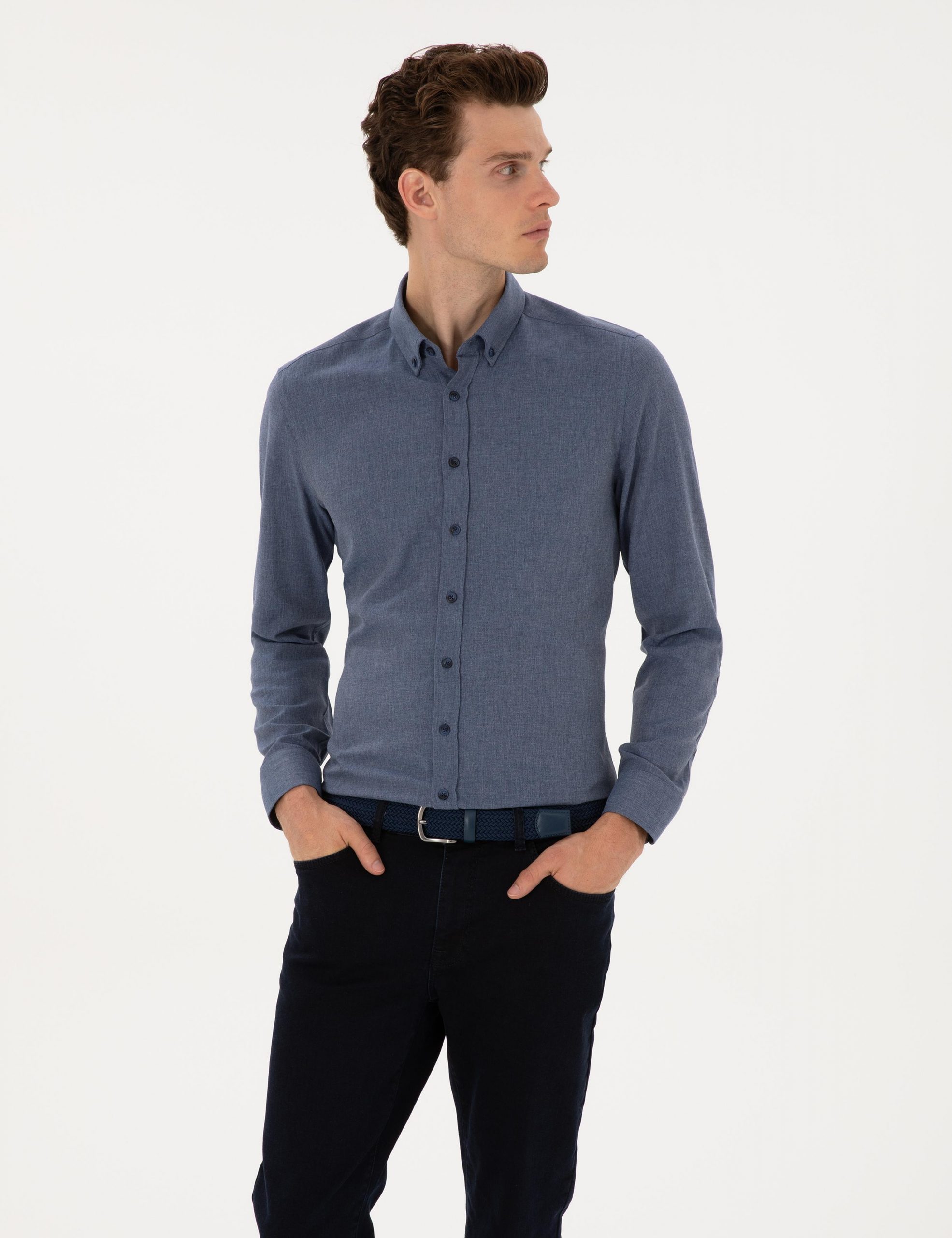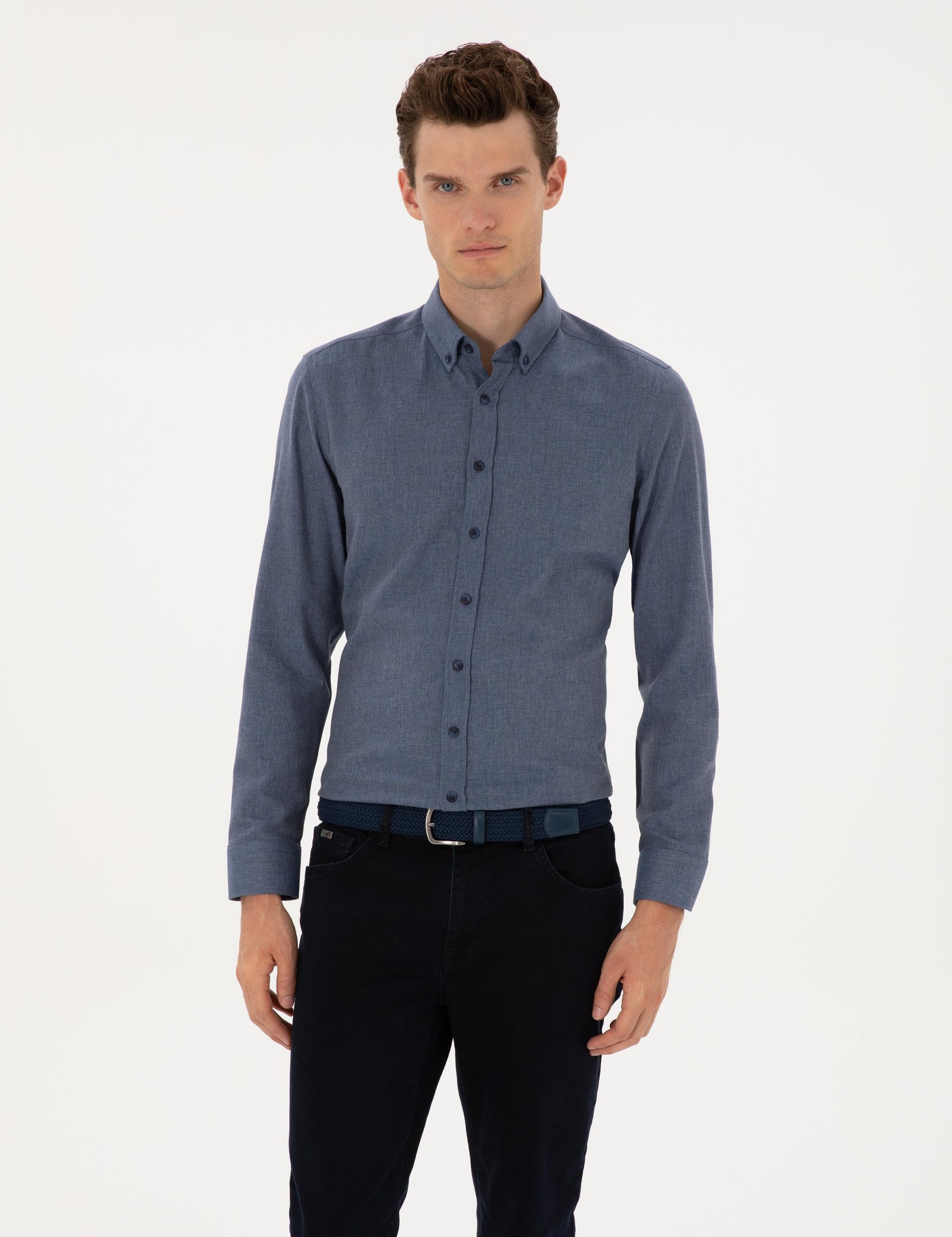 پیراهن آستین بلند مردانه آبی تیره پیرکاردین