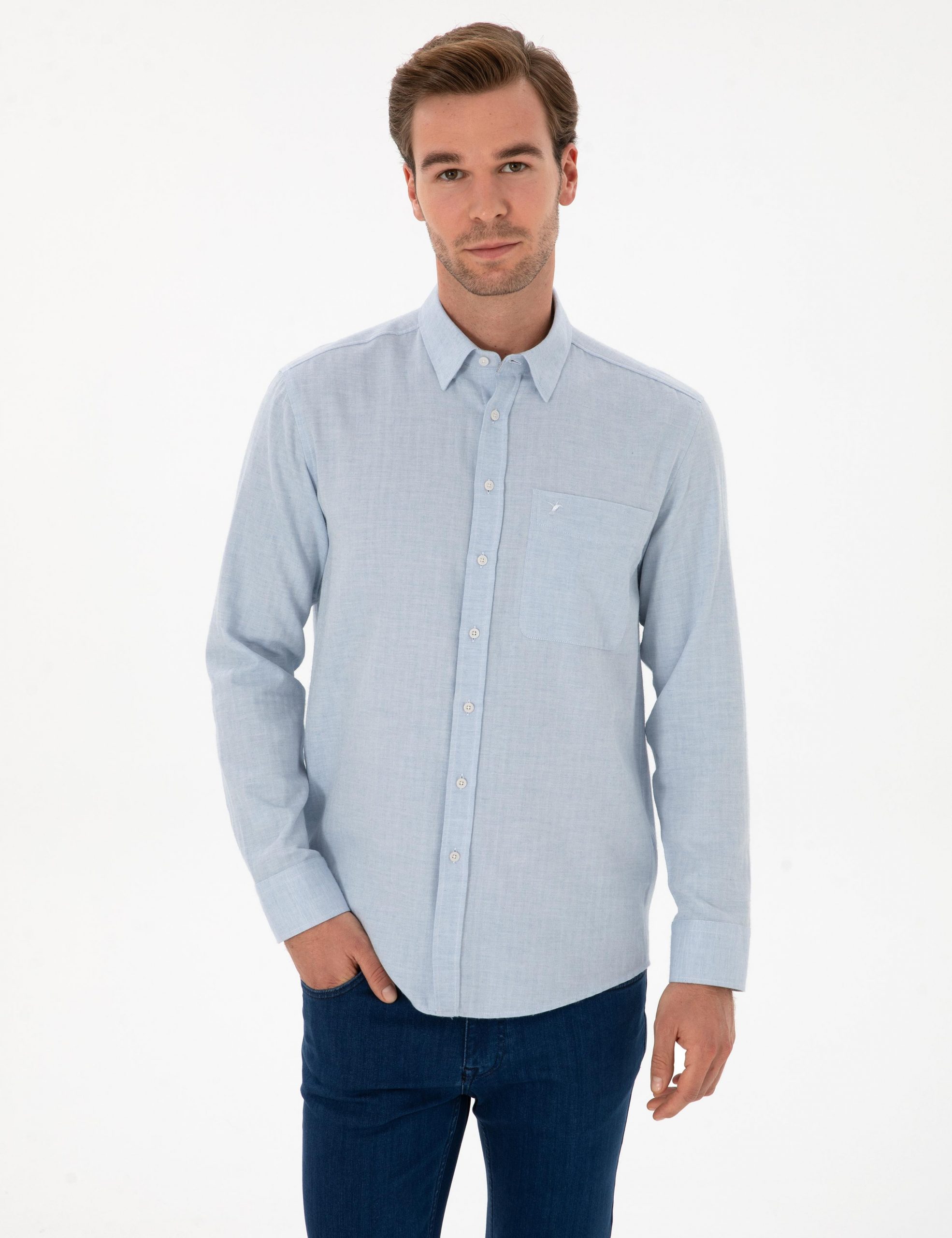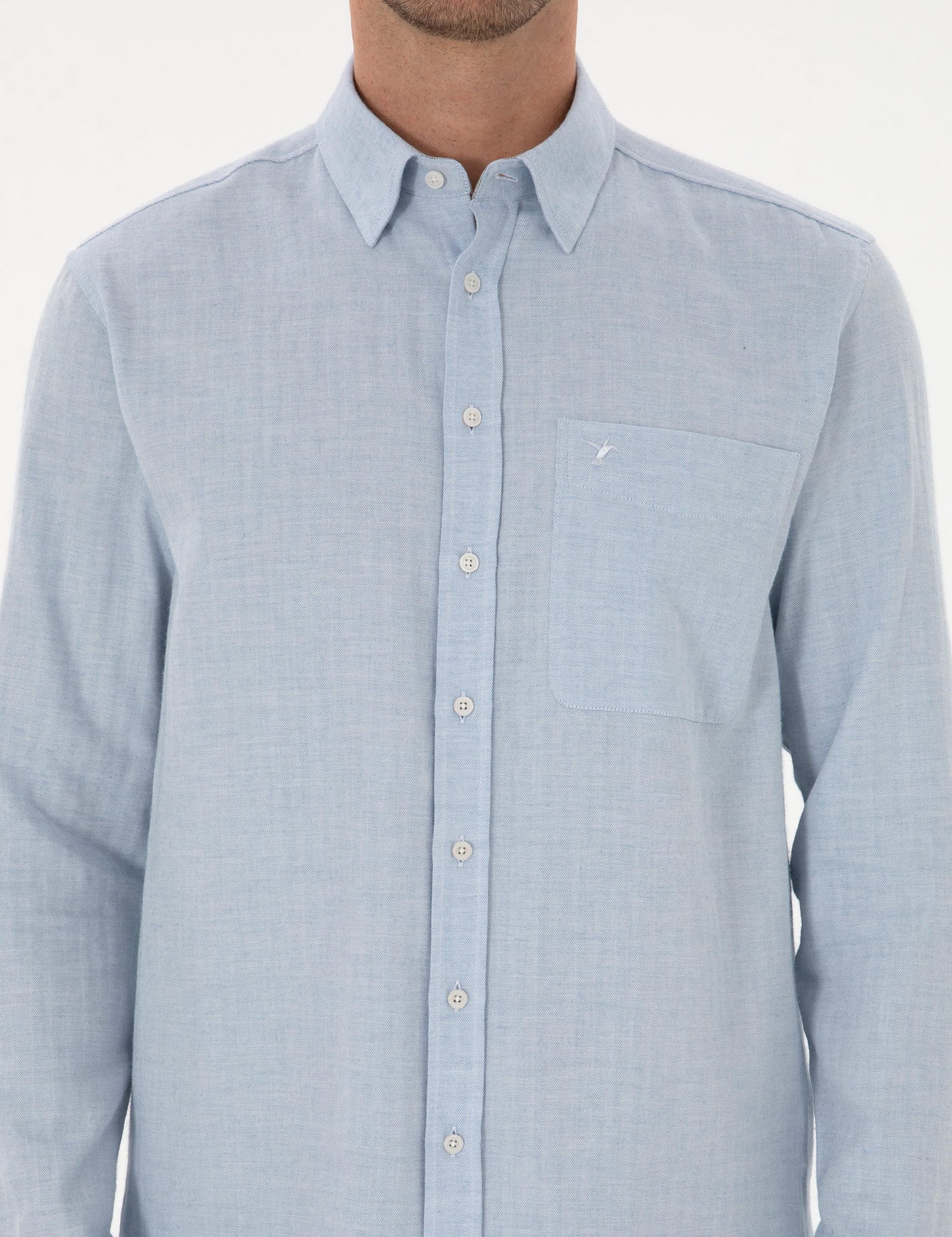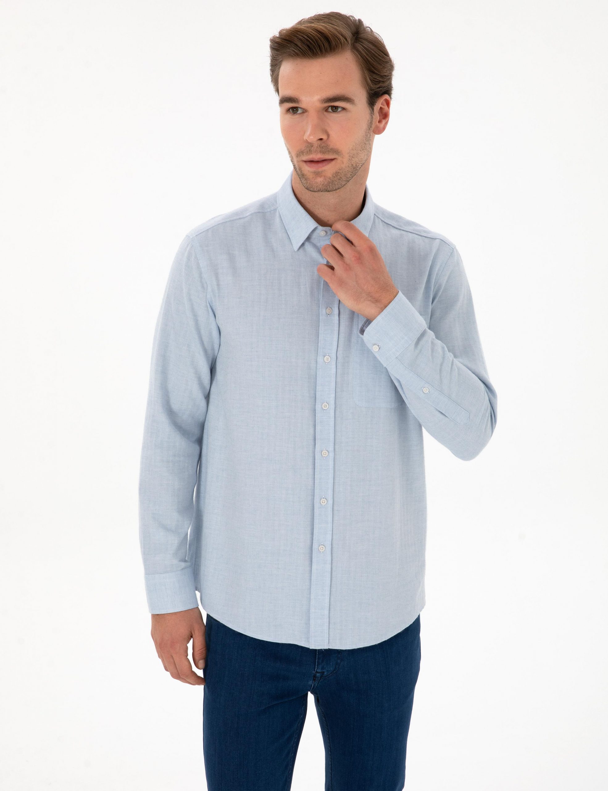پیراهن آستین بلند مردانه آبی روشن کاشارل