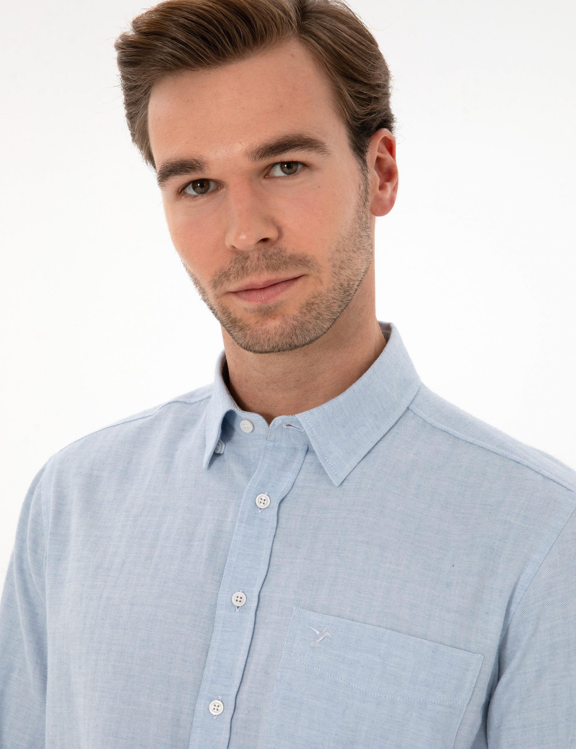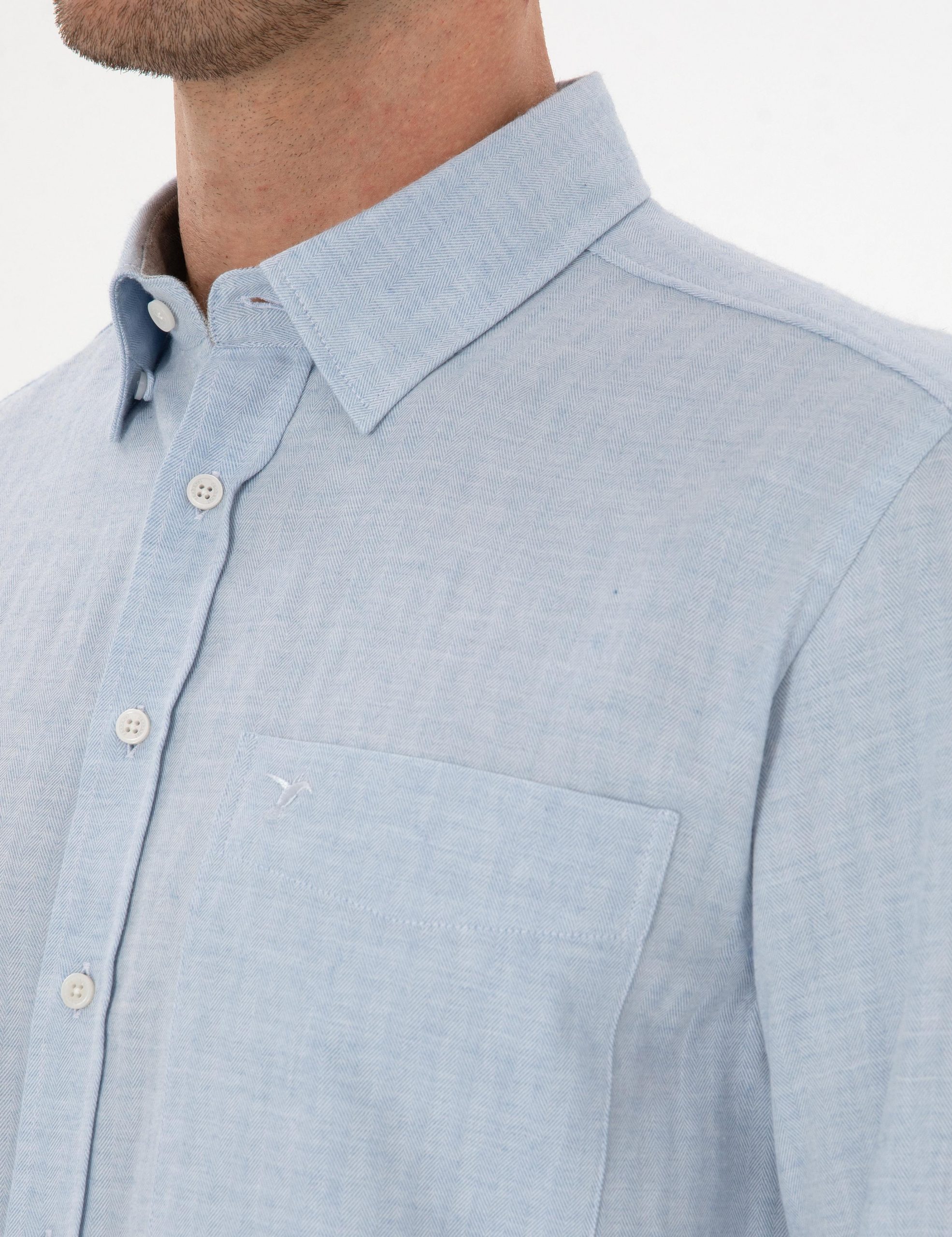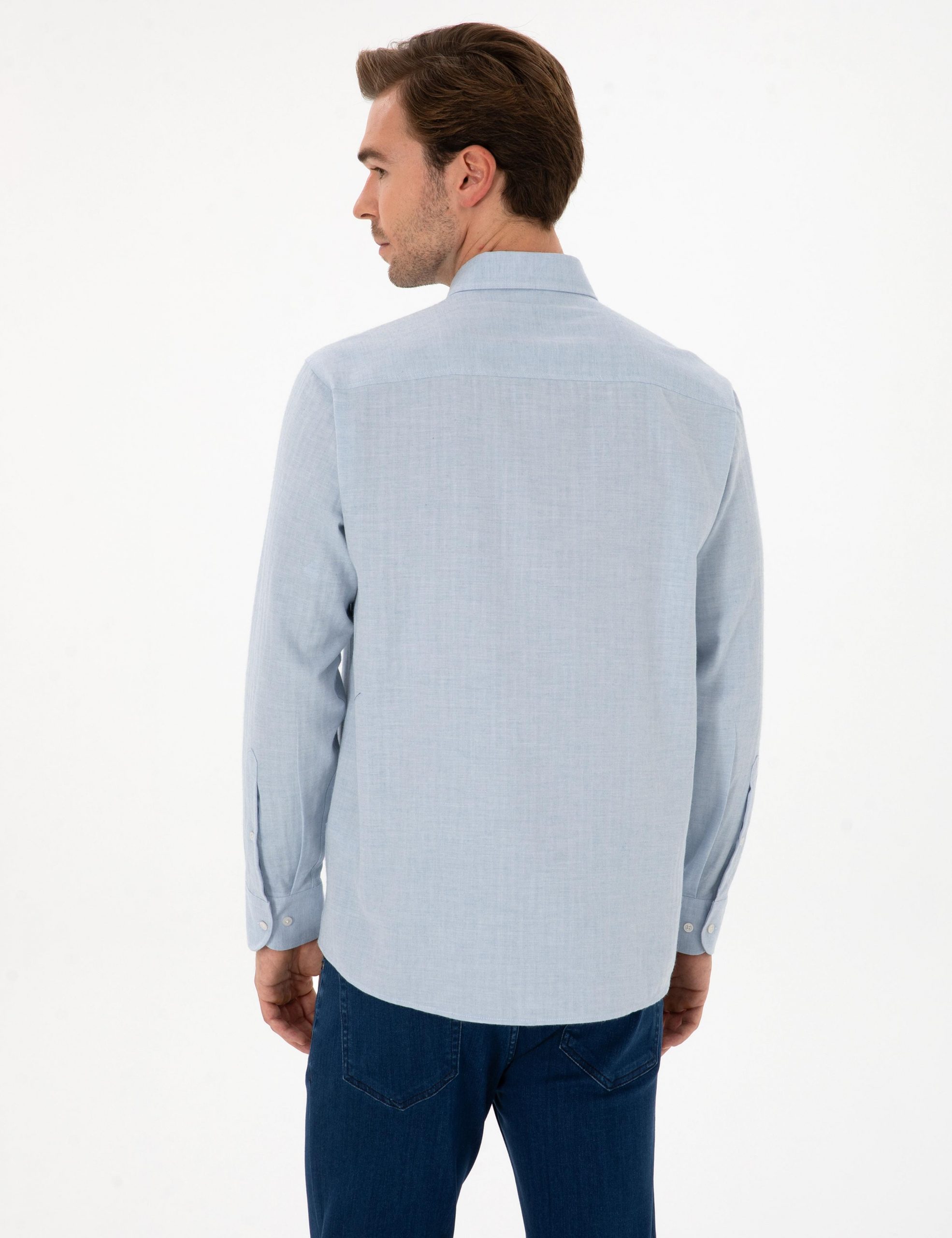 پیراهن آستین بلند مردانه آبی روشن کاشارل