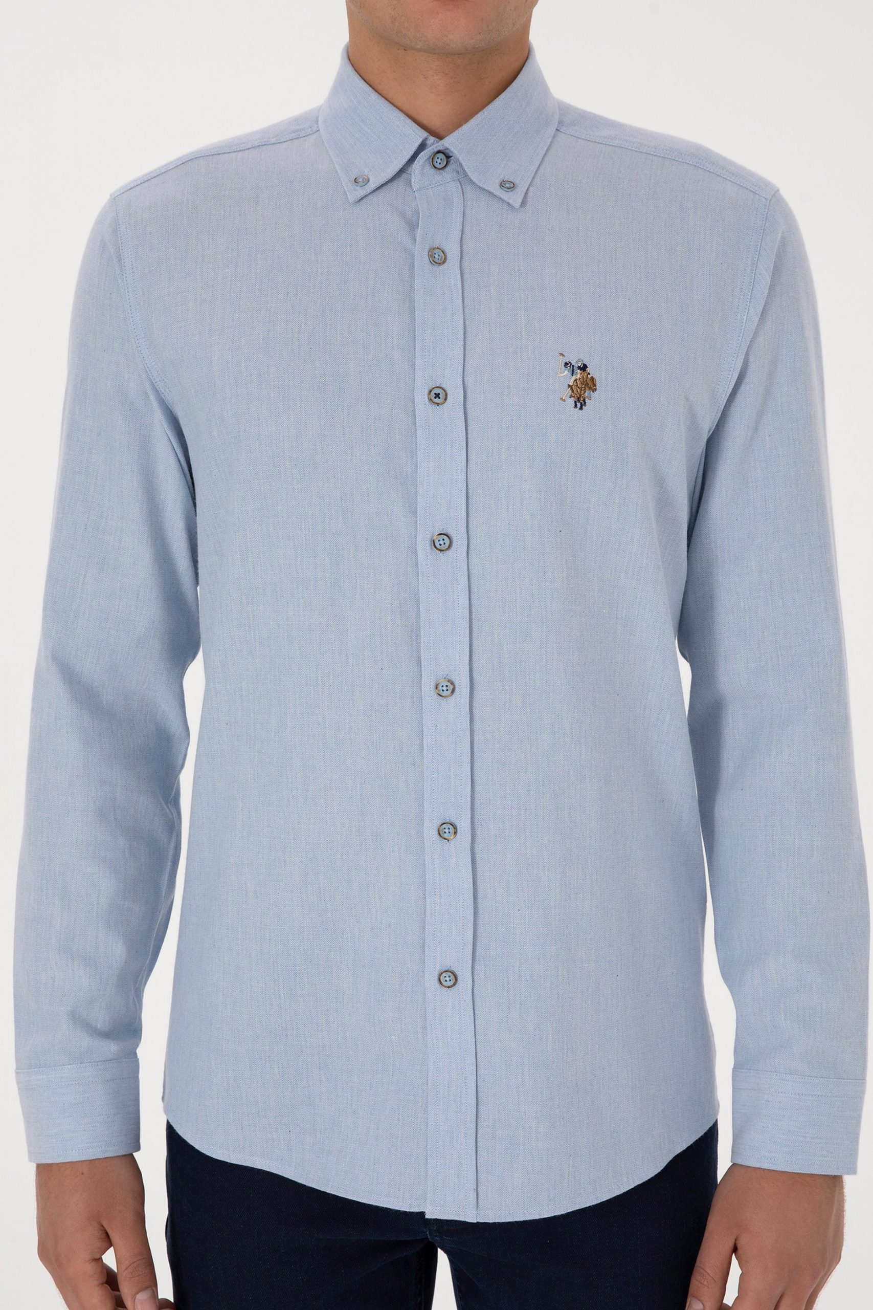 پیراهن آستین بلند مردانه آبی روشن یو اس پولو