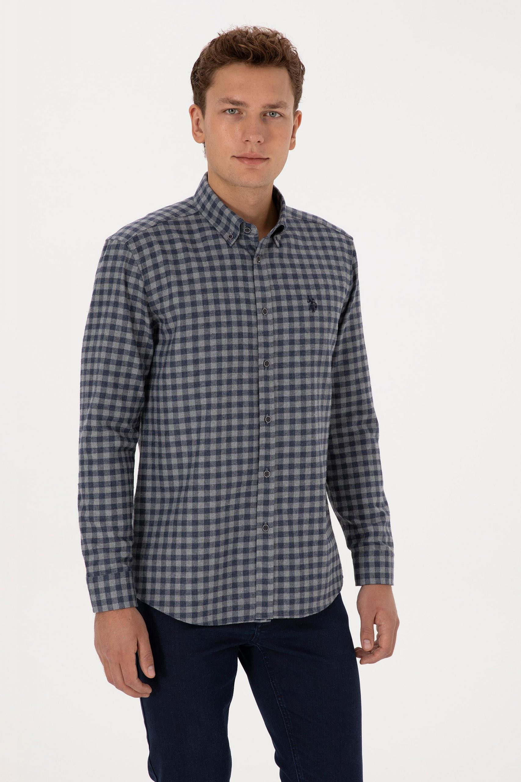 پیراهن آستین بلند مردانه آبی روشن یو اس پولو