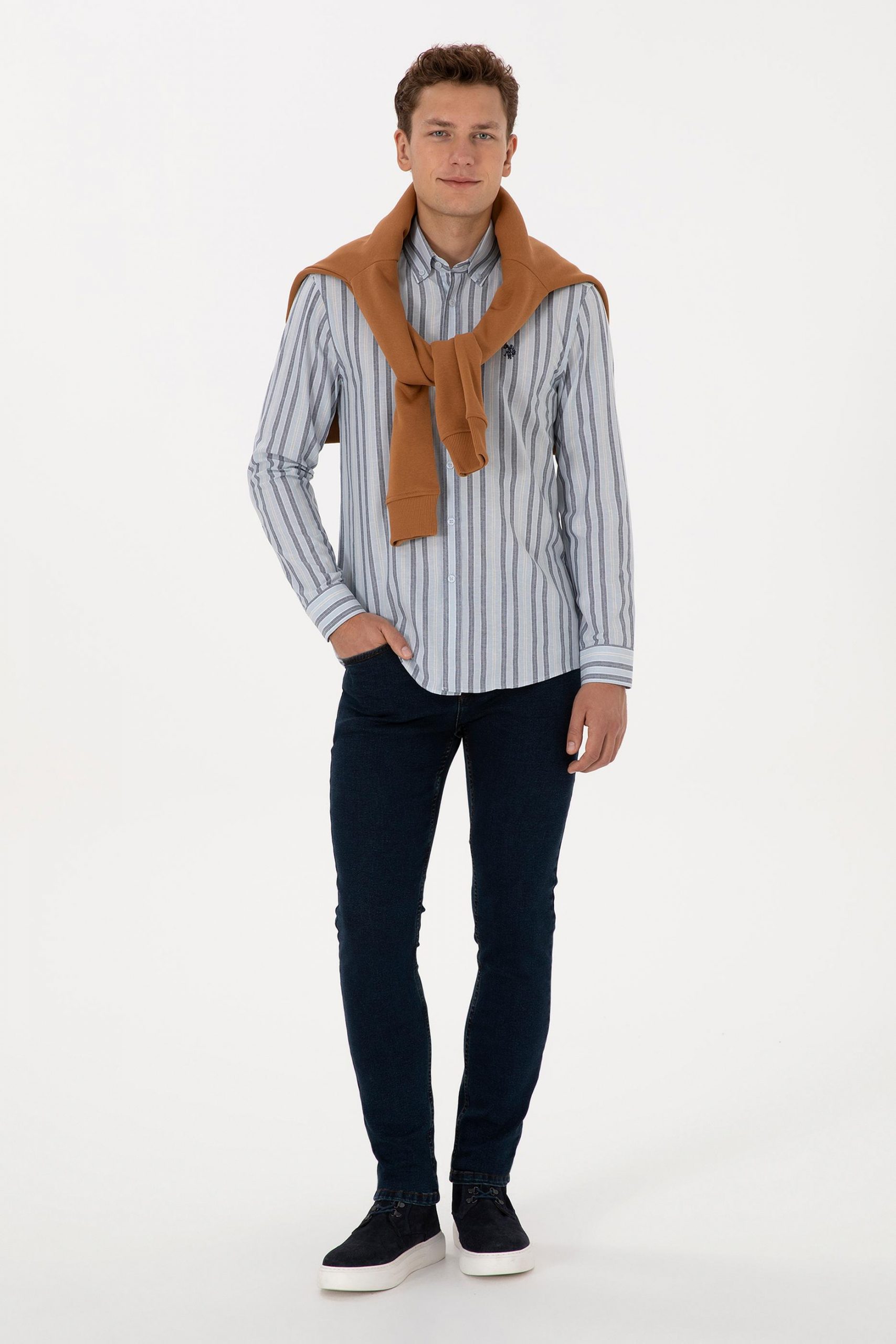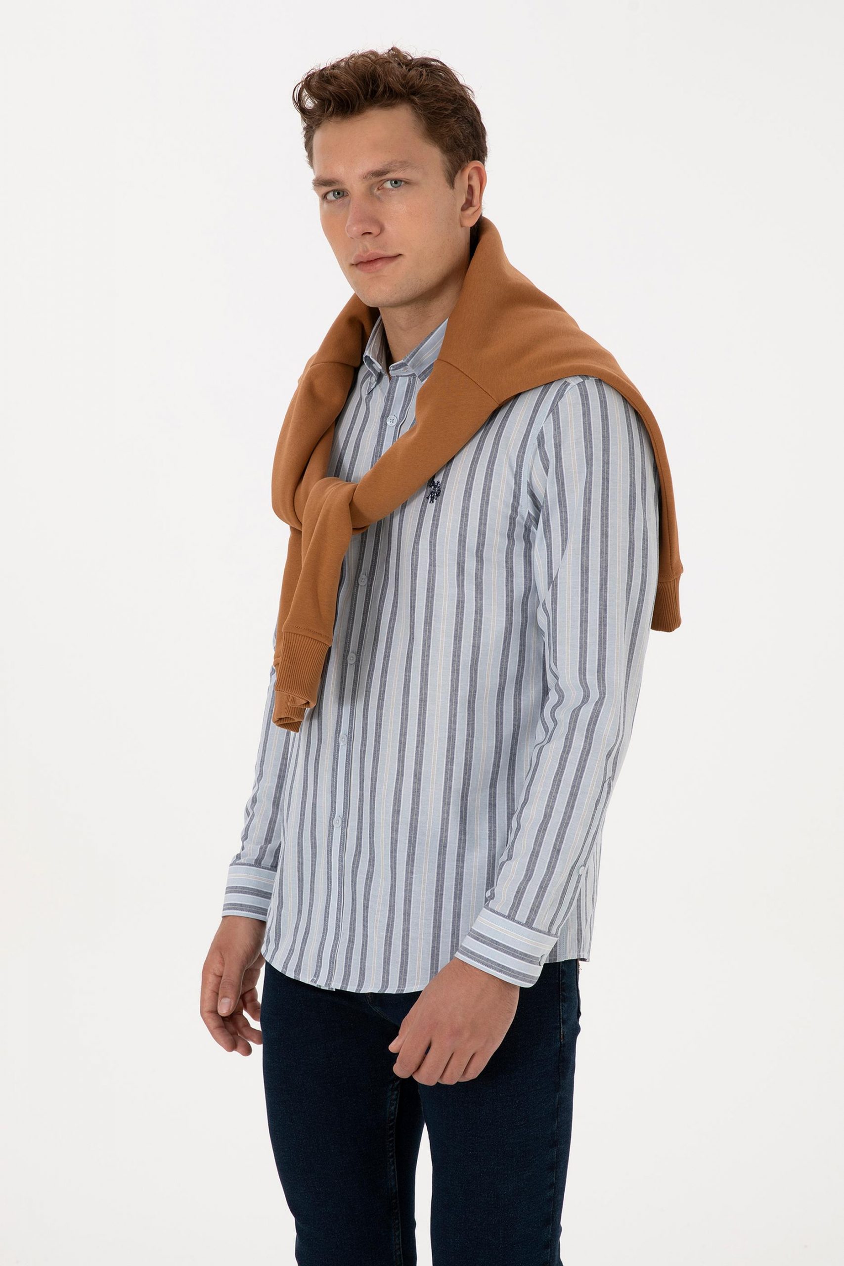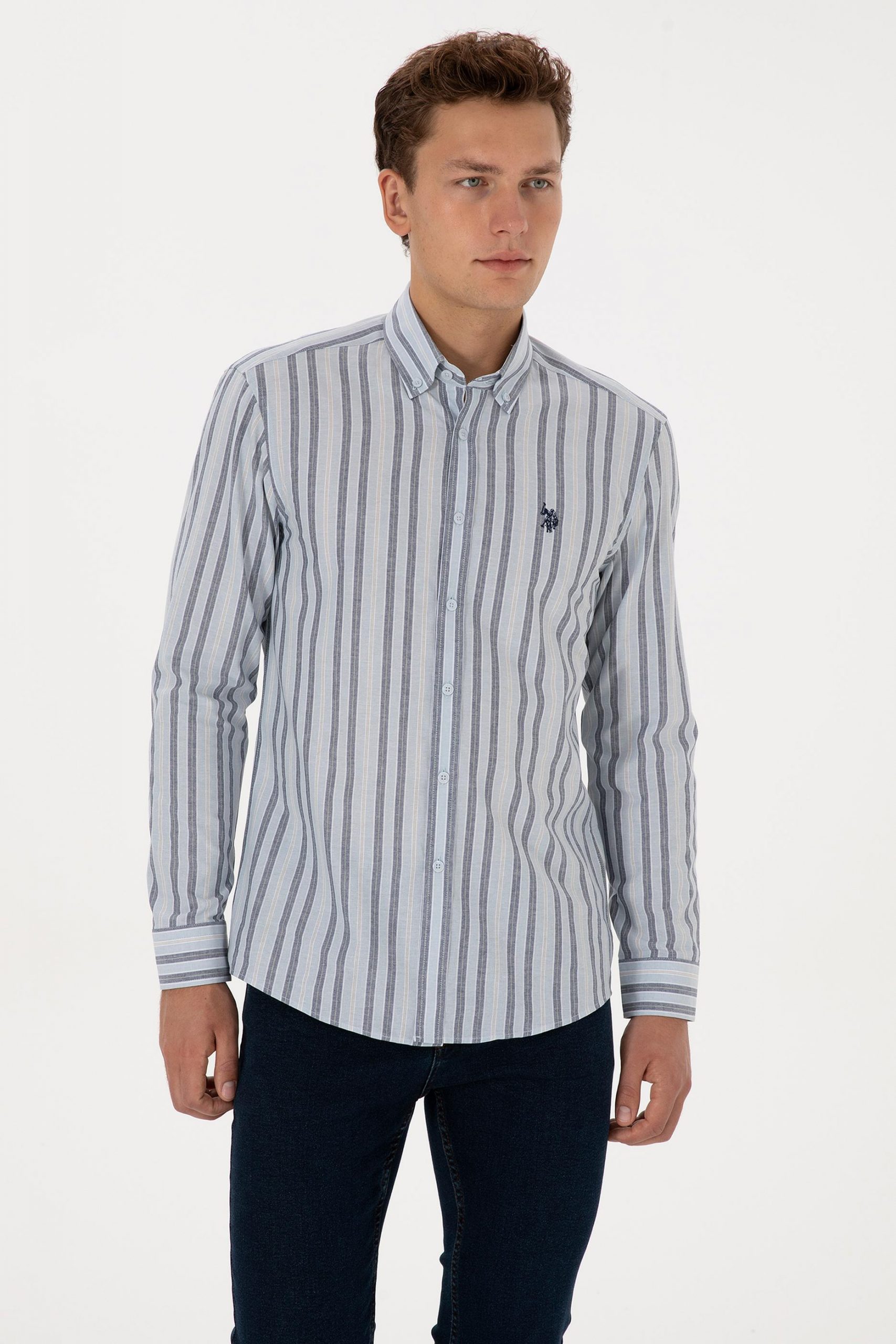 پیراهن آستین بلند مردانه آبی روشن یو اس پولو