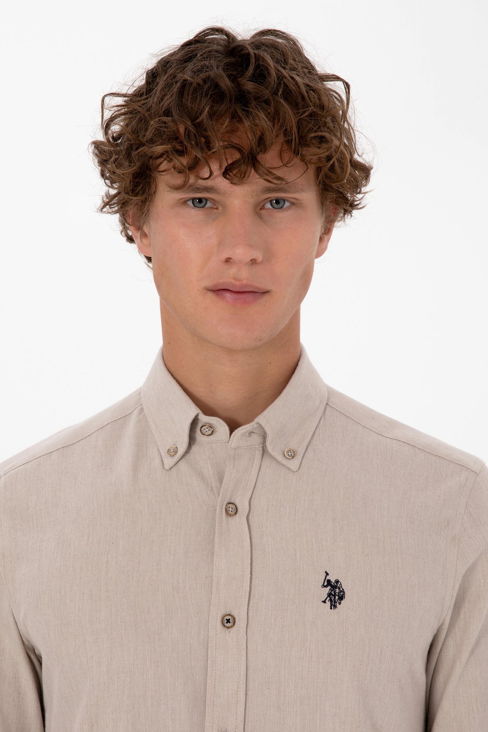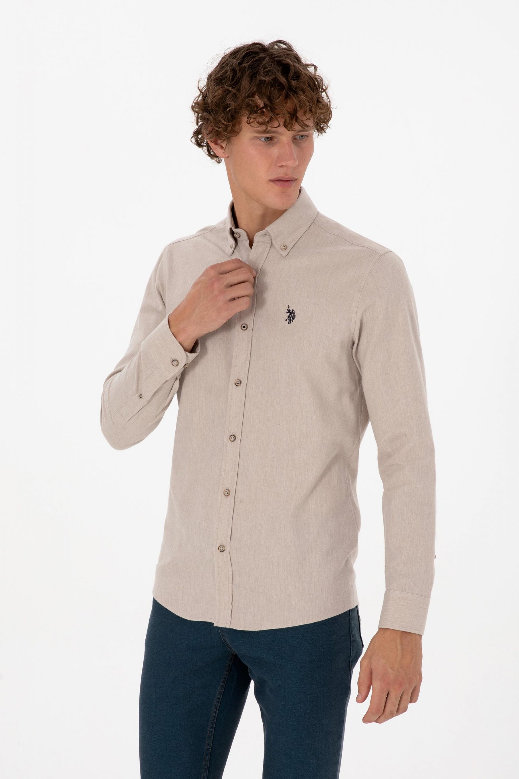 پیراهن آستین بلند مردانه بژ یو اس پولو