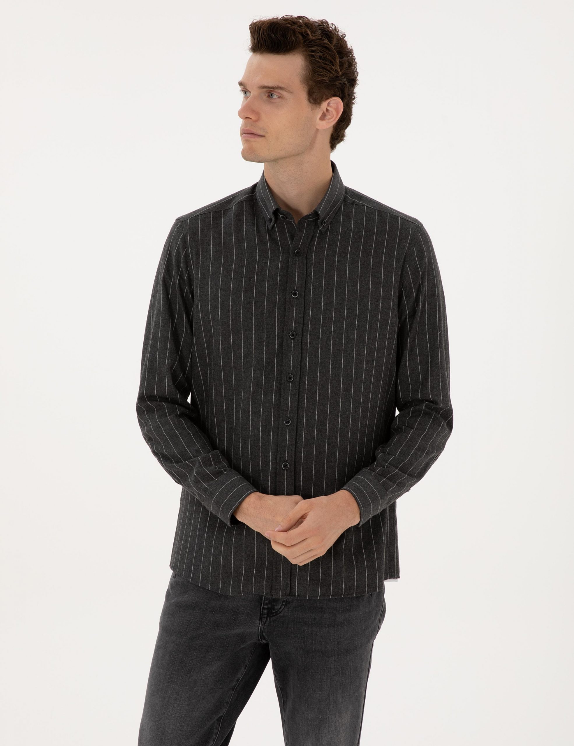 پیراهن آستین بلند مردانه خاکستری تیره پیرکاردین