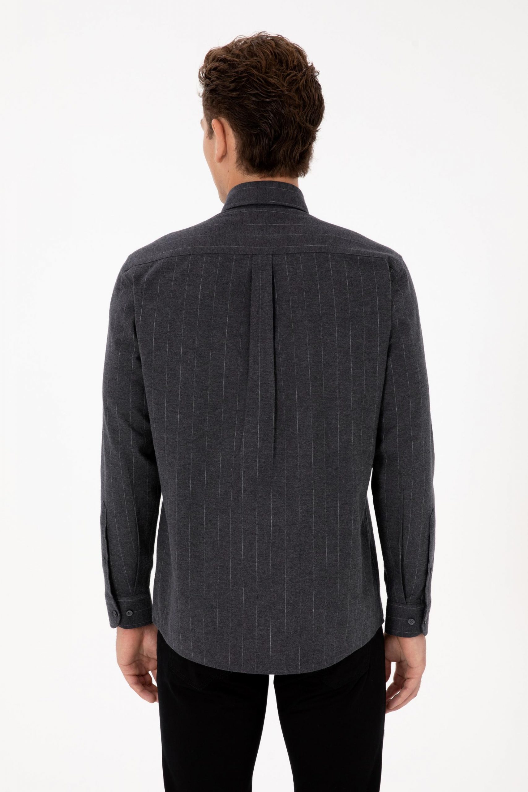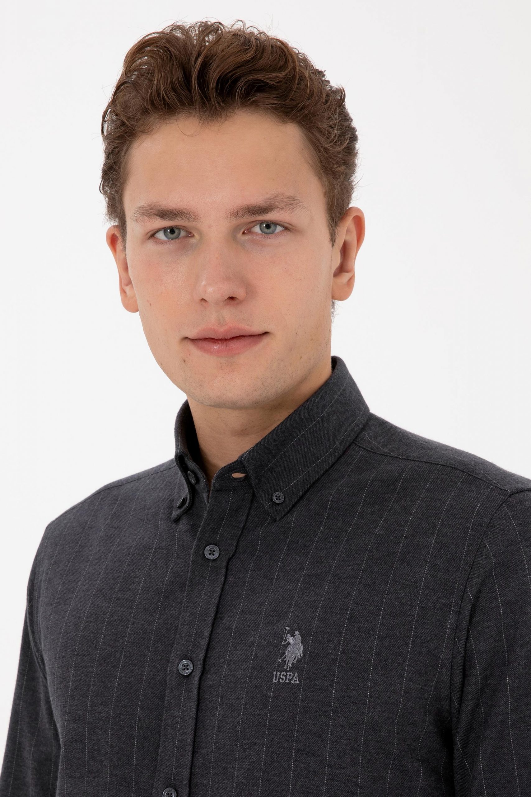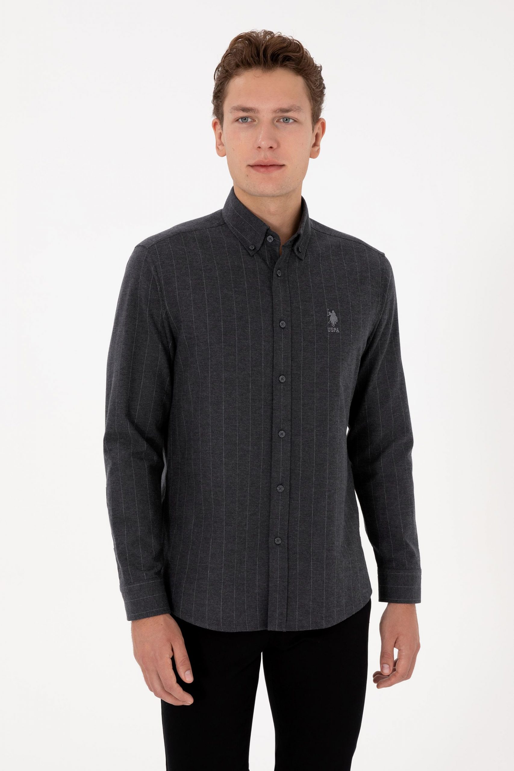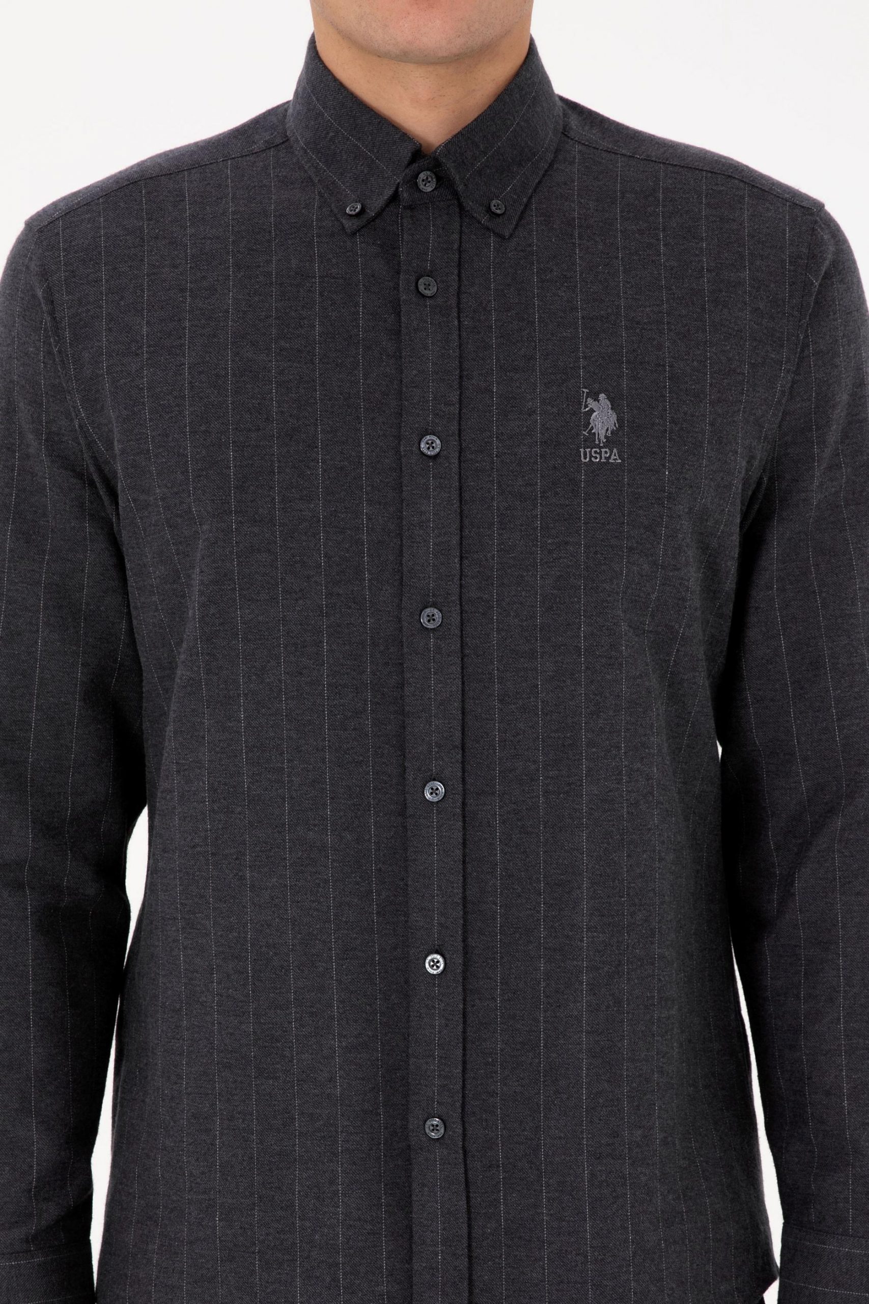 پیراهن آستین بلند مردانه خاکستری تیره یو اس پولو