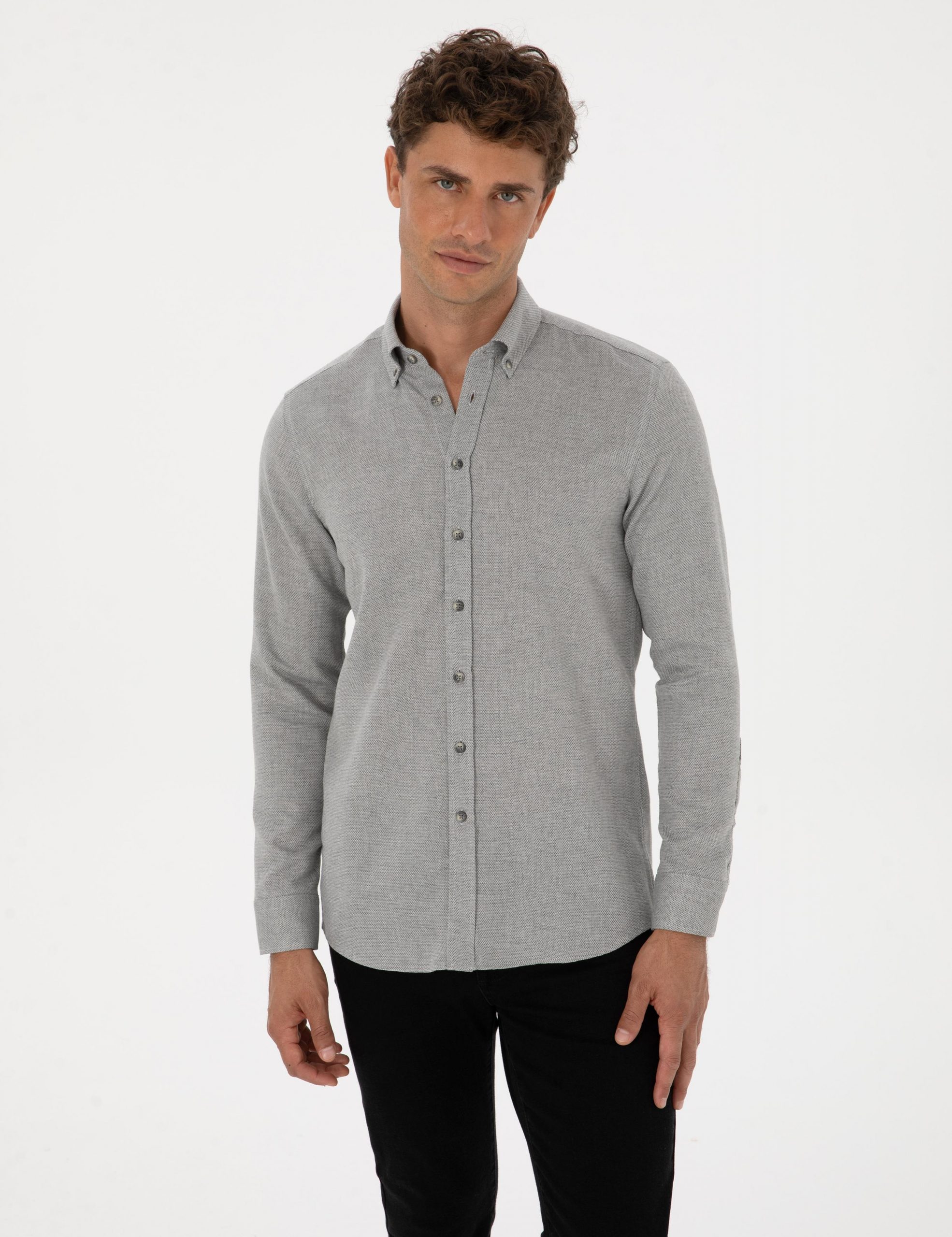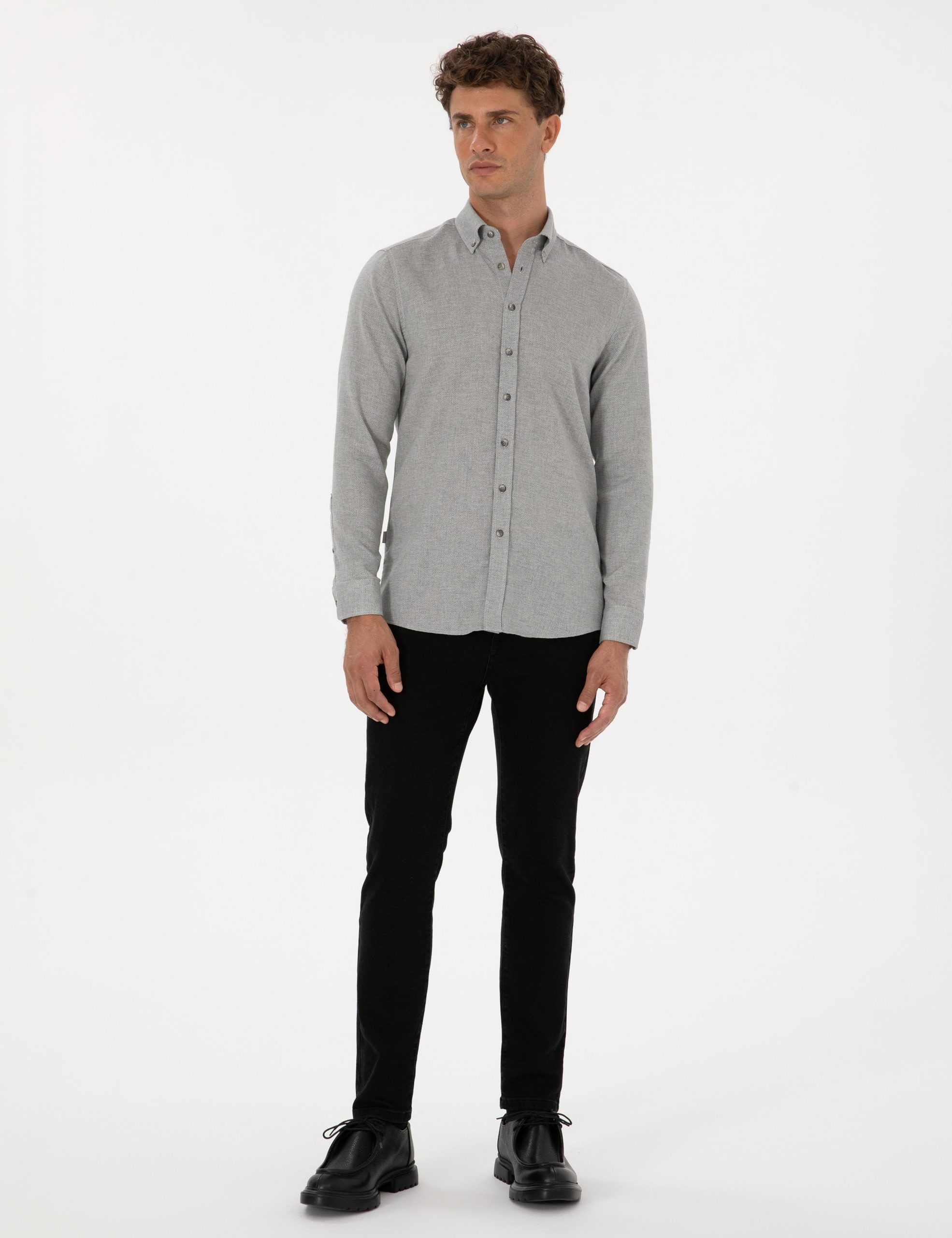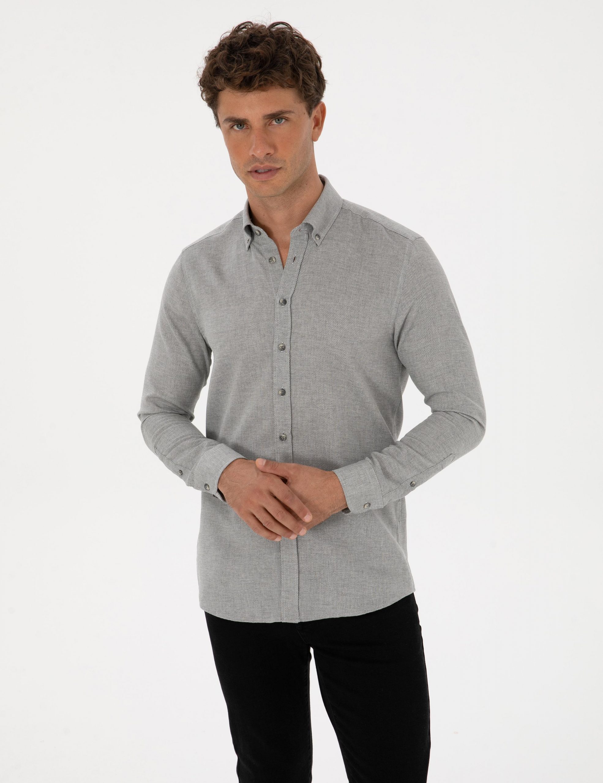 پیراهن آستین بلند مردانه خاکستری پیرکاردین