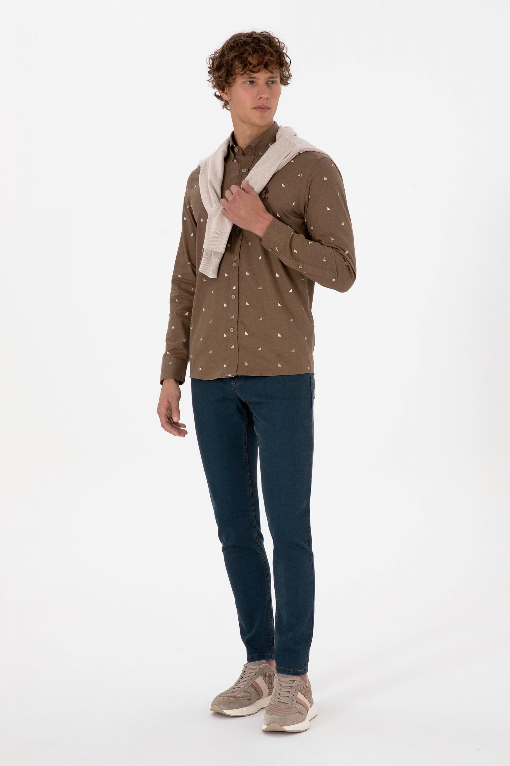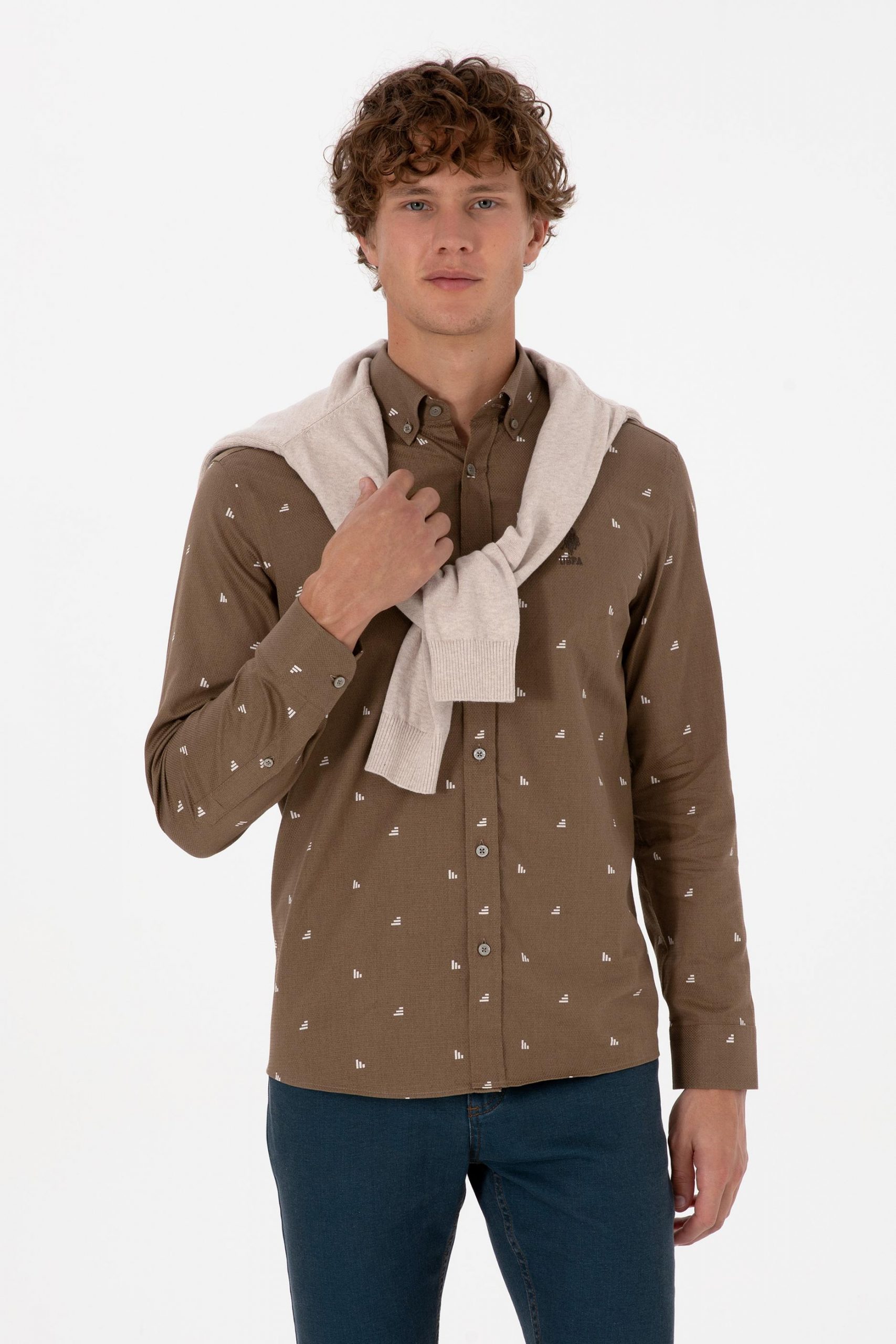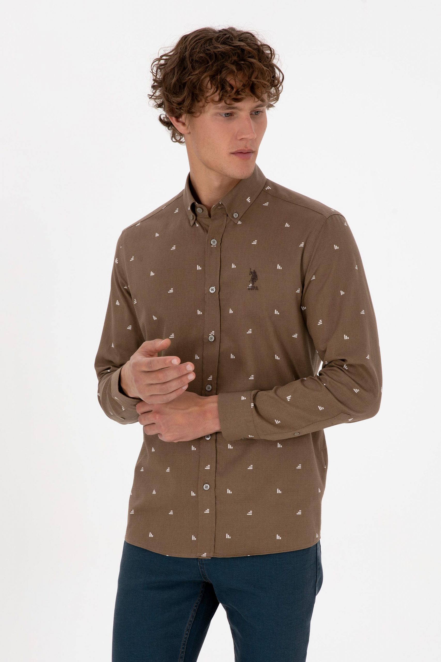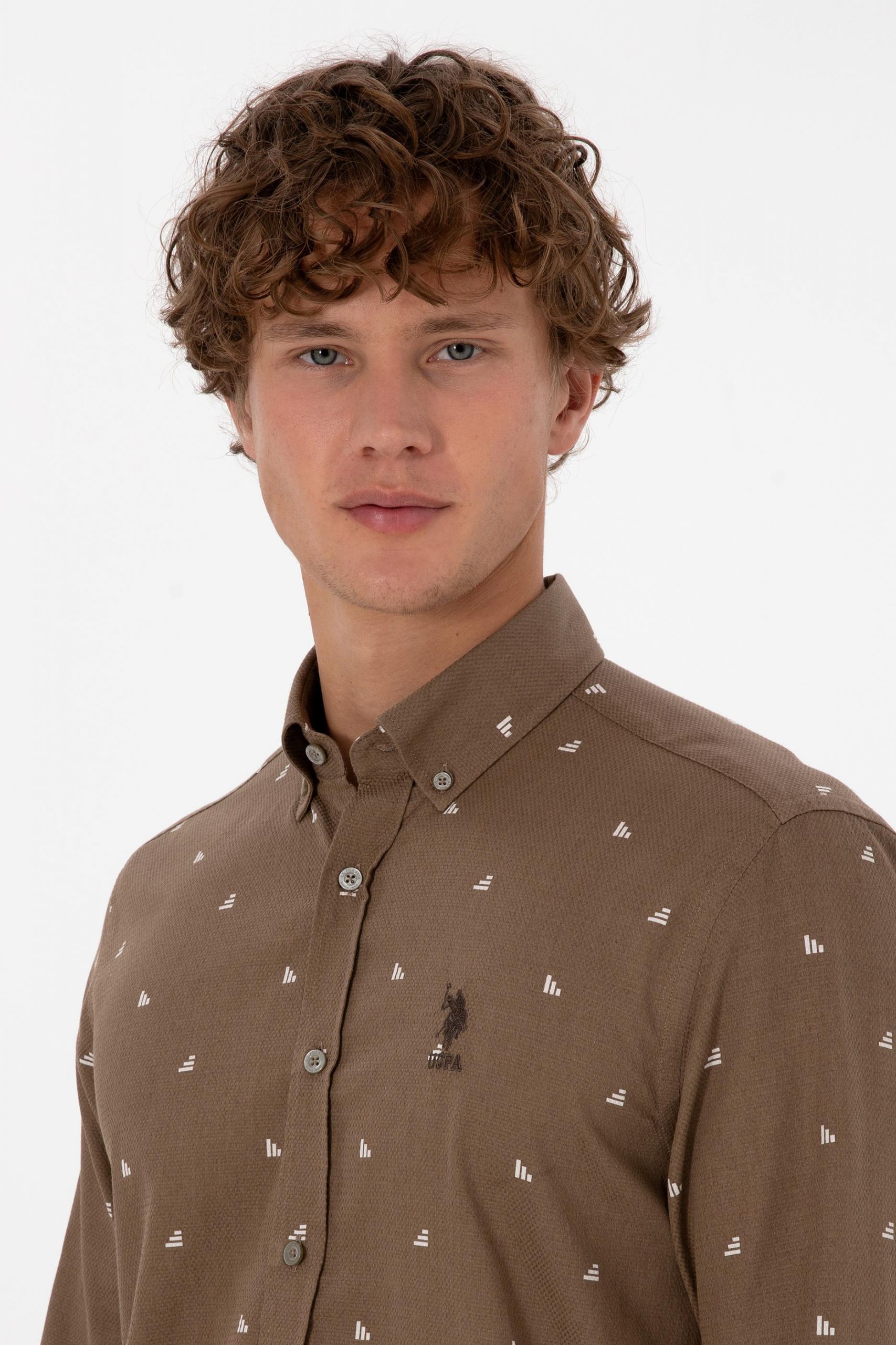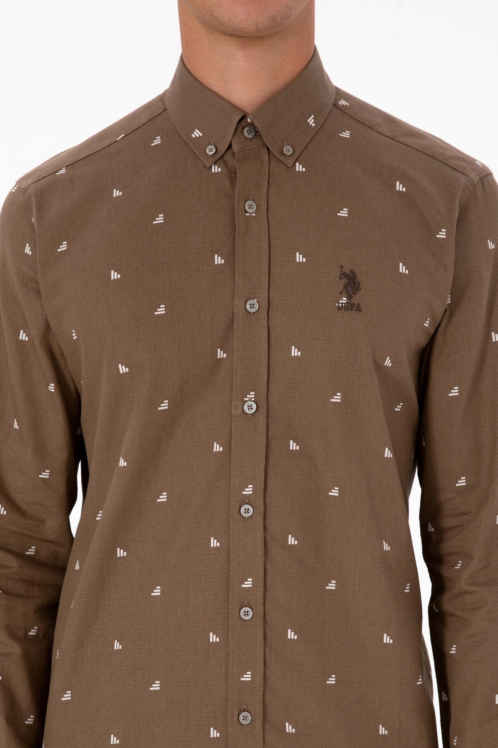 پیراهن آستین بلند مردانه خاکی روشن یو اس پولو