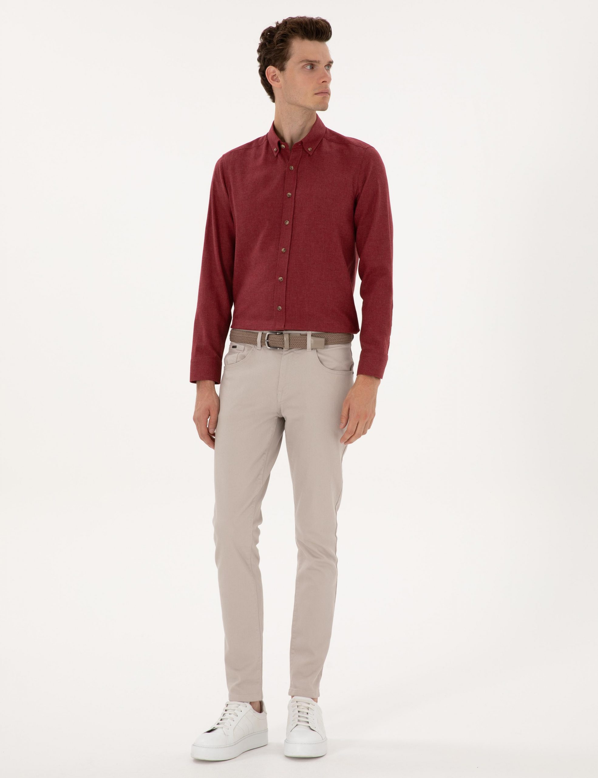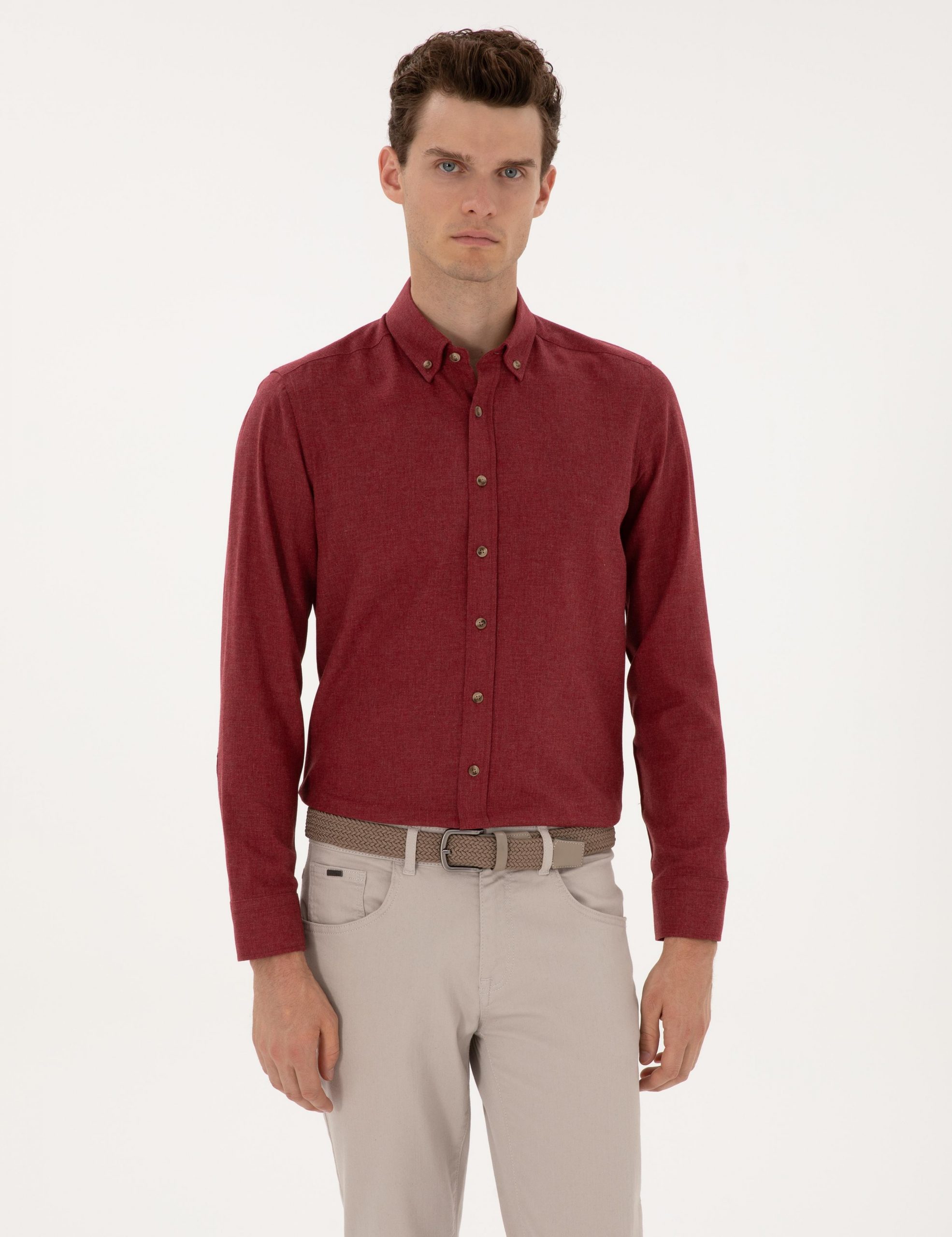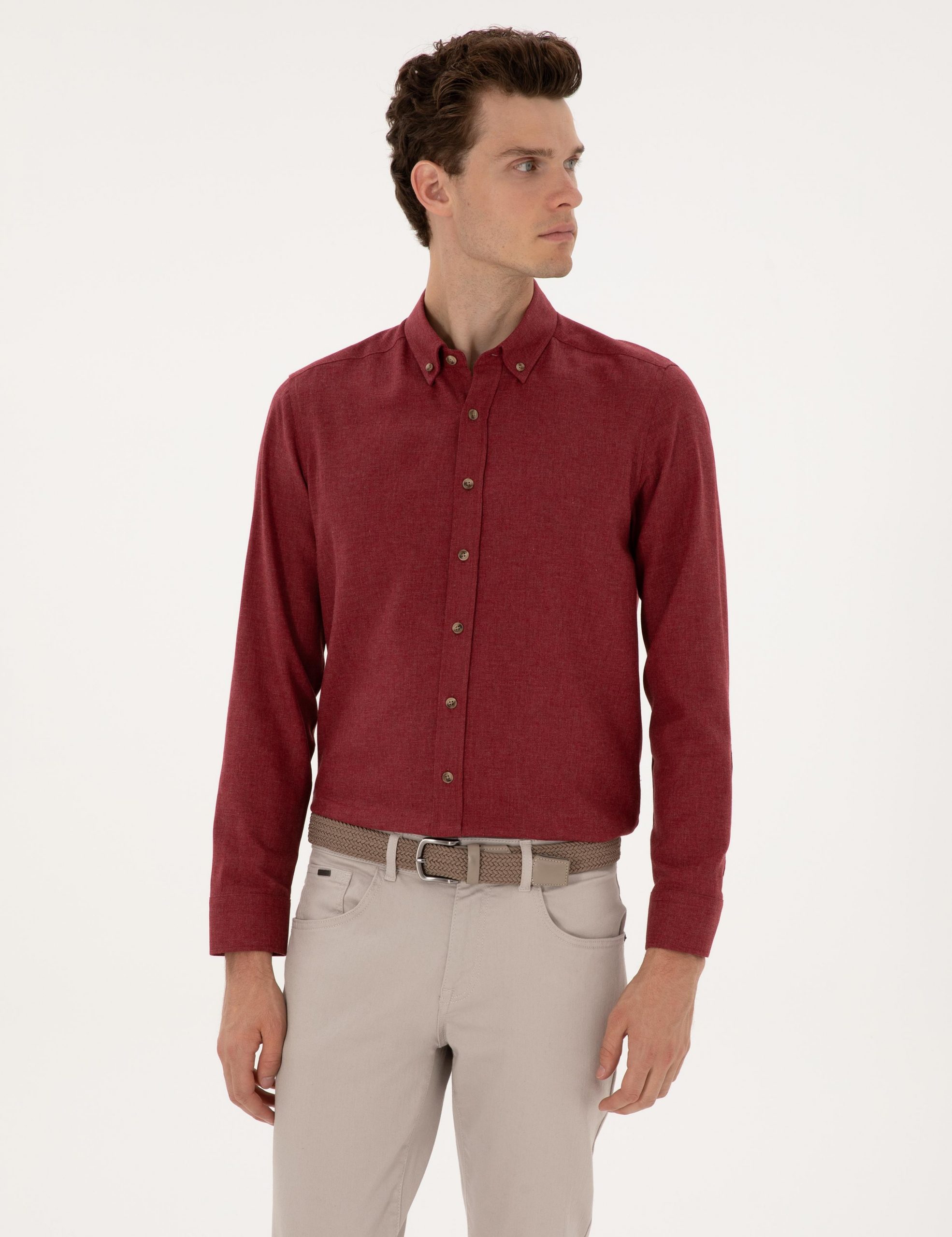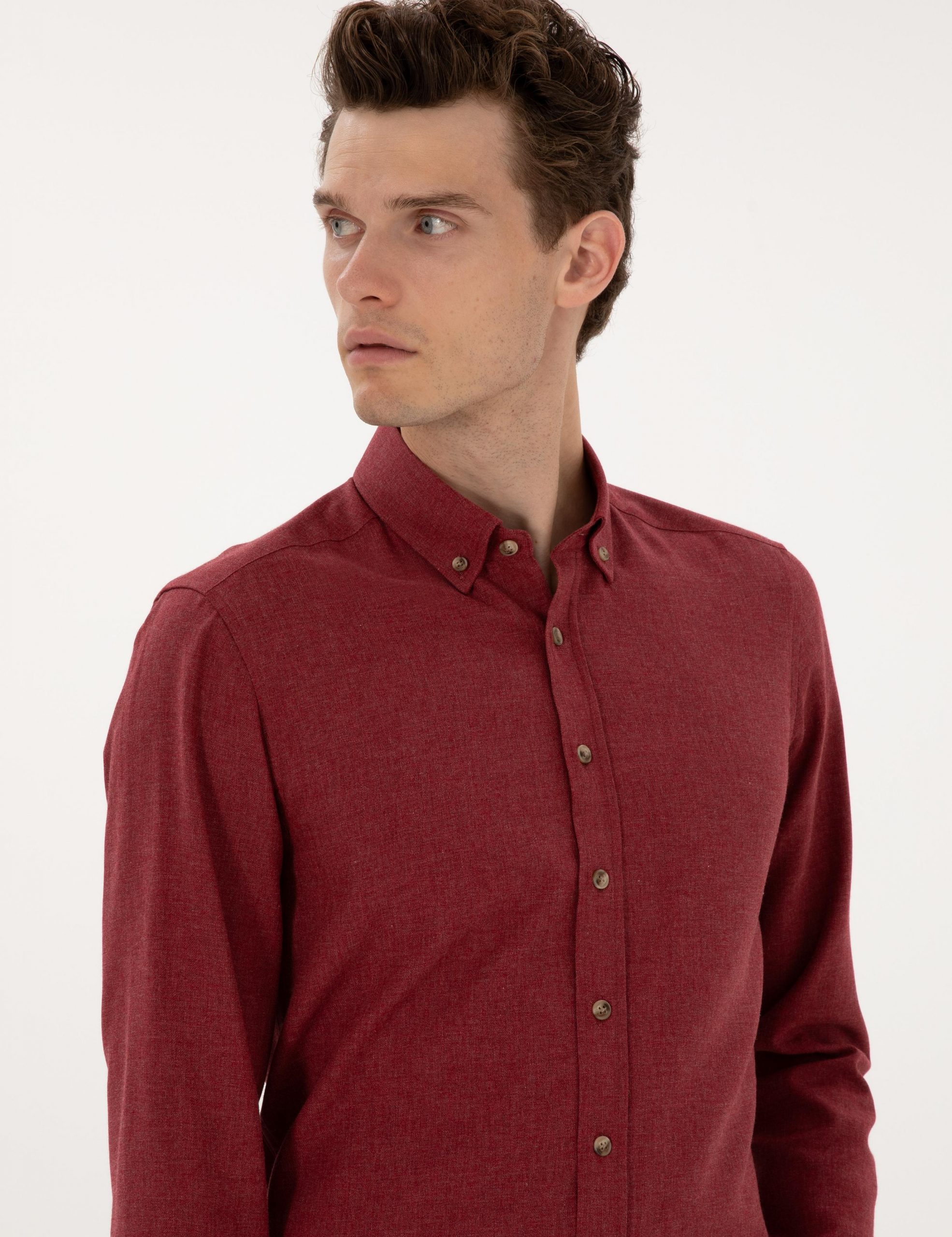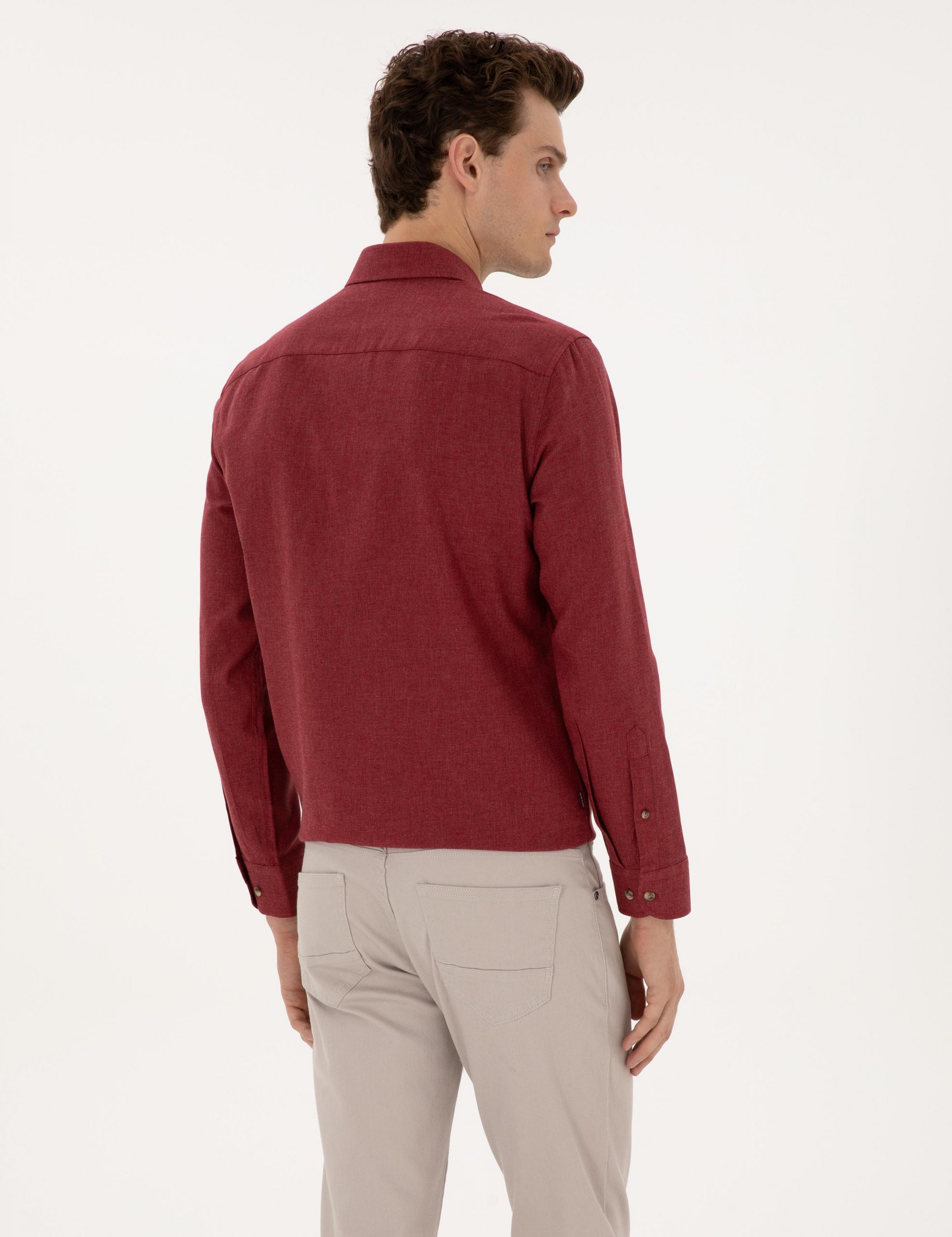 پیراهن آستین بلند مردانه زرشکی پیرکاردین