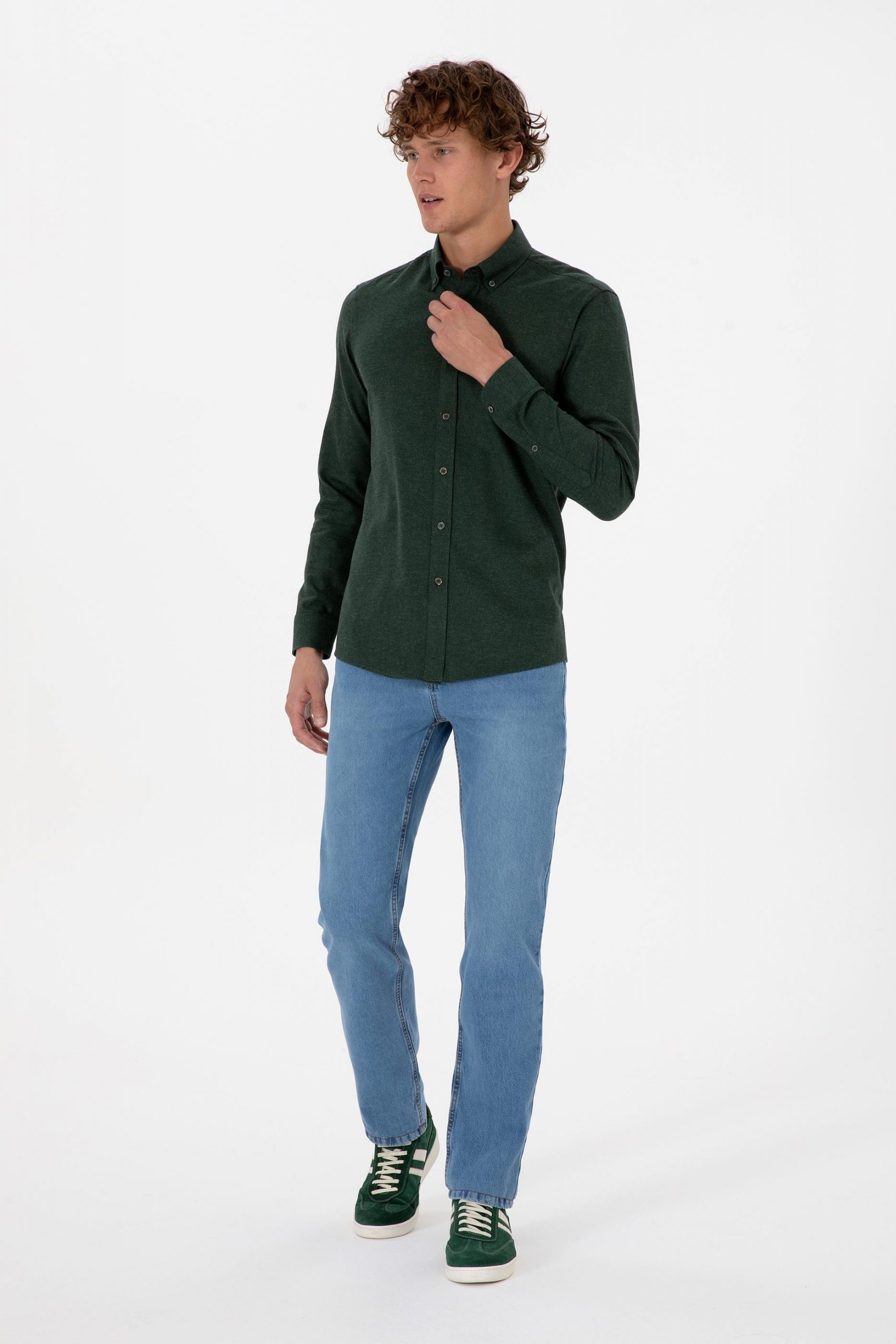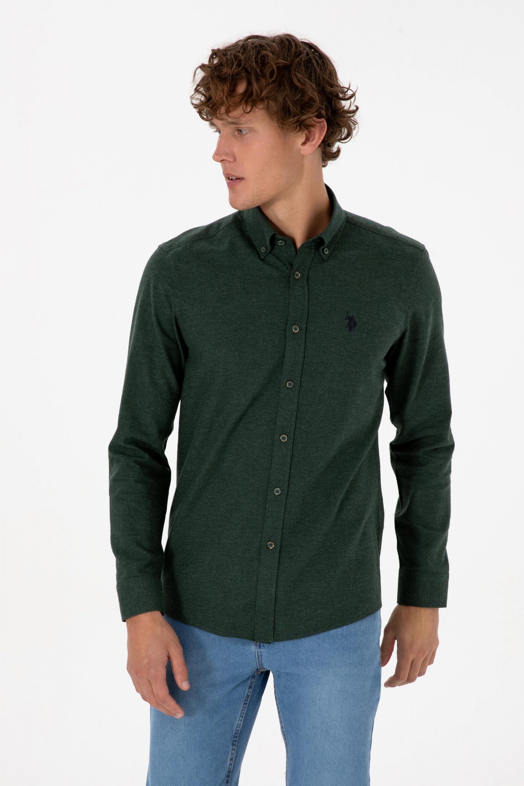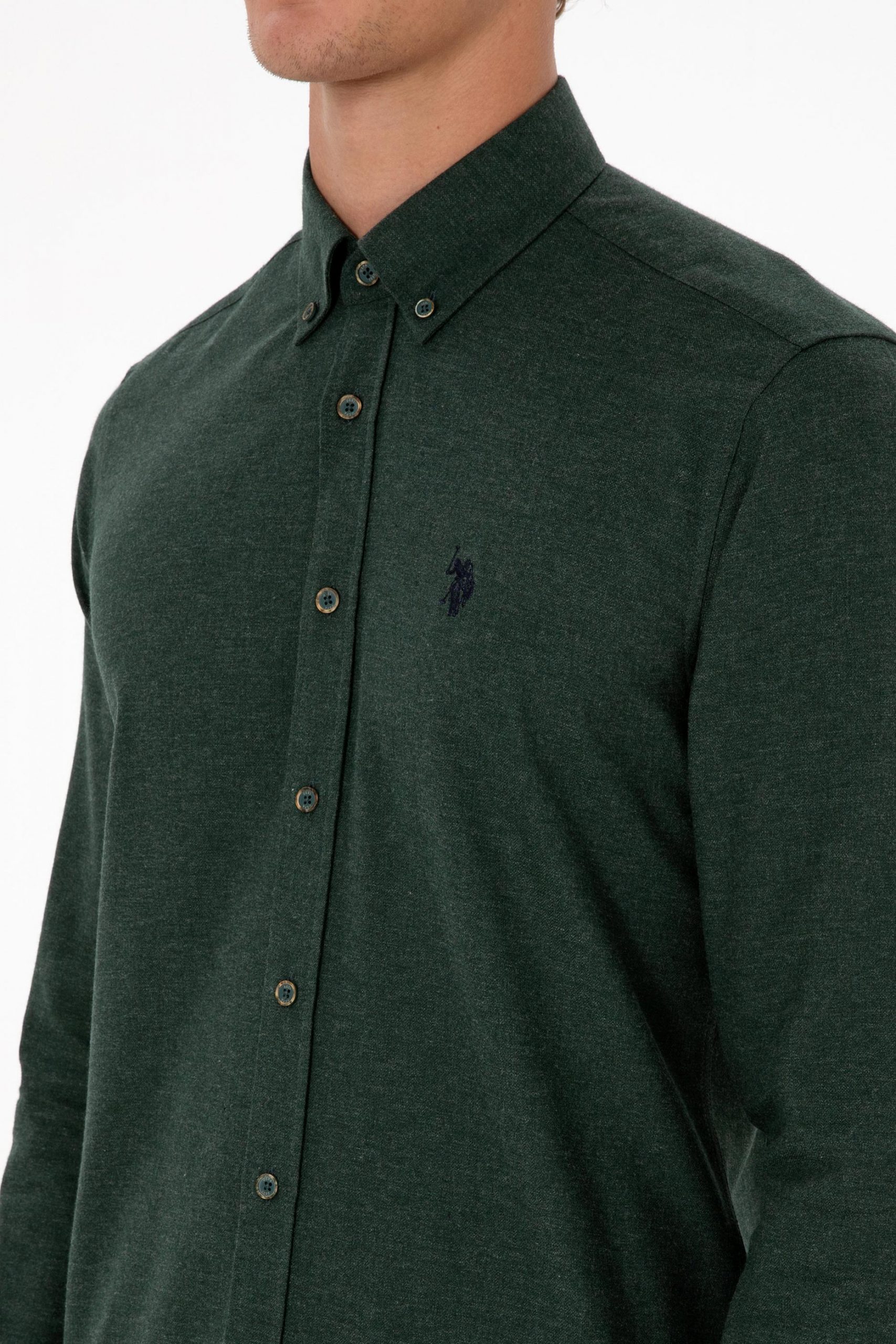 پیراهن آستین بلند مردانه سبز تیره یو اس پولو