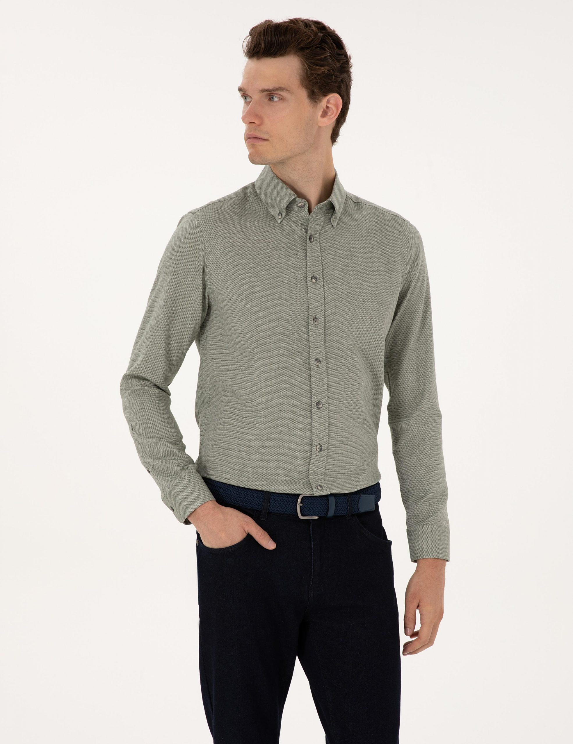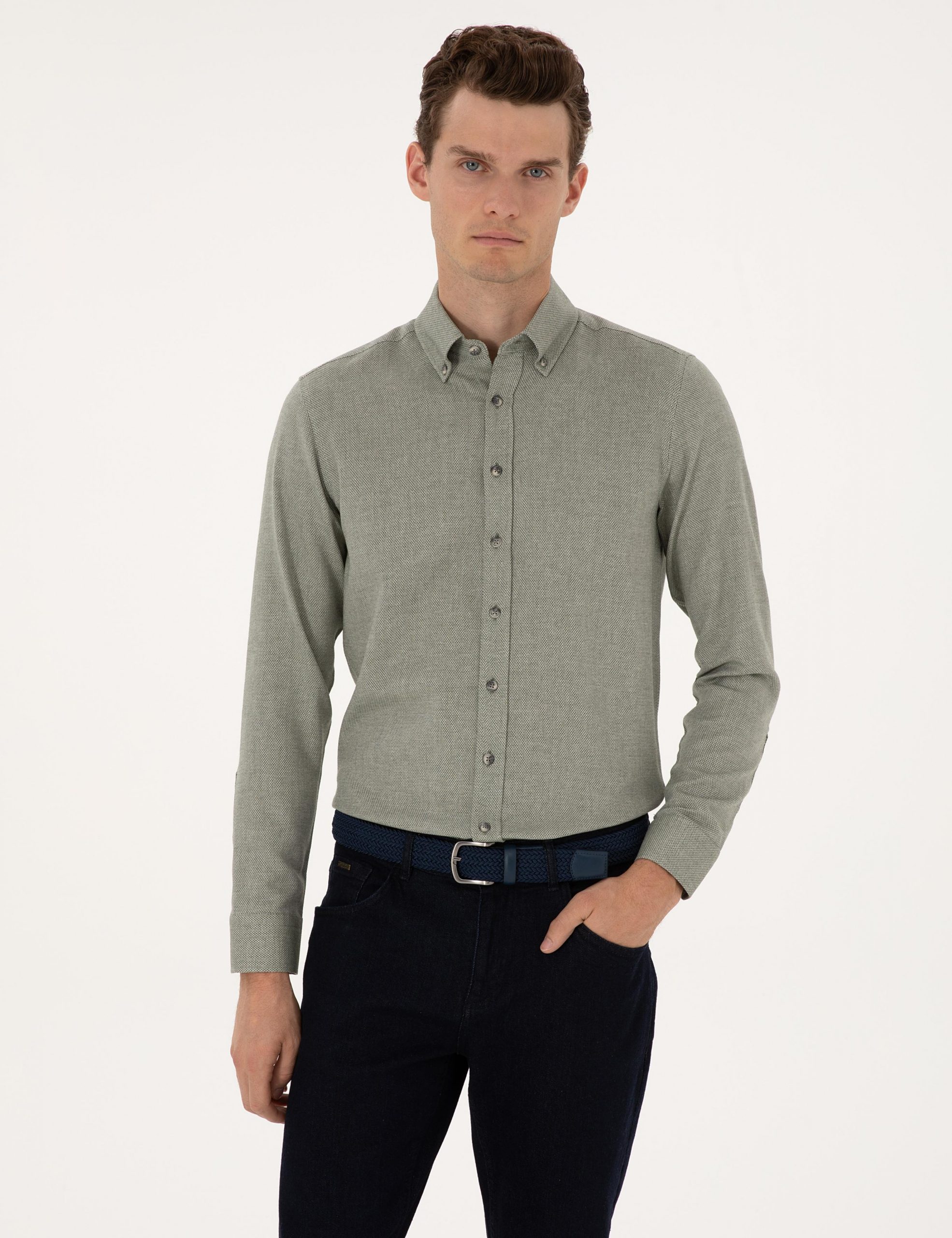 پیراهن آستین بلند مردانه سبز پیرکاردین
