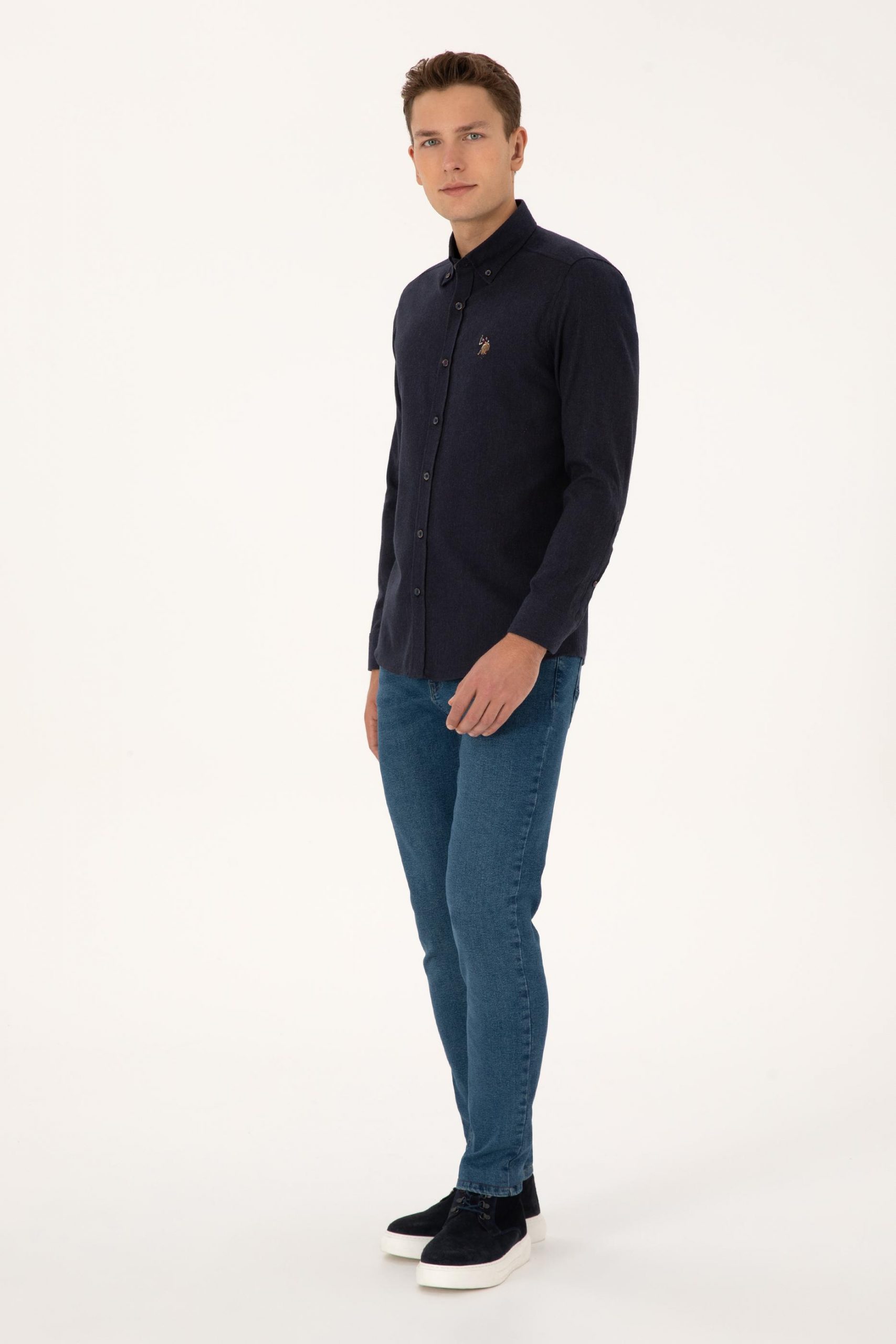 پیراهن آستین بلند مردانه سرمه ای یو اس پولو