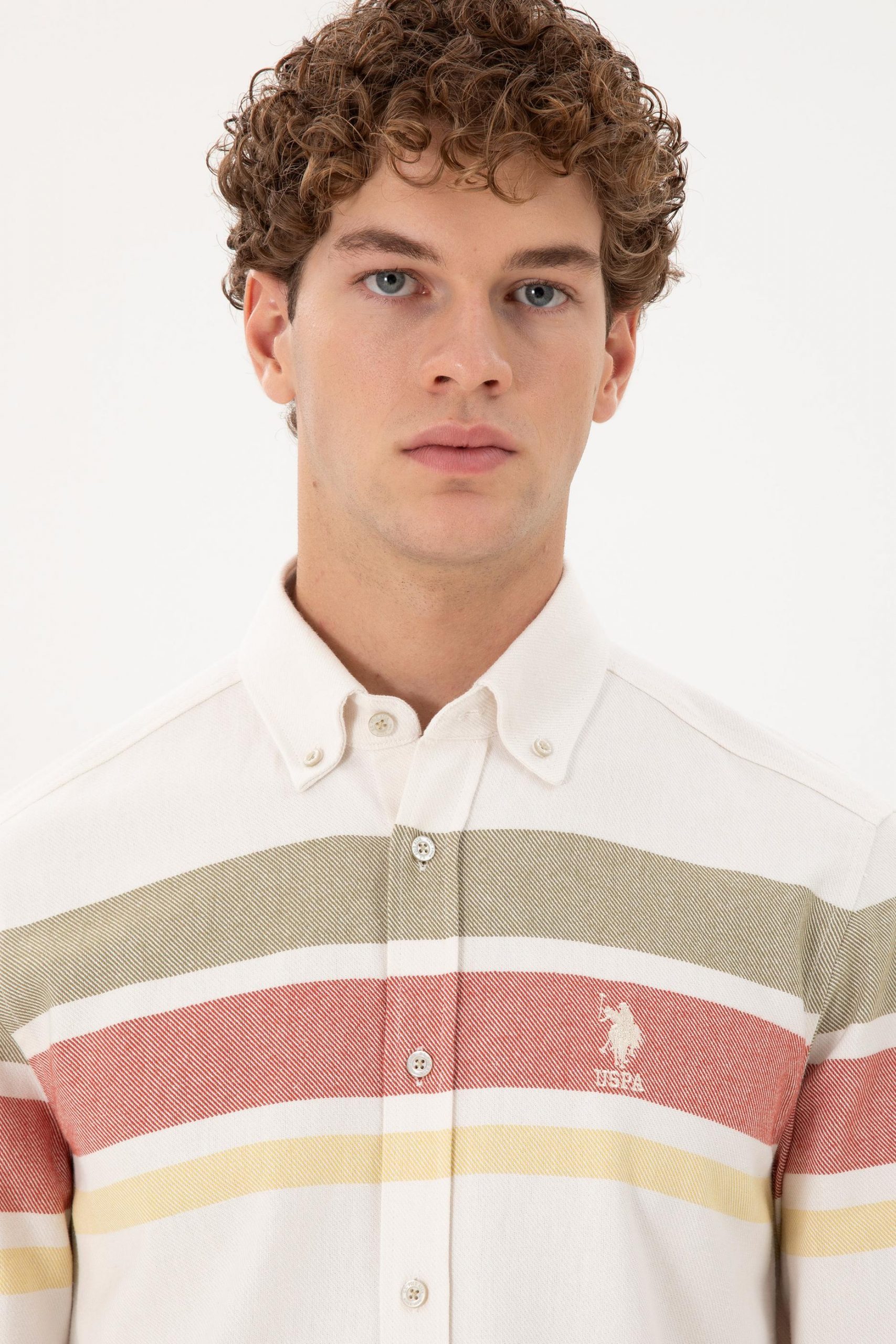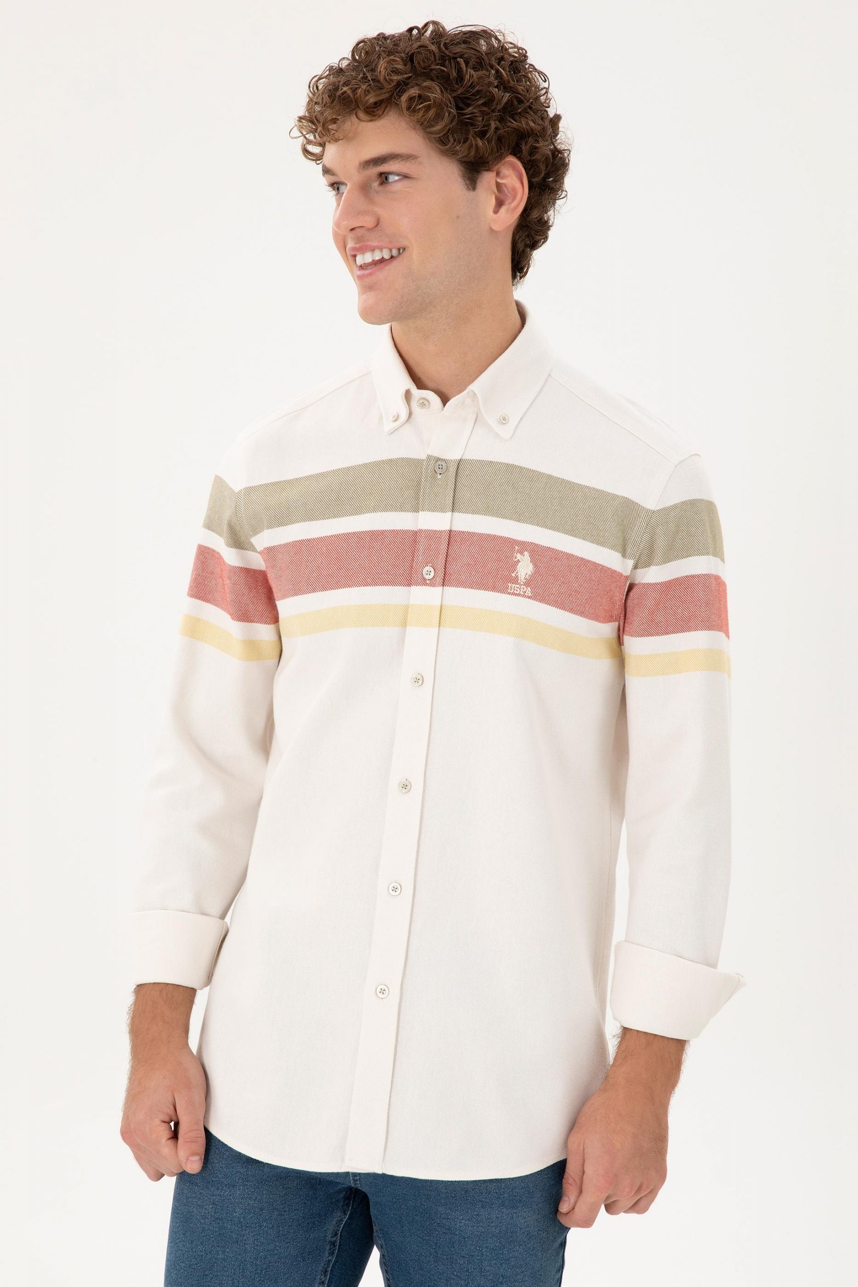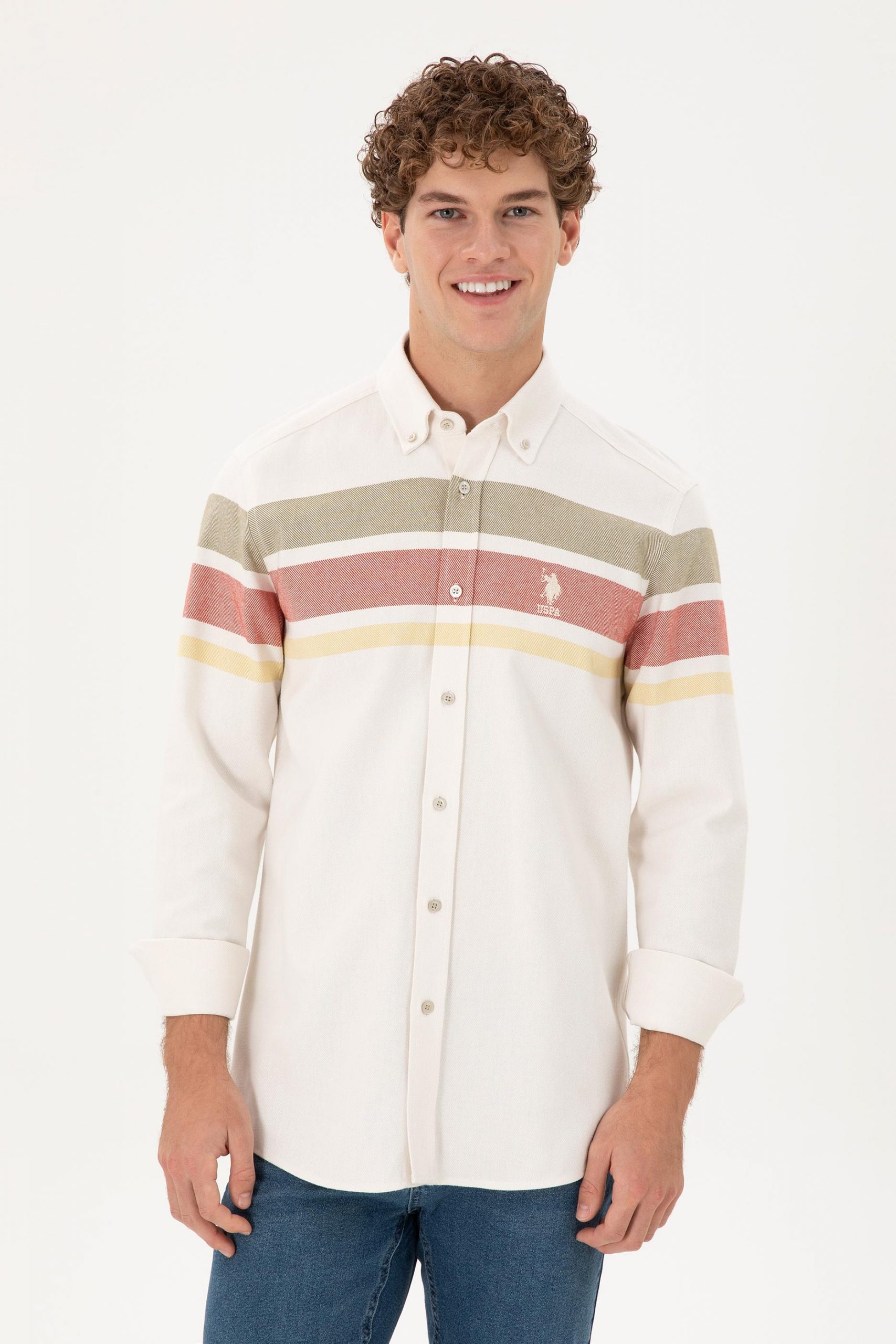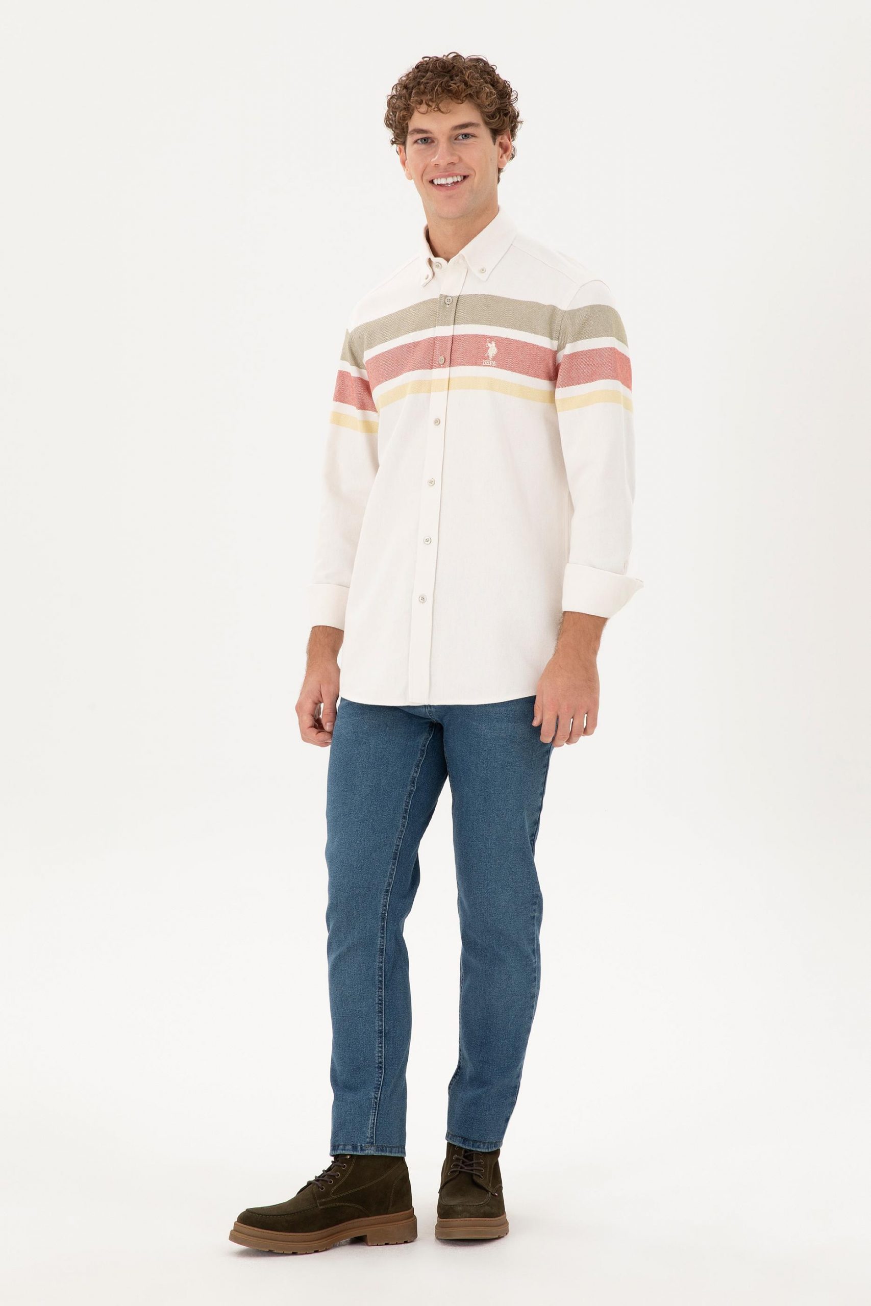 پیراهن آستین بلند مردانه کرم یو اس پولو