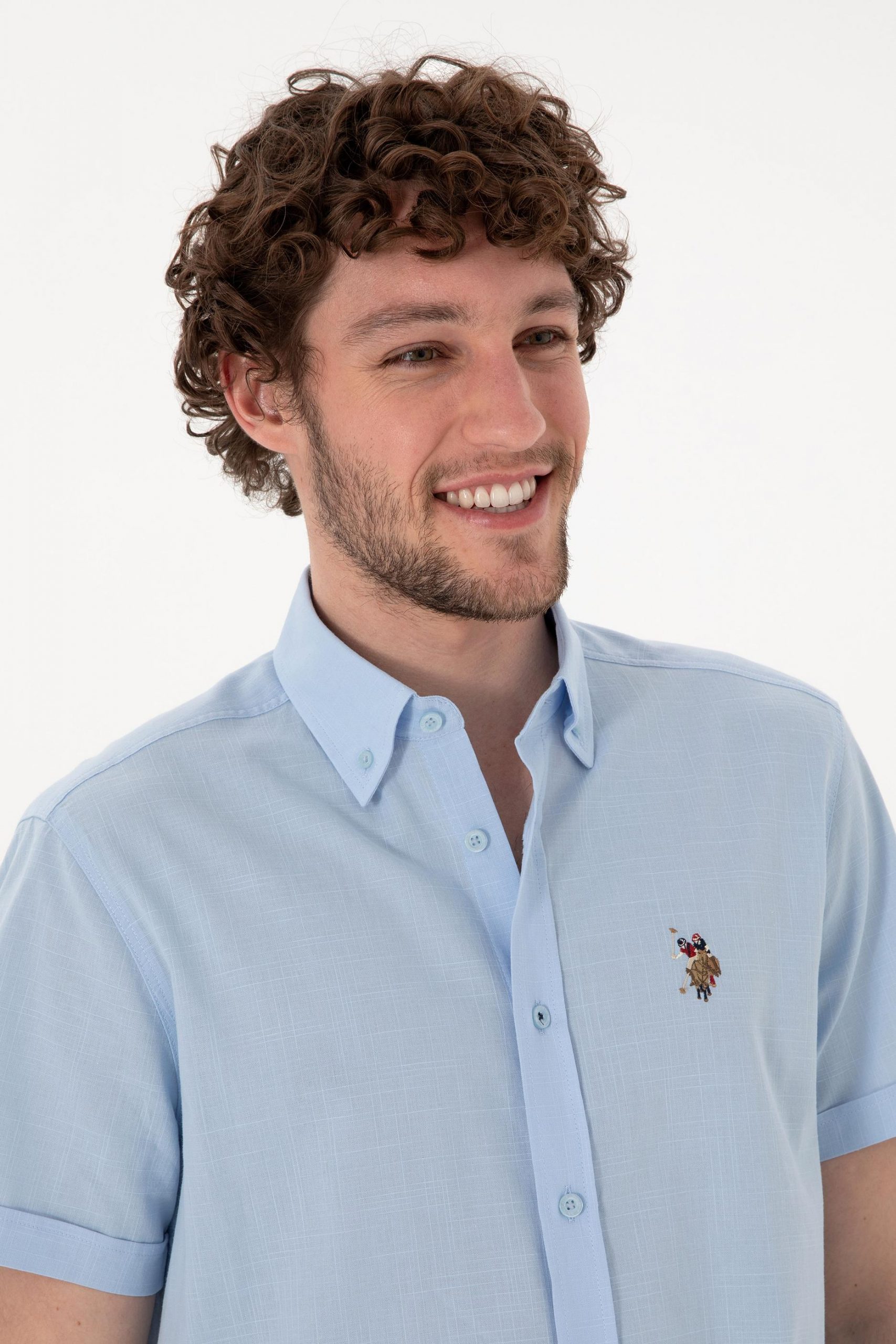 پیراهن آستین کوتاه مردانه آبی روشن یو اس پولو عدد