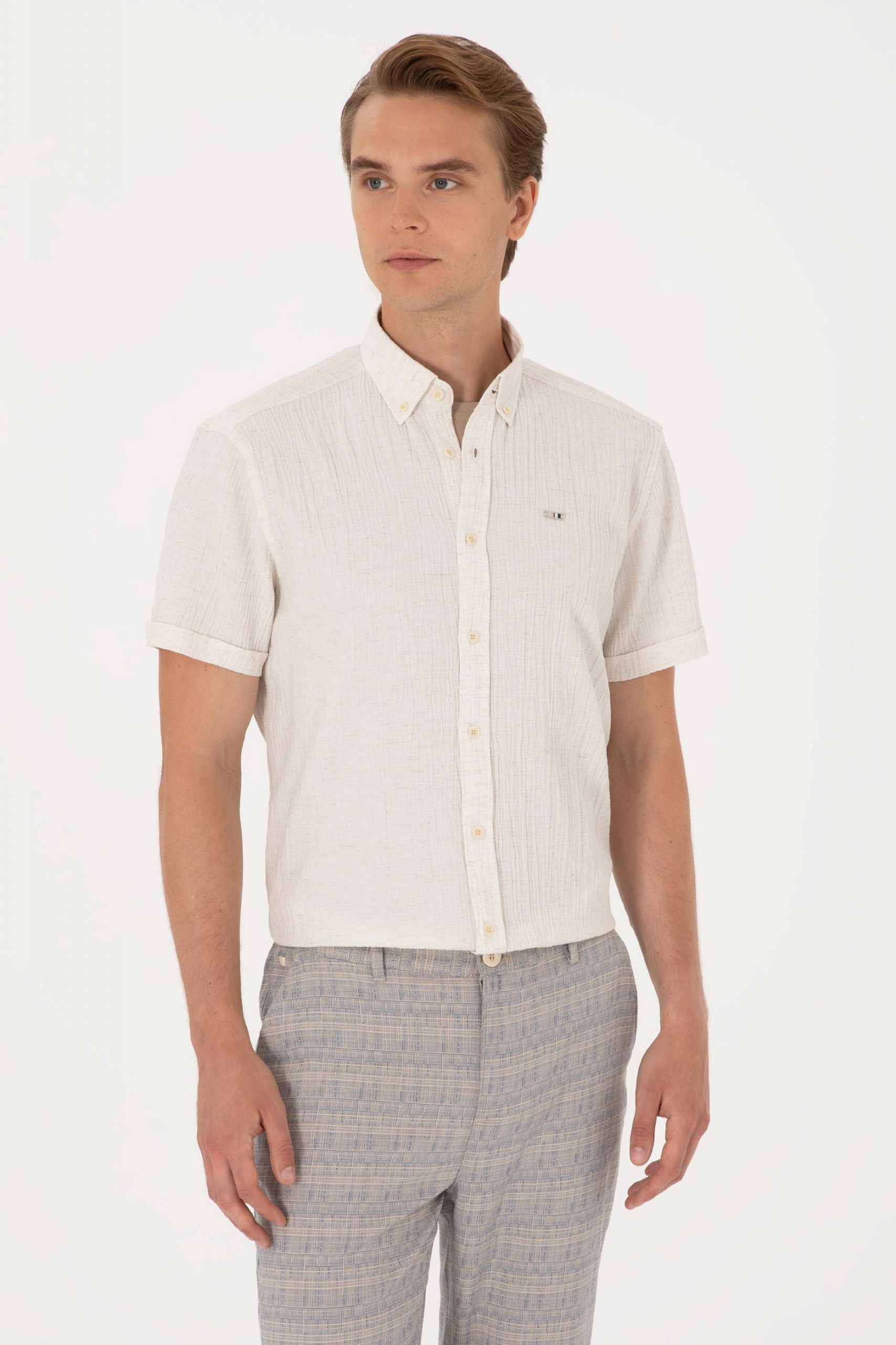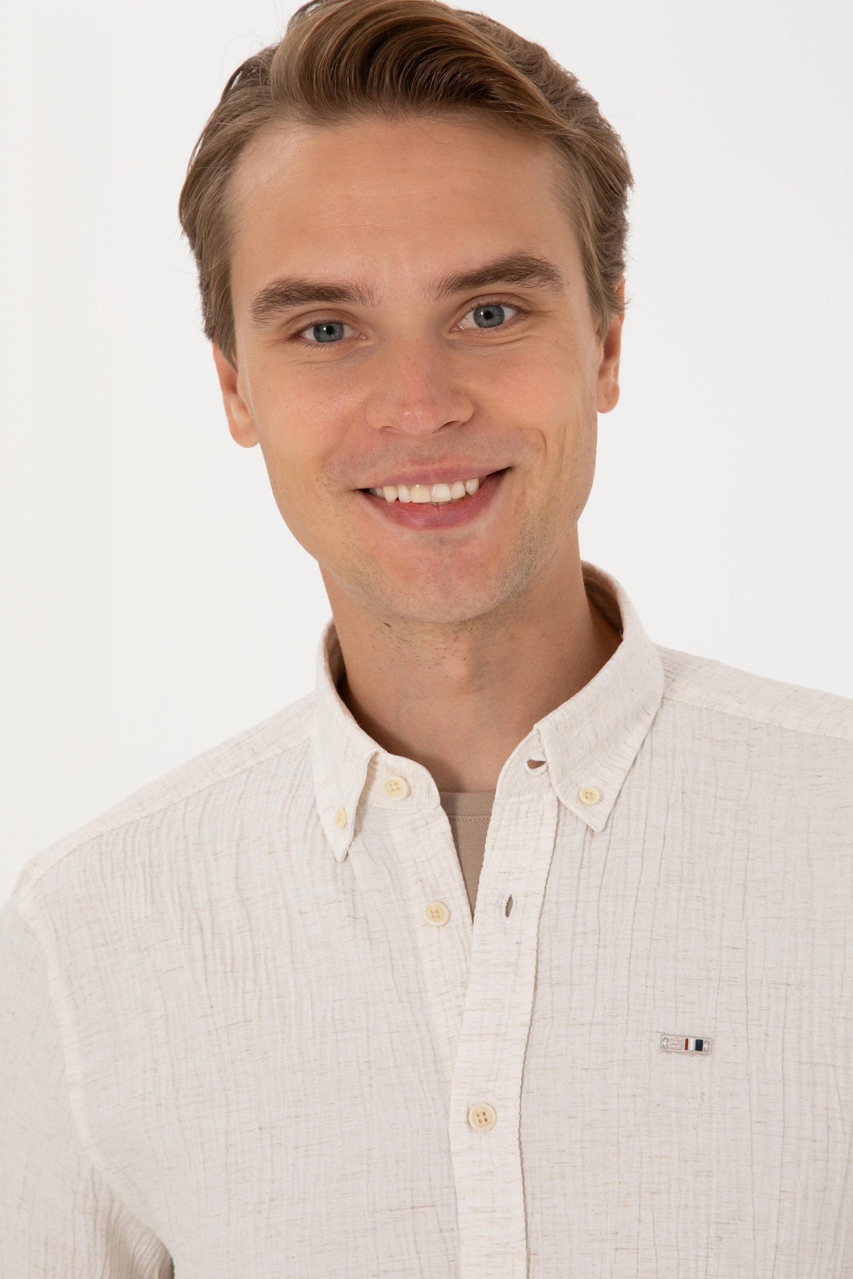 پیراهن آستین کوتاه مردانه کرم یو اس پولو