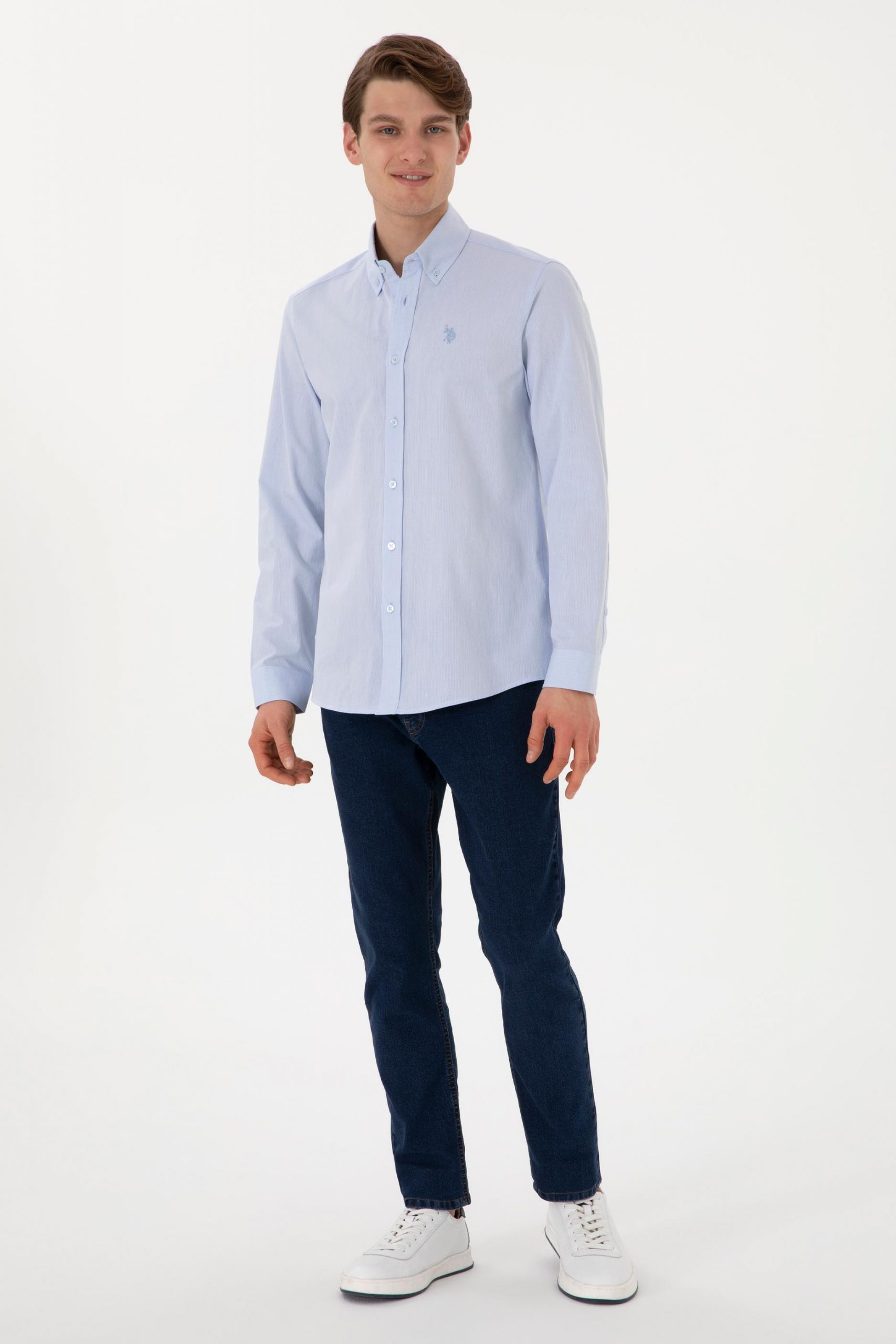 پیراهن مردانه آبی روشن یو اس پولو عدد