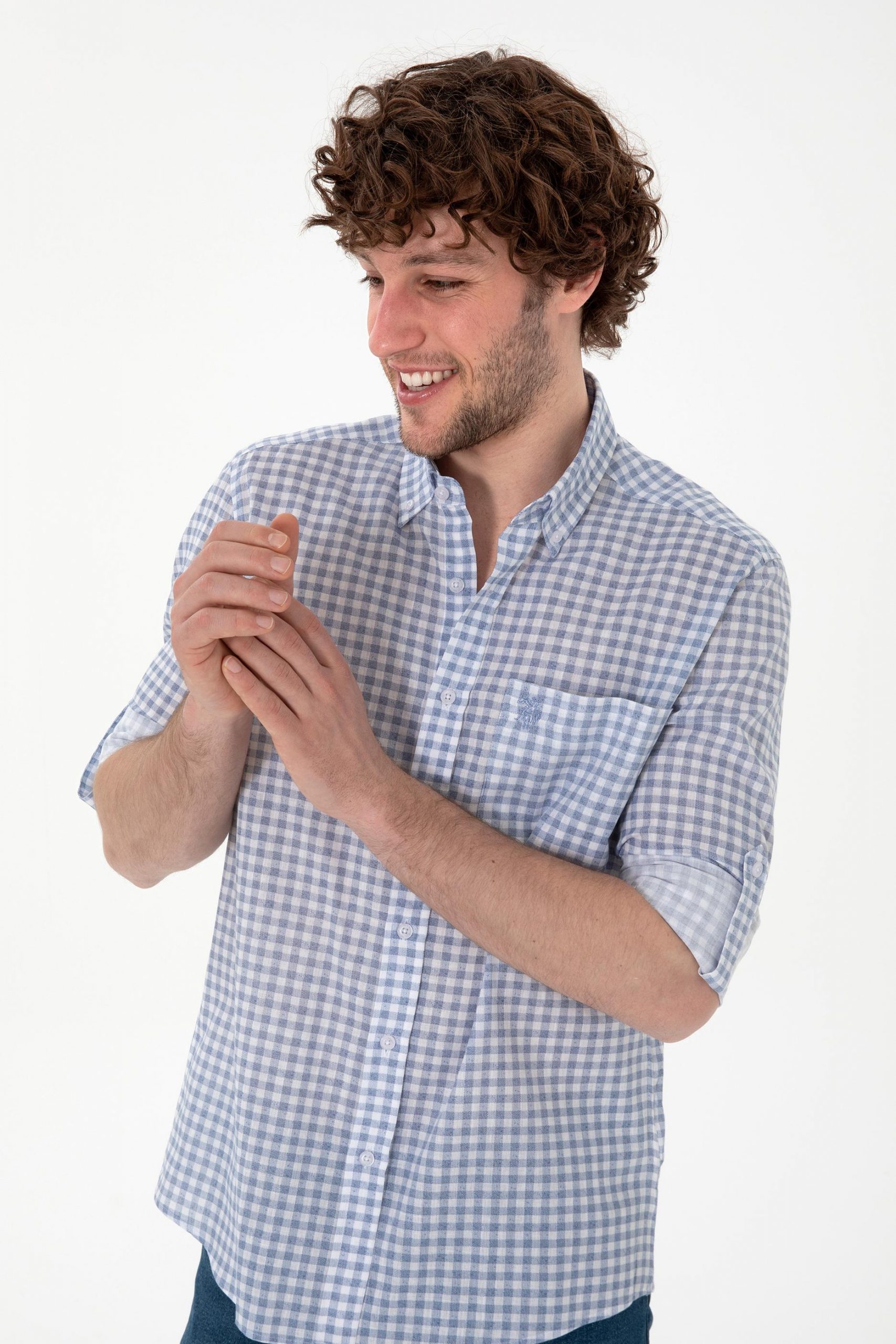 پیراهن مردانه آبی روشن یو اس پولو
