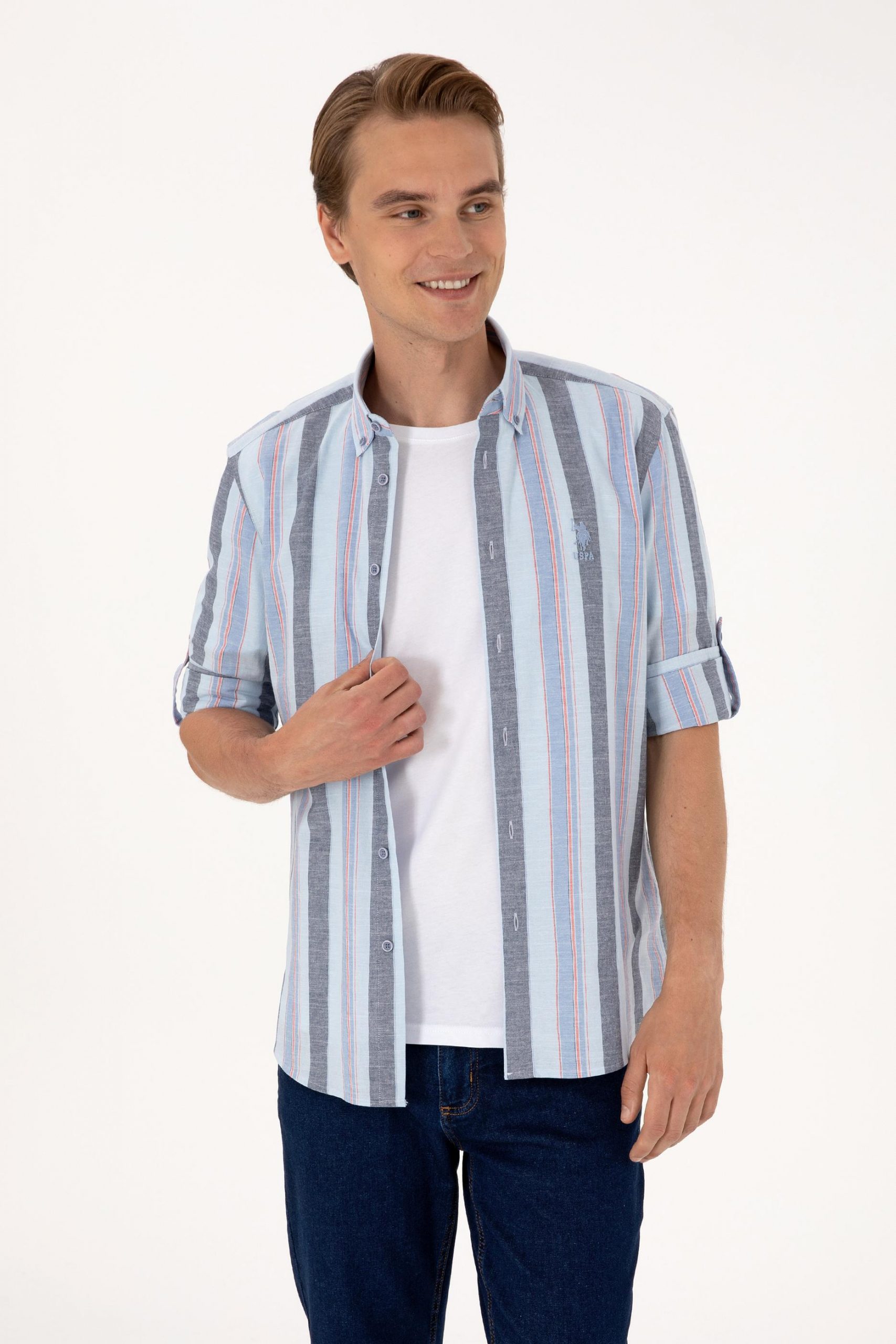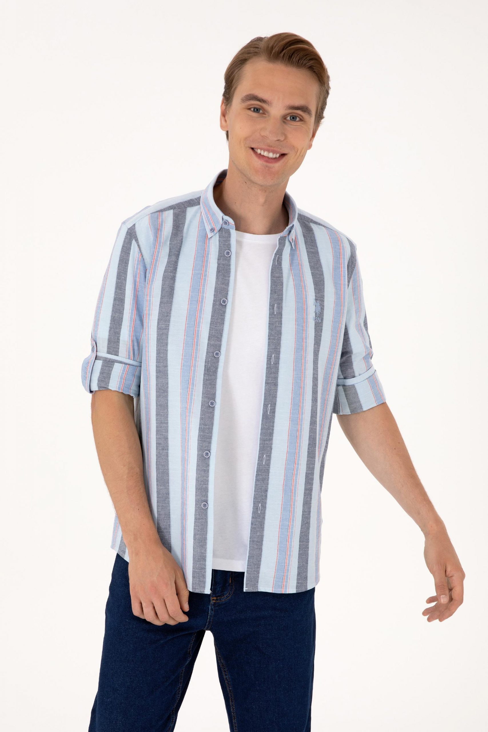 پیراهن مردانه آبی روشن یو اس پولو