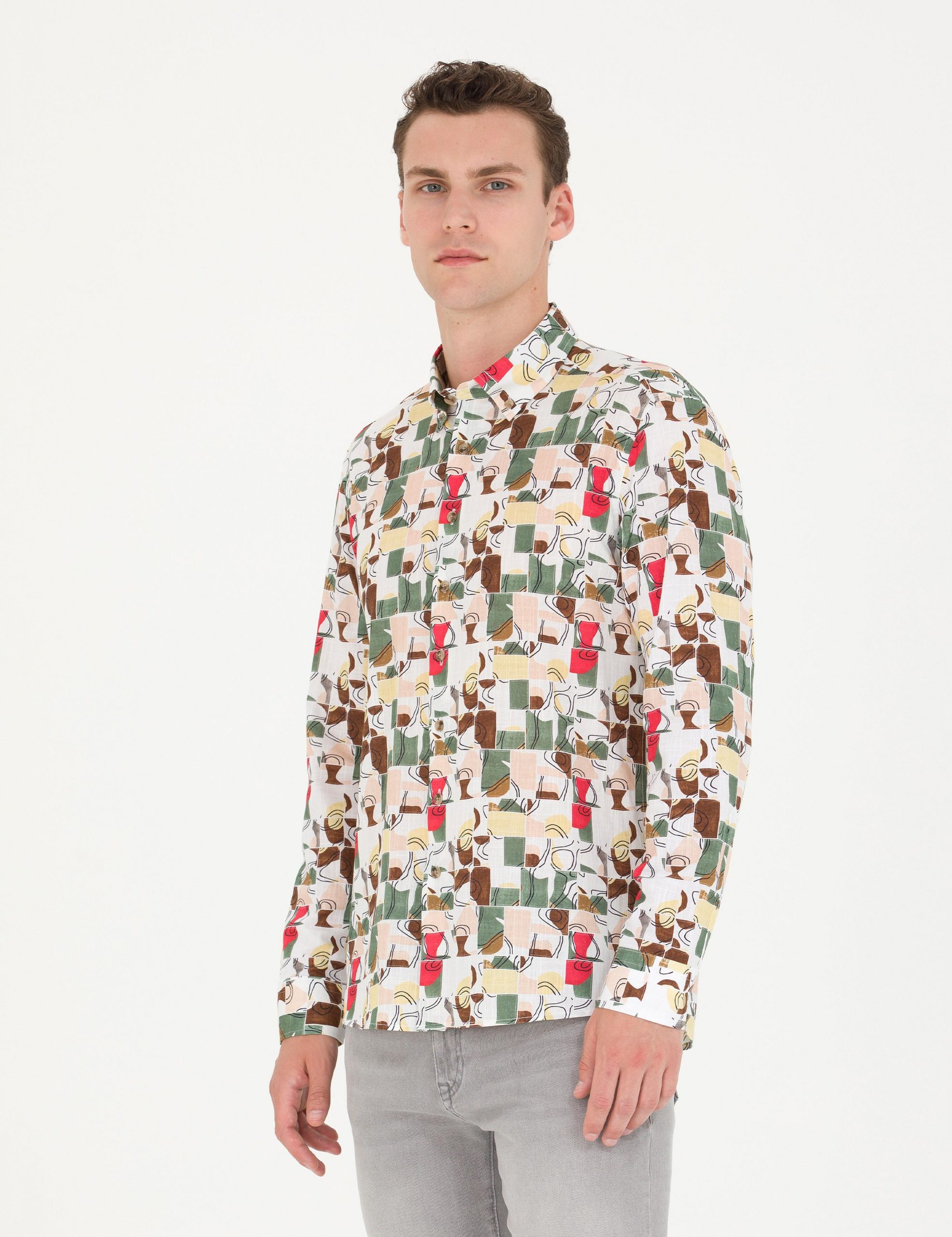 پیراهن مردانه خاکی روشن پیرکاردین