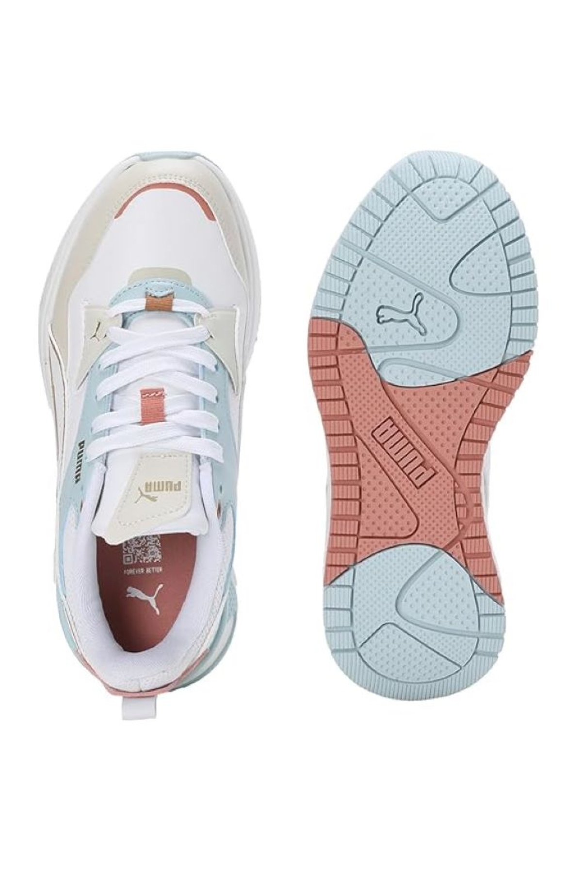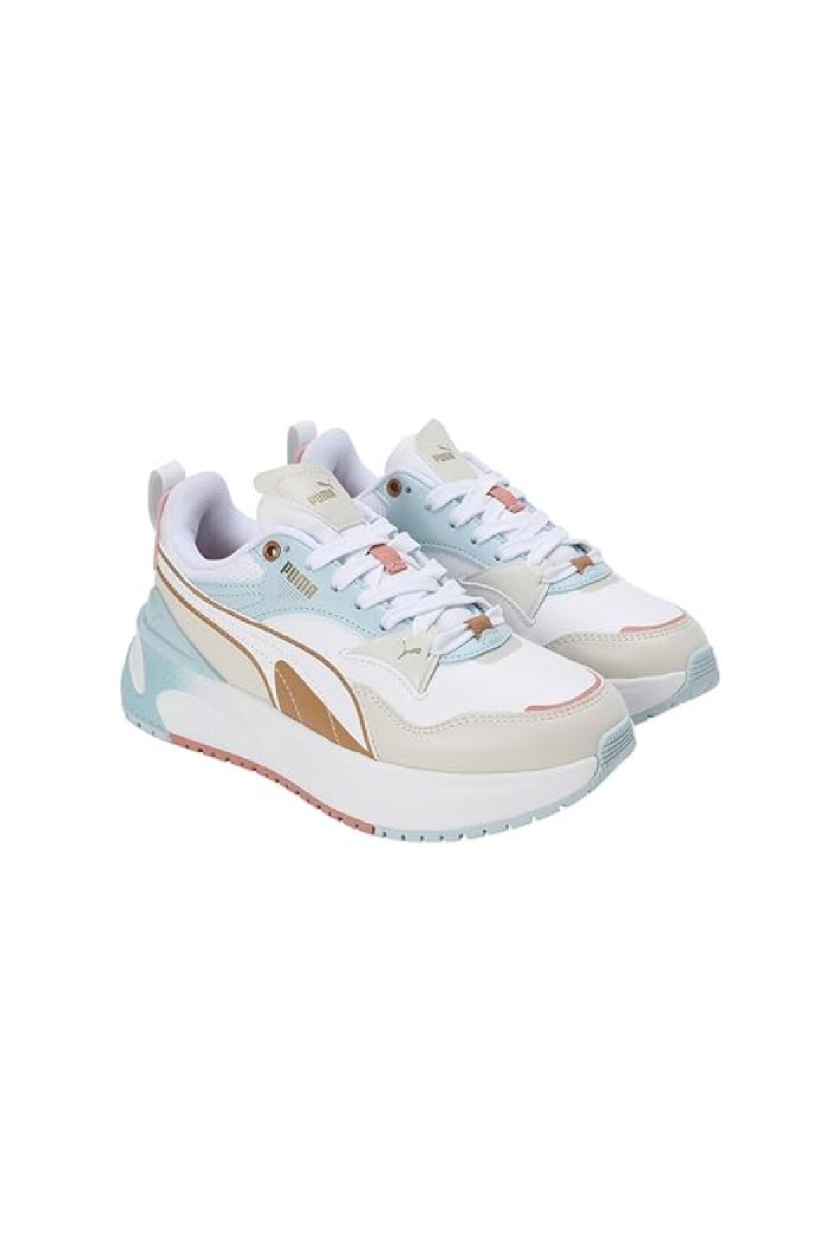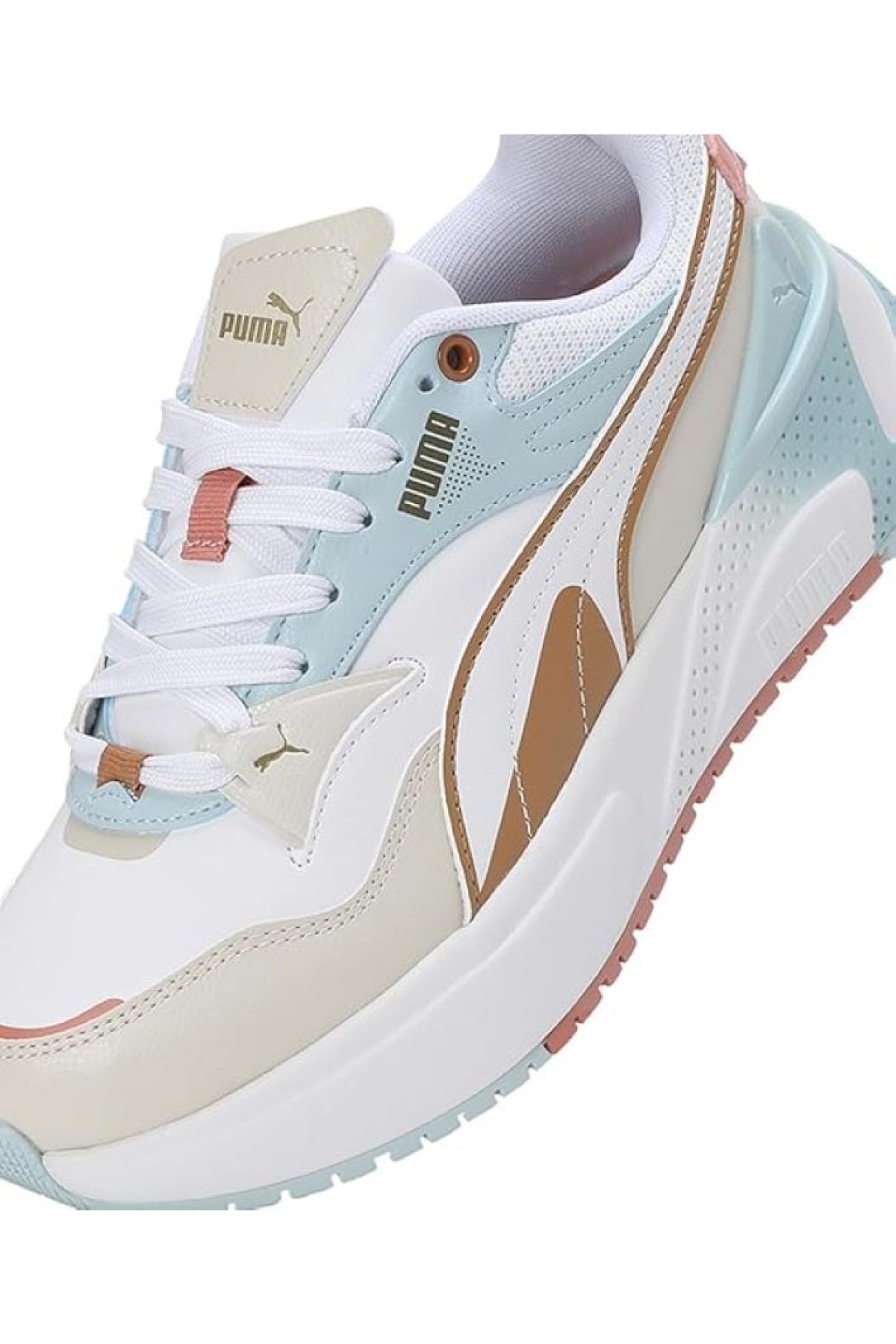 وقتی این کفش را در دست می‌گیرید، متوجه کیفیت ساخت و جزئیات ظریف آن خواهید شد. رویه کفش ترکیبی از متریال باکیفیت است که تنفس‌پذیری خوبی دارد. زیره ضخیم و پلتفرمی، علاوه بر افزایش قد به صورت نامحسوس، ضربه‌گیری عالی را تضمین می‌کند. جزئیات رنگی صورتی ملایم در قسمت پاشنه و پنجه، کنتراست زیبایی با رنگ اصلی ایجاد کرده و لوگوی پوما به شکلی ظریف روی زبانه و کناره‌ها خودنمایی می‌کند. این کتانی با بندهای همرنگ، به خوبی روی پا محکم می‌شود.