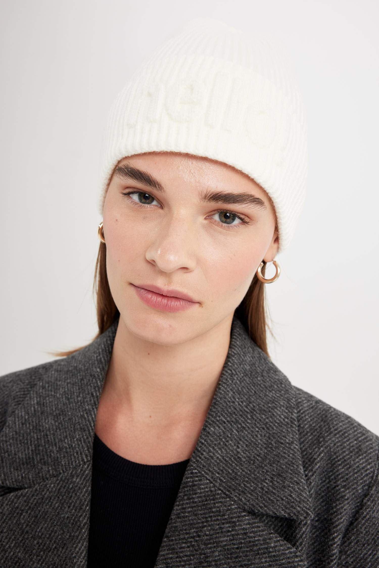 کلاه بافت زنانه سفید دفکتو