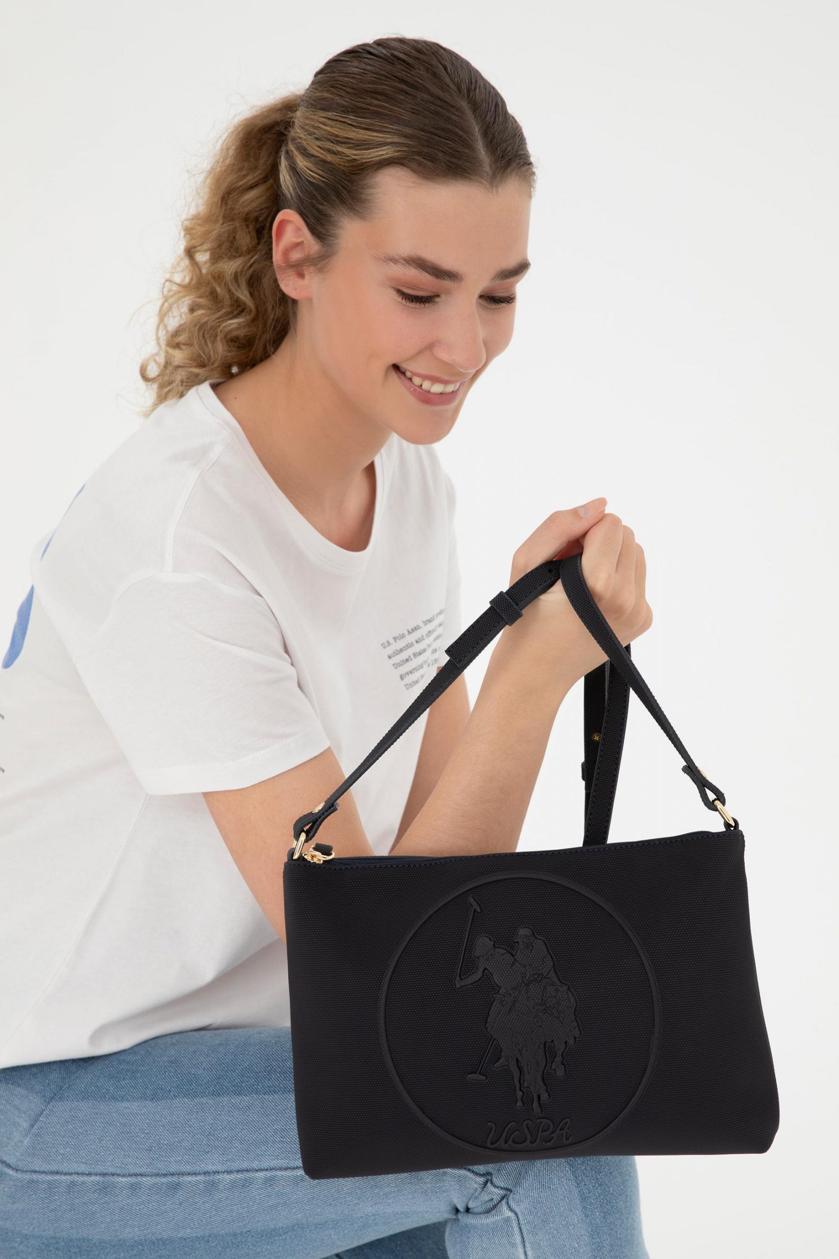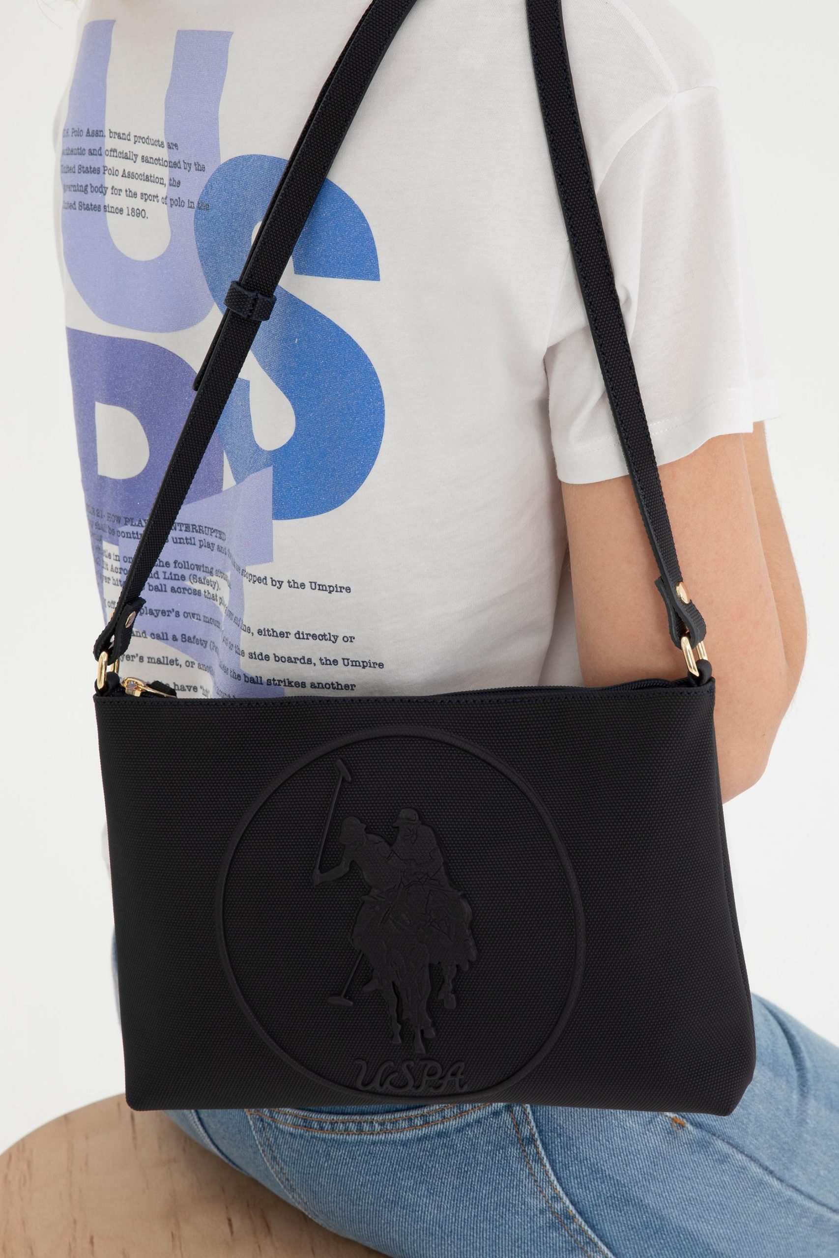 کیف دوشی زنانه سرمه ای یو اس پولو