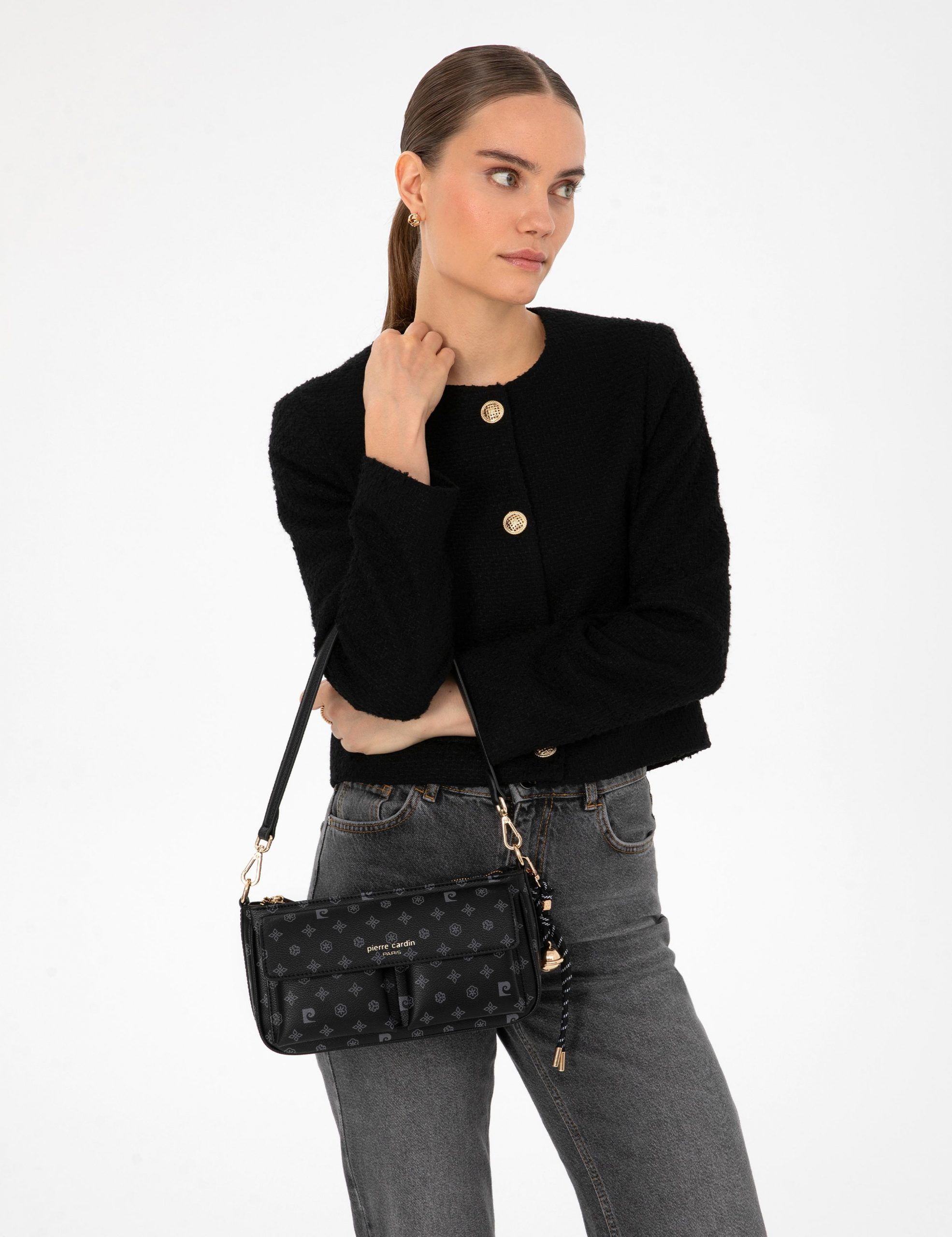 کیف دوشی زنانه مشکی پیرکاردین