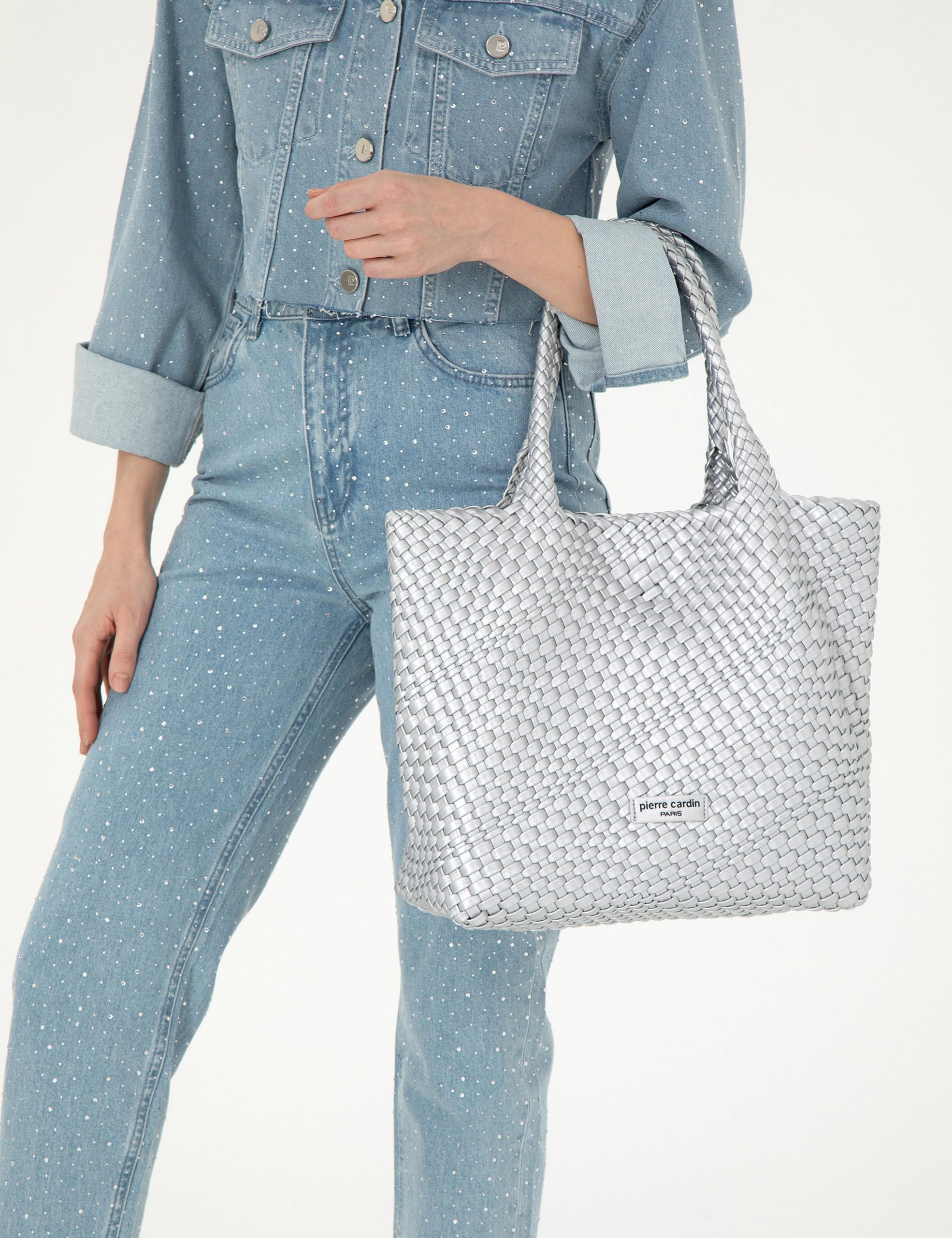 کیف دوشی زنانه نقره ای پیرکاردین
